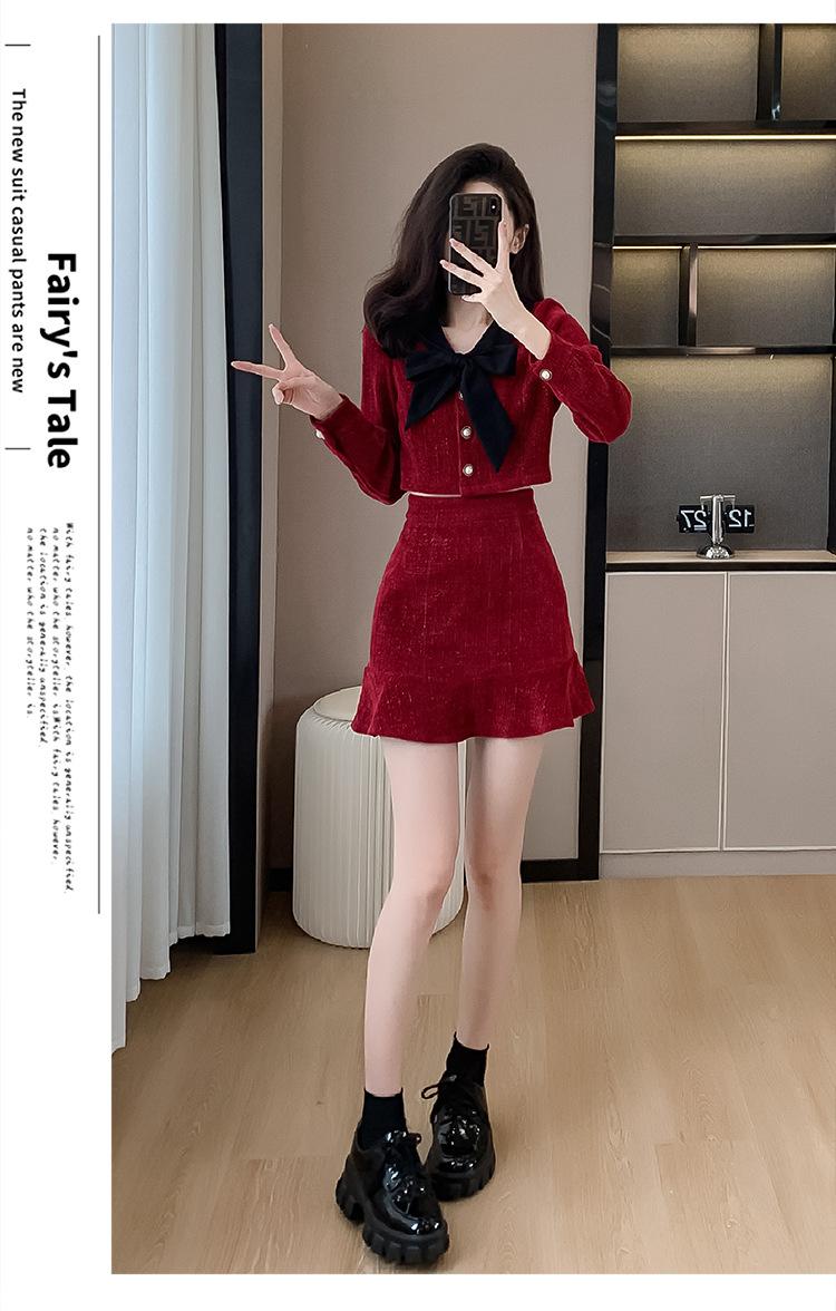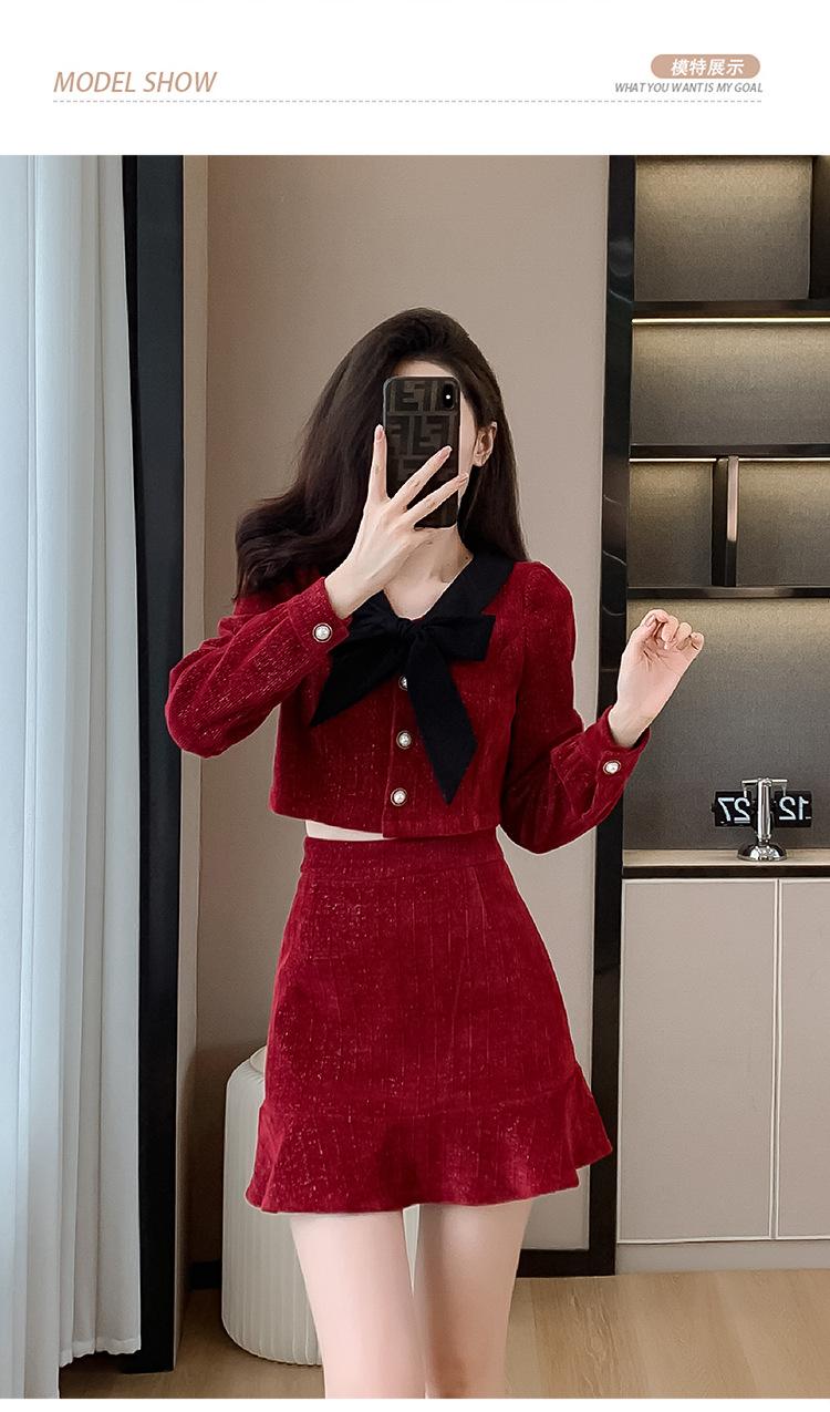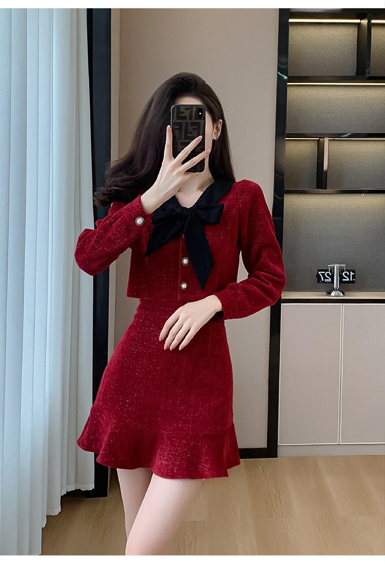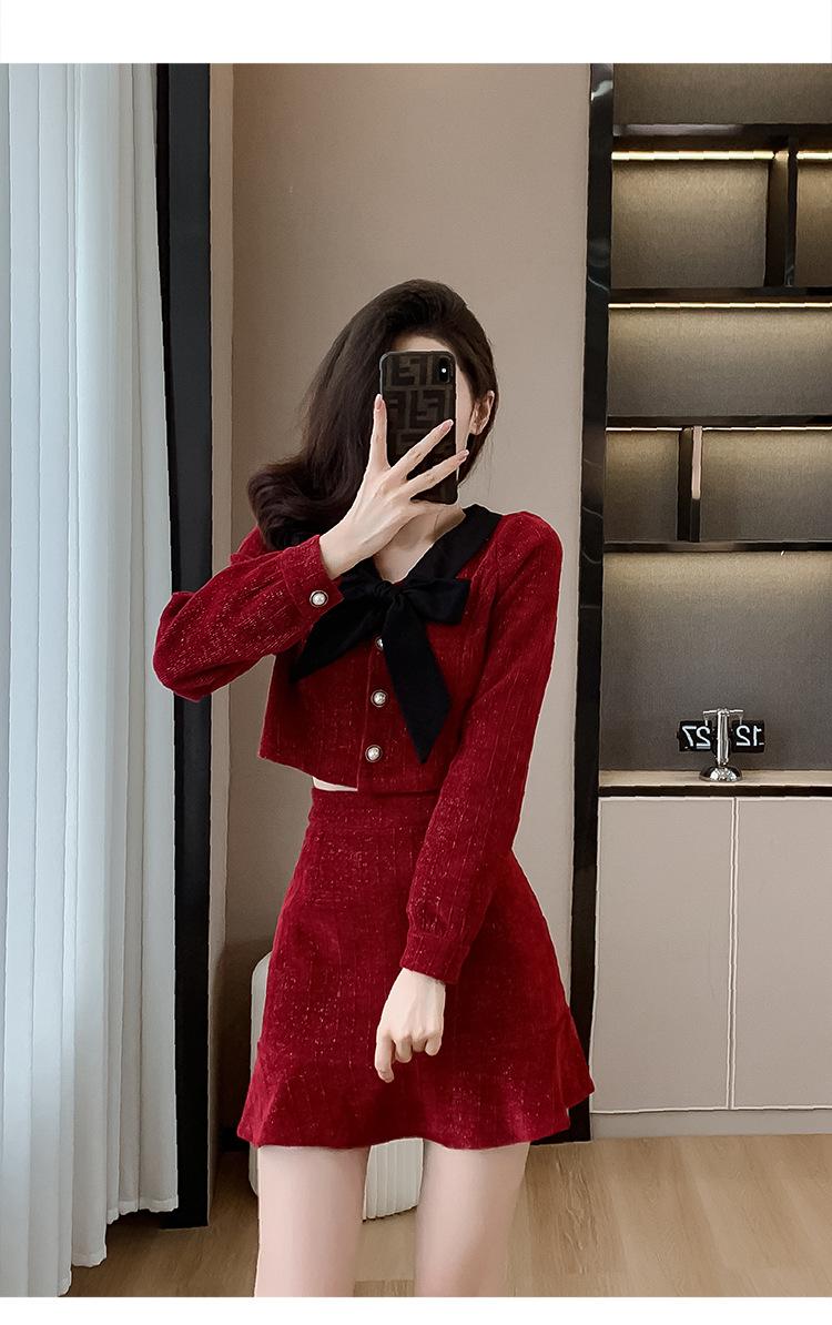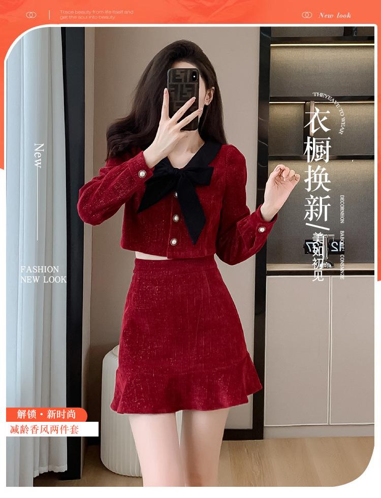 Traje de Moda Estilo Francés 2025 Otoño e Invierno Nuevo Top Elegante Dama de Honor Servicio en Casa Falda Conjunto de Dos Piezas