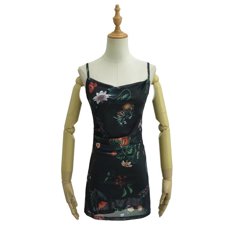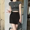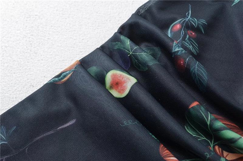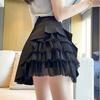 Falda corta con estampado de malla negra vintage estilo europeo y americano, plisada, sexy, a la cadera
