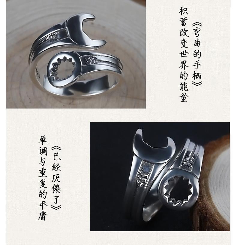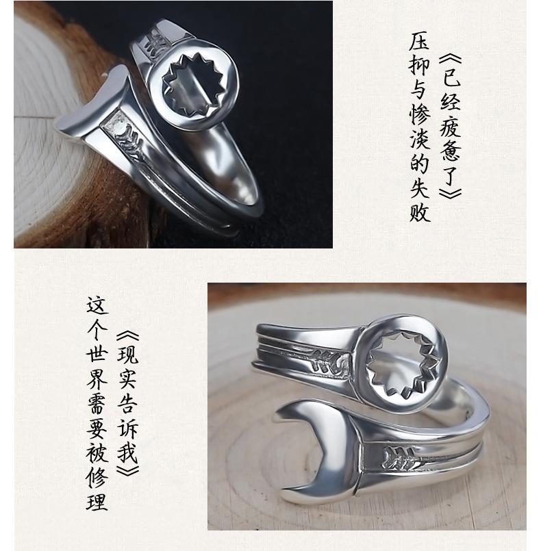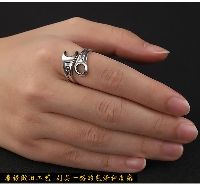 Anillo abierto estilo chino para hombre, anillo de llave inglesa único y dominante, boca abierta, plata esterlina, moderno, para hombre, anillo personalizado con acabado envejecido