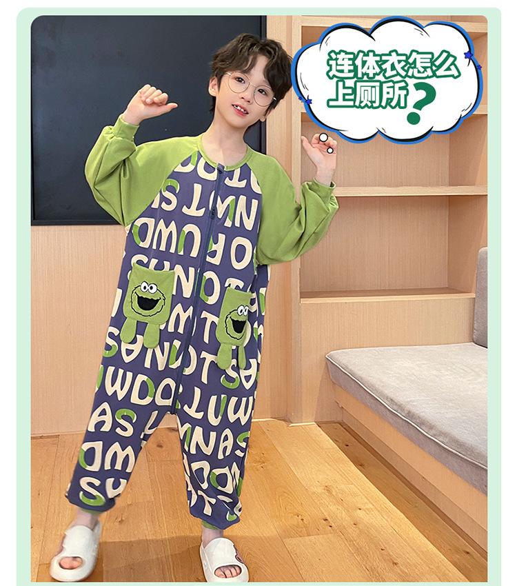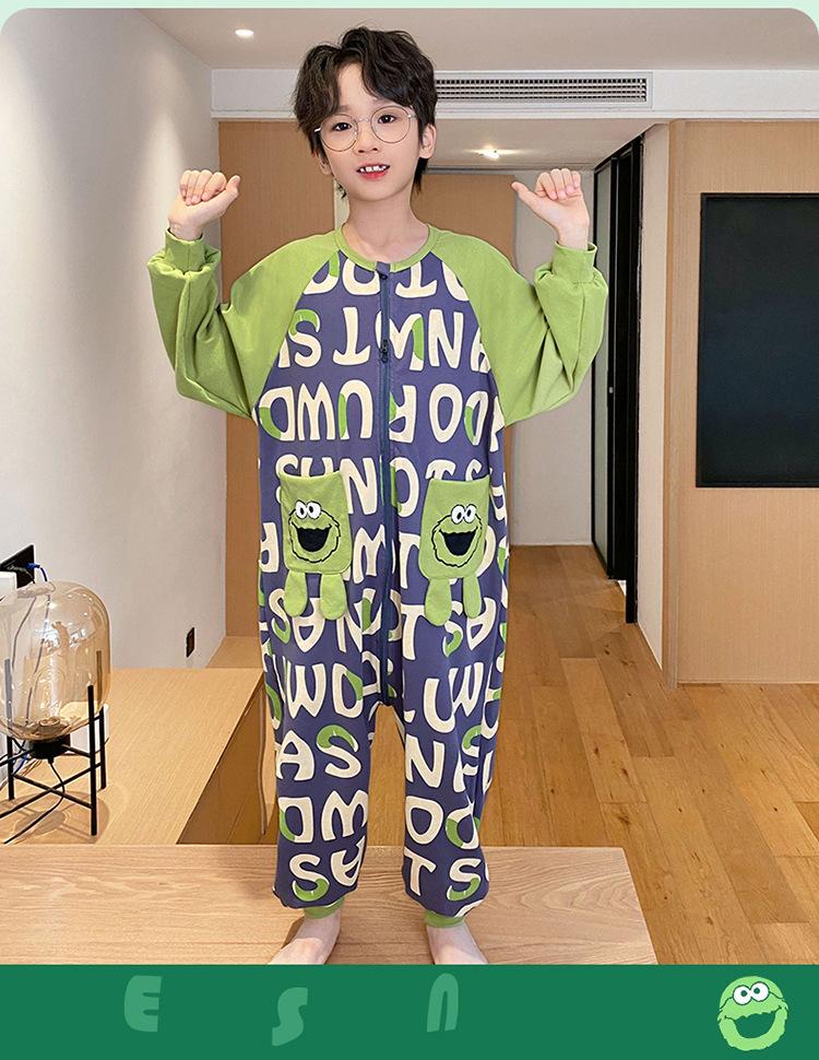 Pijama de una pieza para niños antifrío, pijama de algodón puro para niñas y niños, otoño e invierno 2024, nuevo saco de dormir para niños grandes