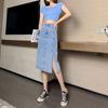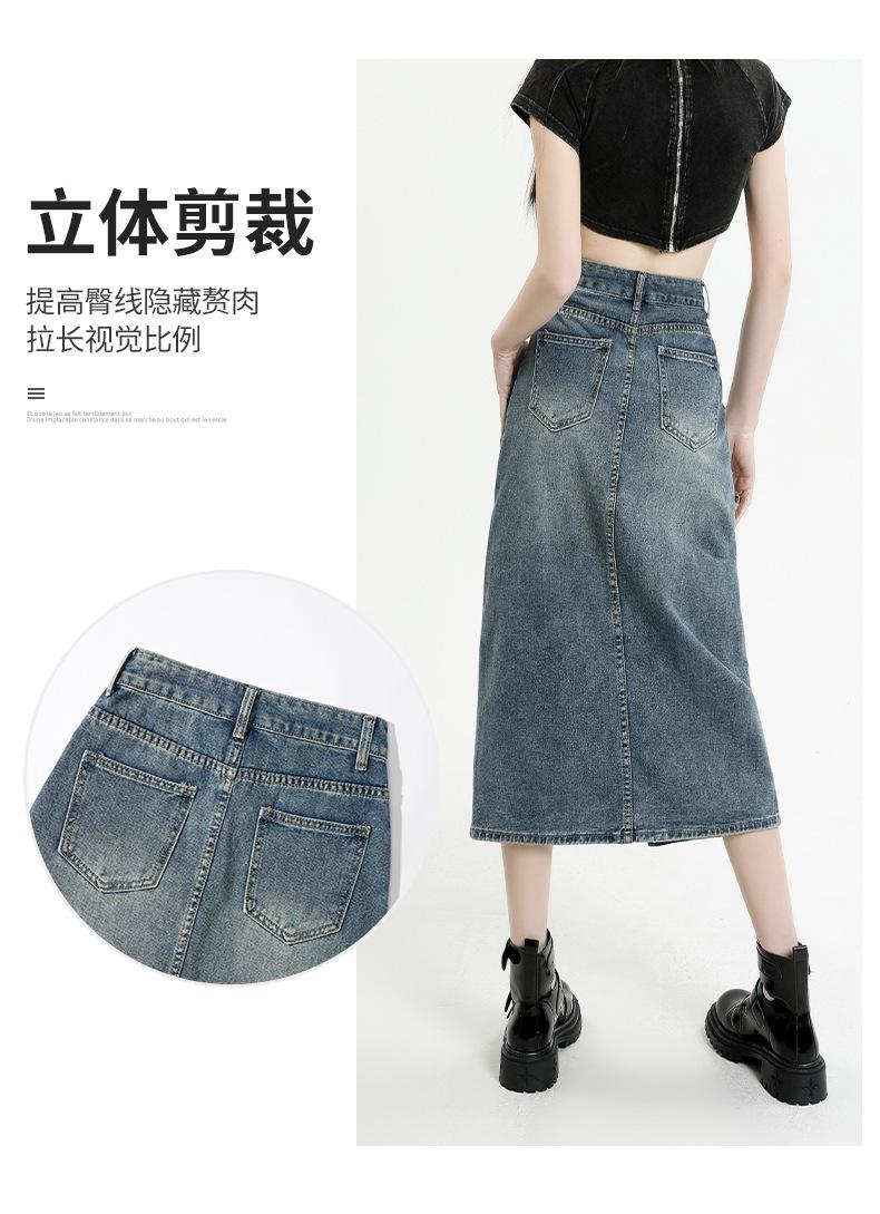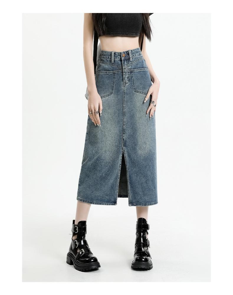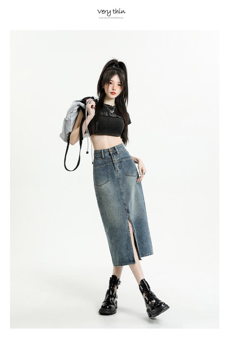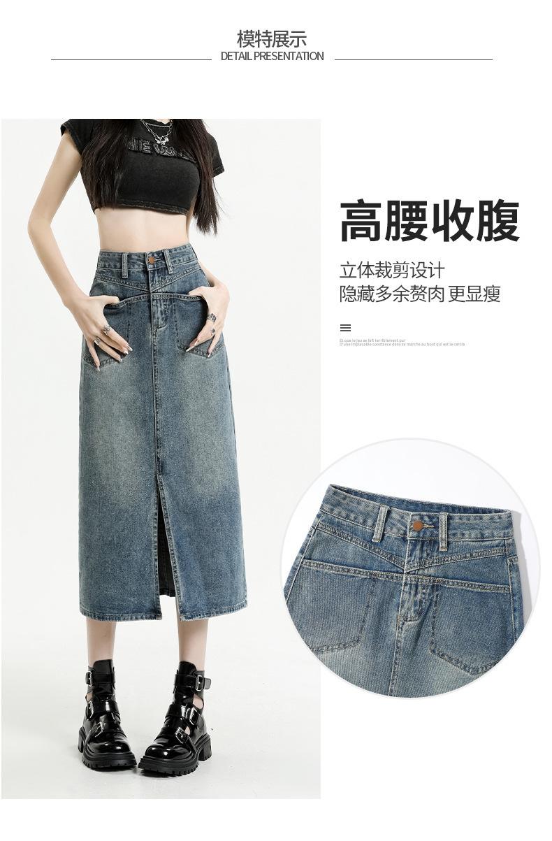Falda vaquera de cintura alta para mujer, ropa de verano 2024, nueva falda de corte A de longitud media, ajustada a la cadera, para mujer, primavera y otoño
