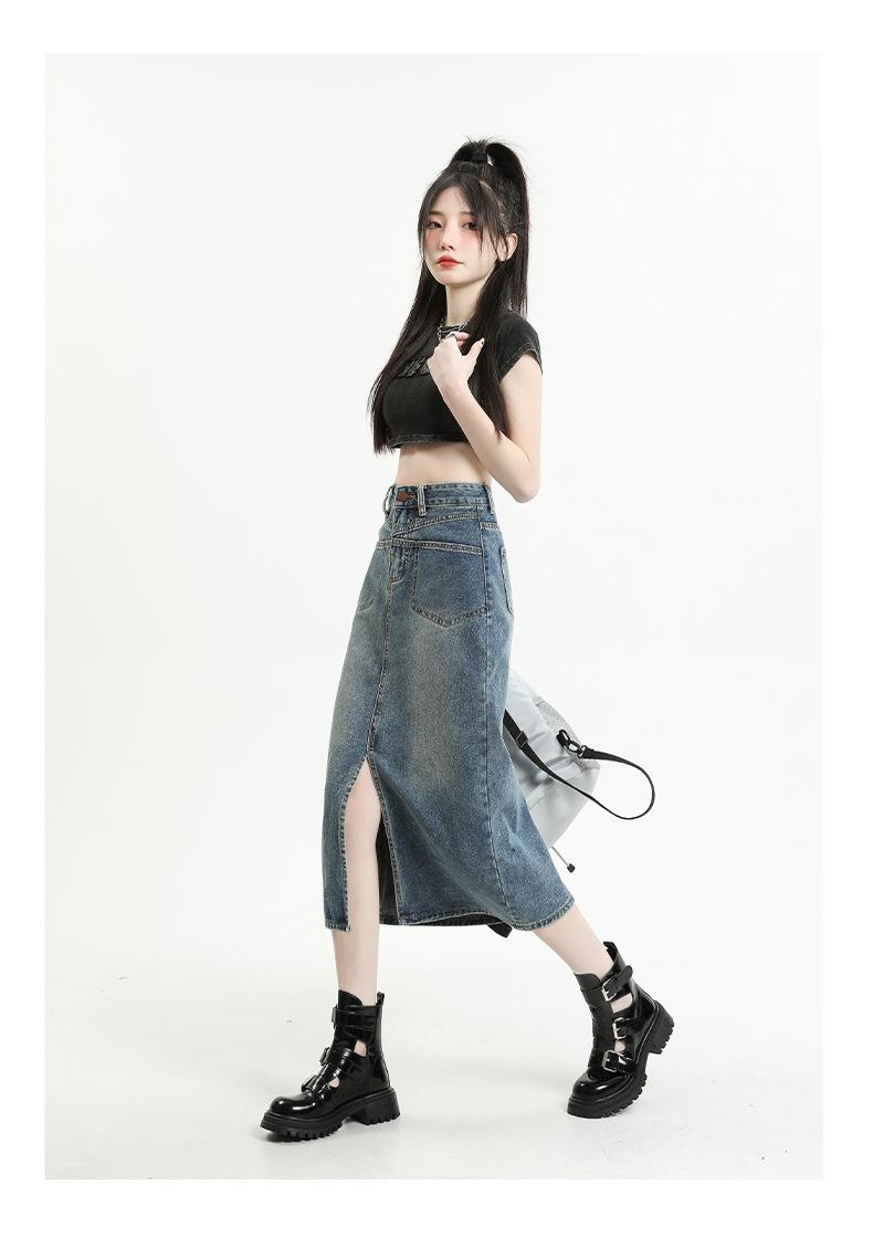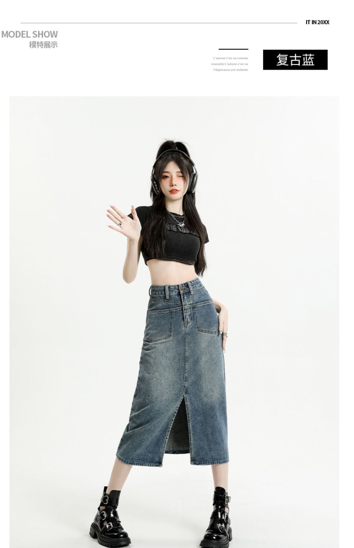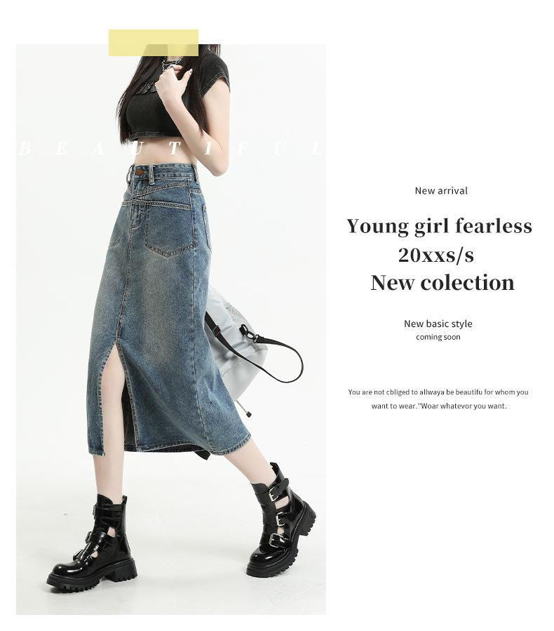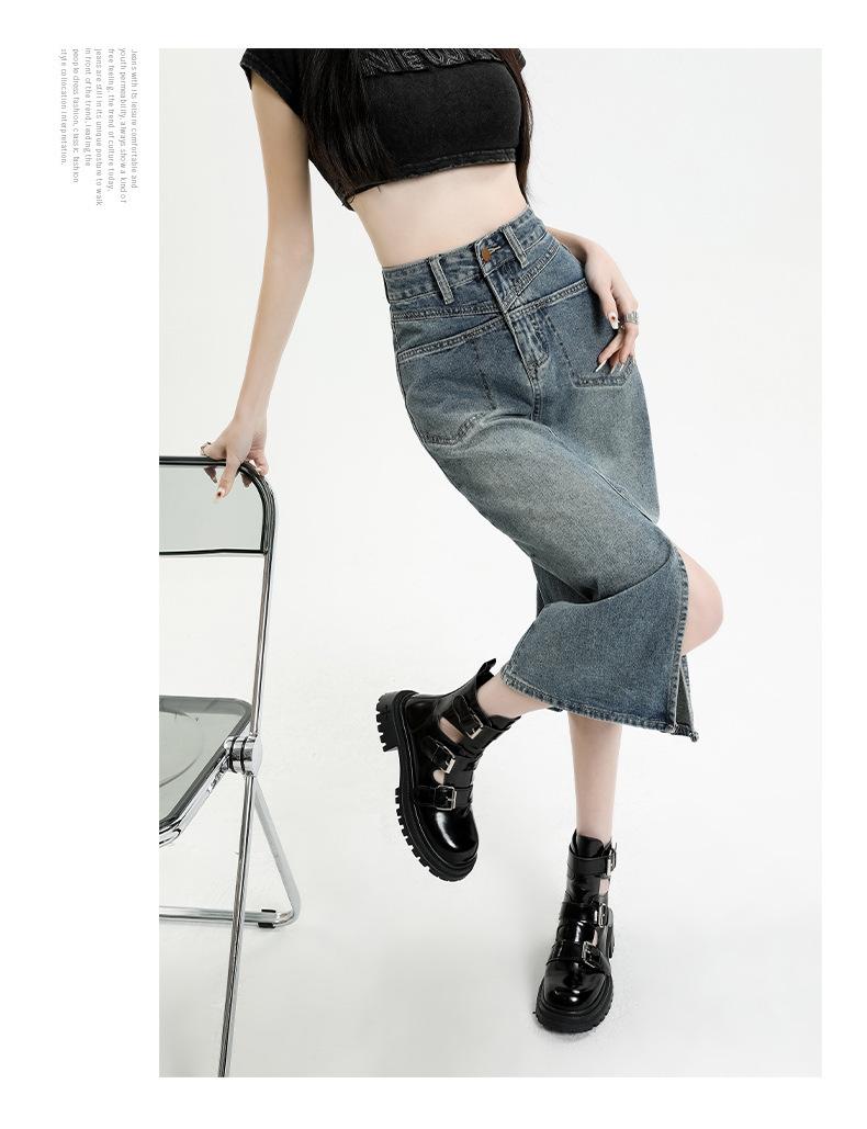 Falda vaquera de cintura alta para mujer, ropa de verano 2024, nueva falda de corte A de longitud media, ajustada a la cadera, para mujer, primavera y otoño