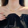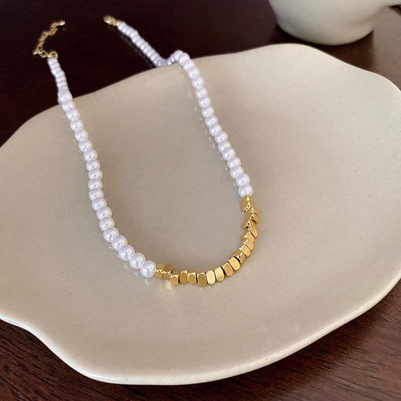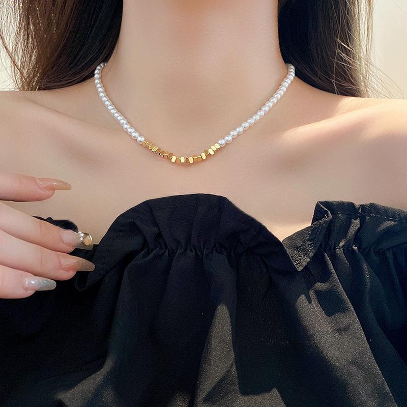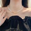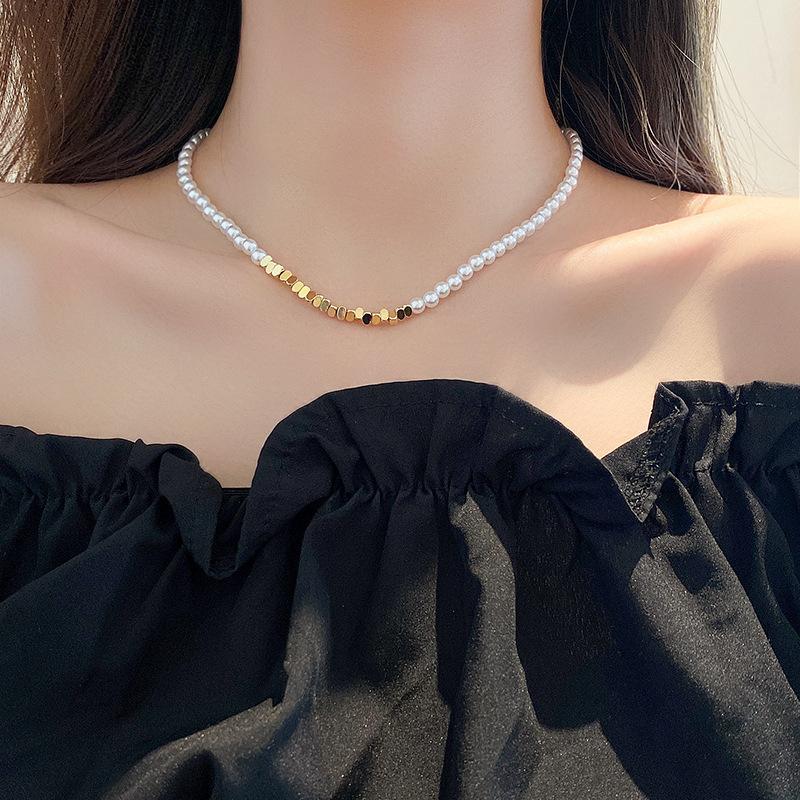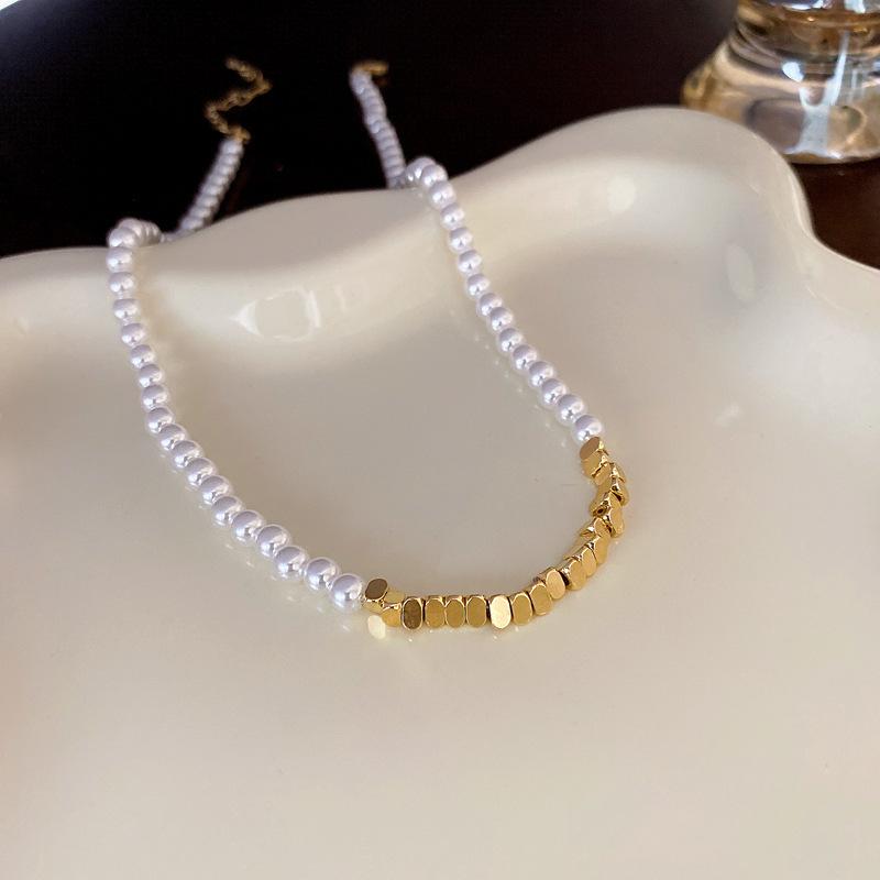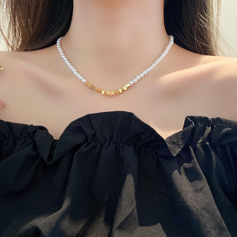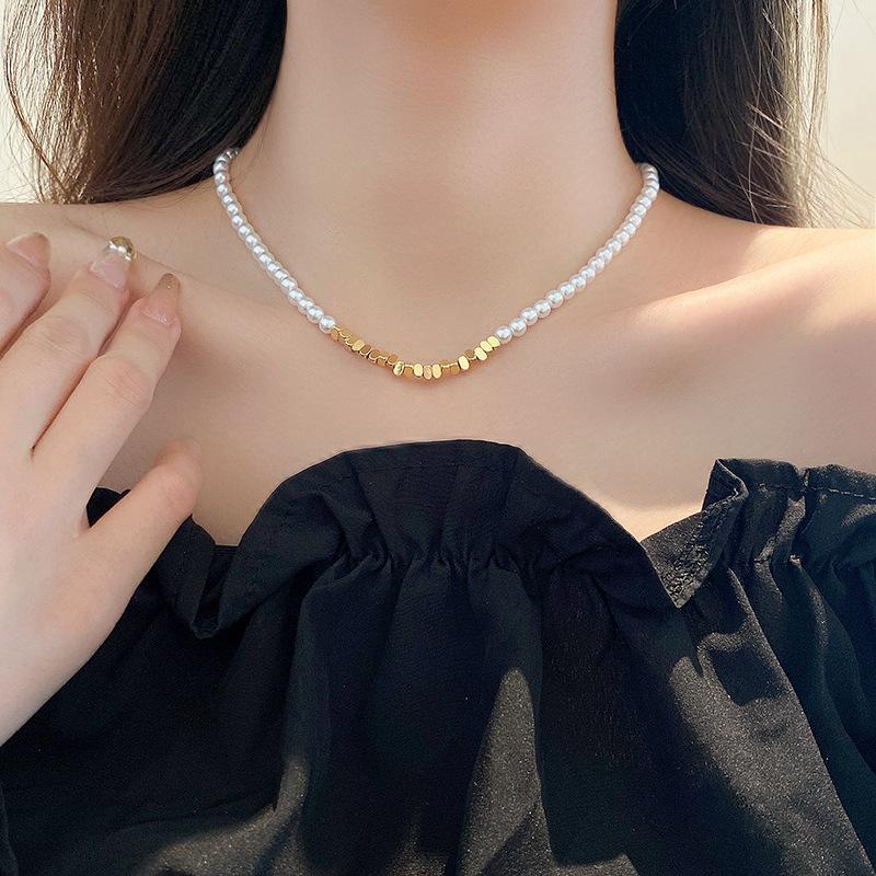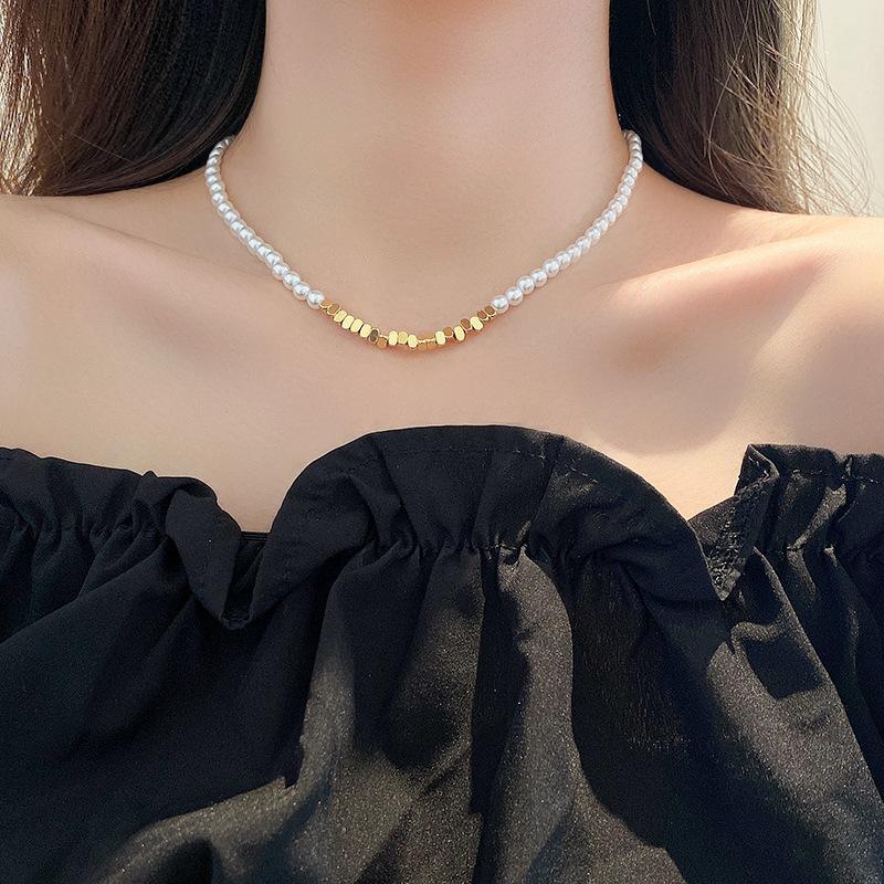 Nuevo collar de perlas con diseño de nicho de lujo ligero para mujer, cadena de clavícula con bloques geométricos personalizados de alto nivel y combinable.