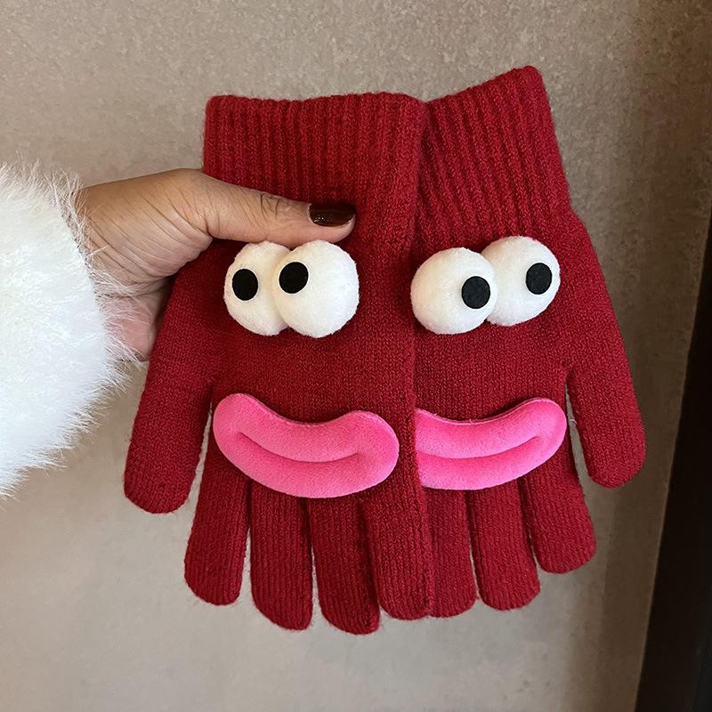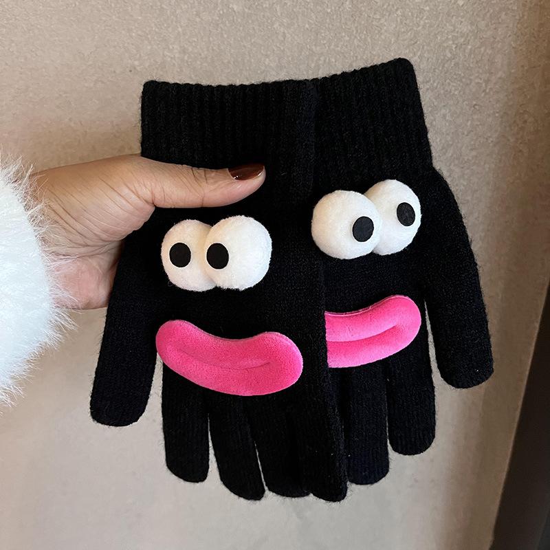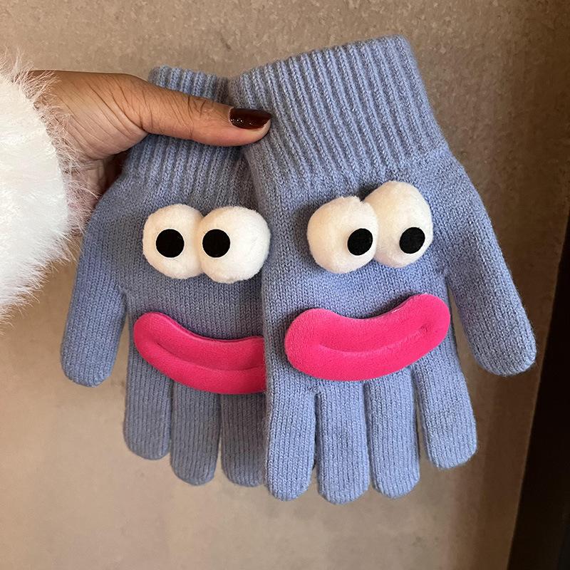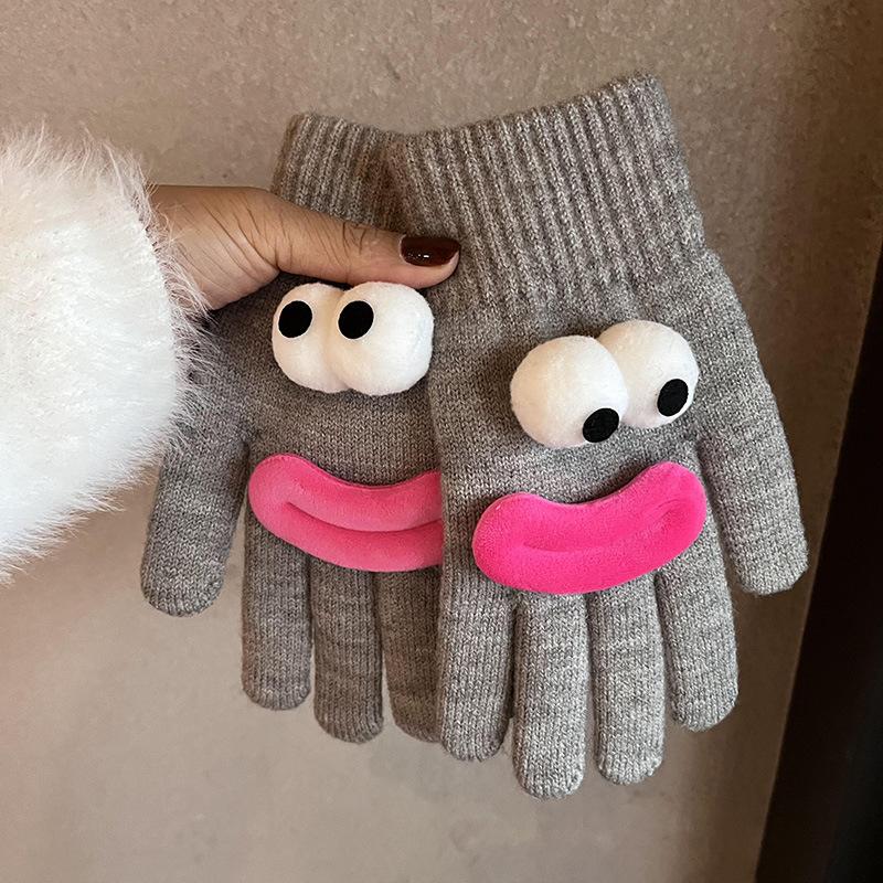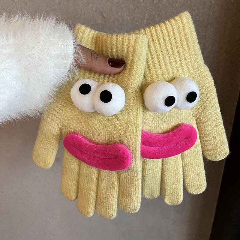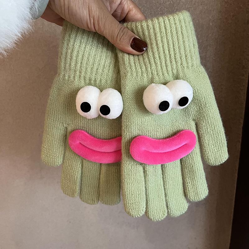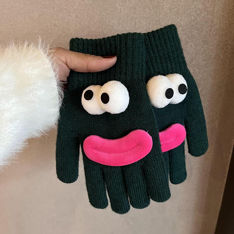 Guantes nuevos de cinco dedos color caramelo, lindos, para romper dedos, otoño e invierno, para mujer, con dedos descubiertos, táctiles, de dibujos animados, cálidos, a prueba de frío, guantes de estudiante