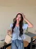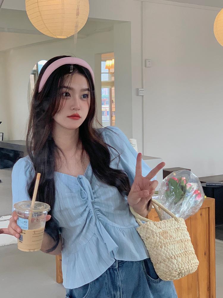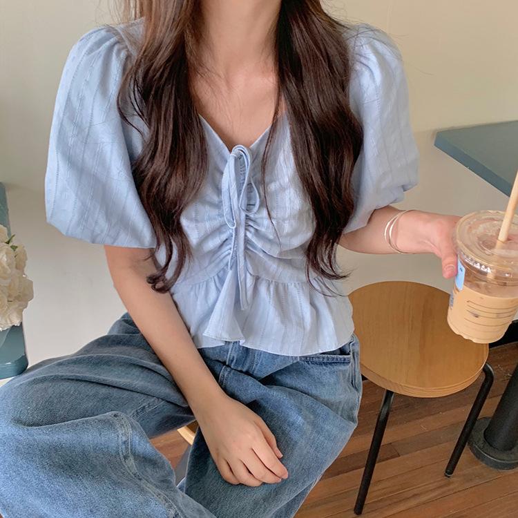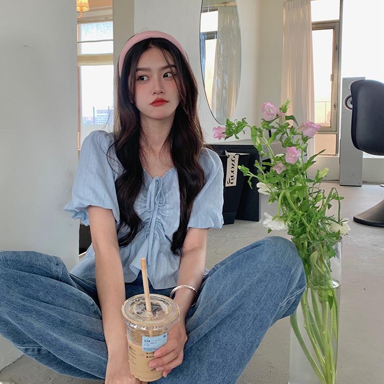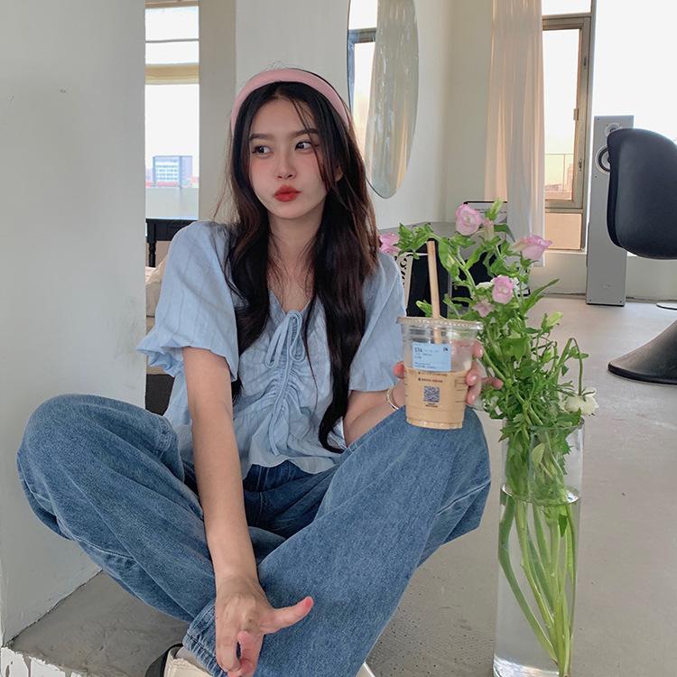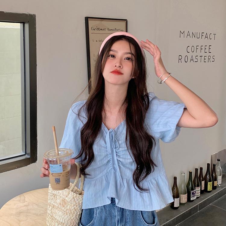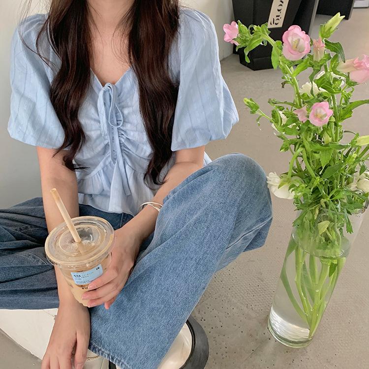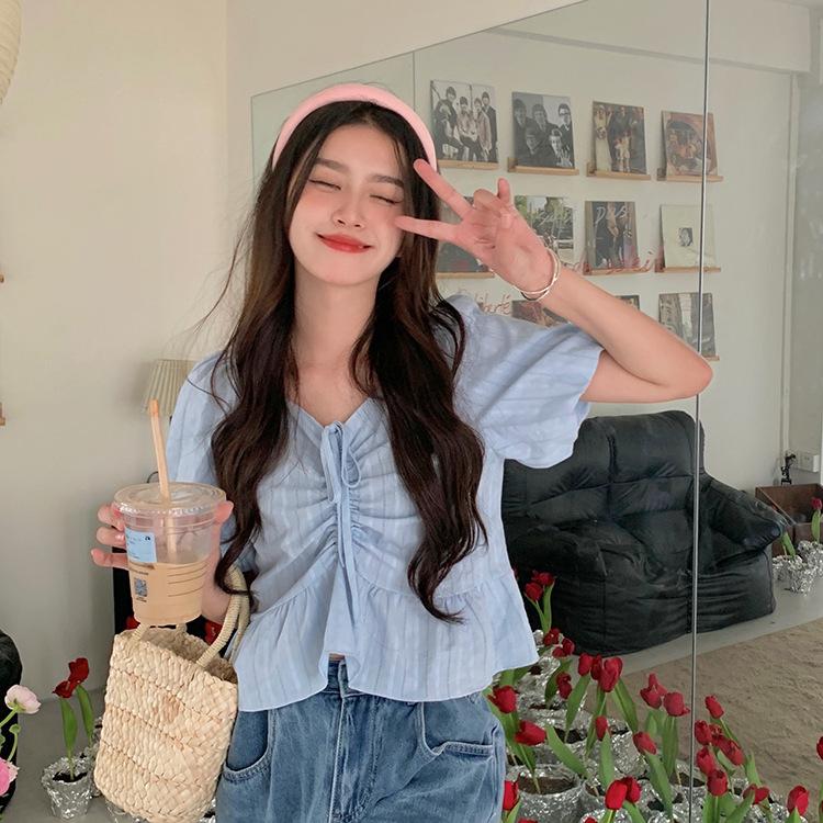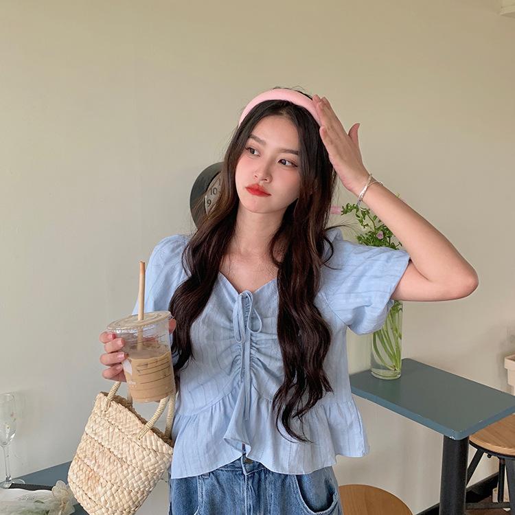 2024 Gordo mm Verano Nuevo Estilo Coreano Cordón Camisa Manga Corta Sentido del Diseño Nicho Francés Algodón Camiseta Pequeña Top