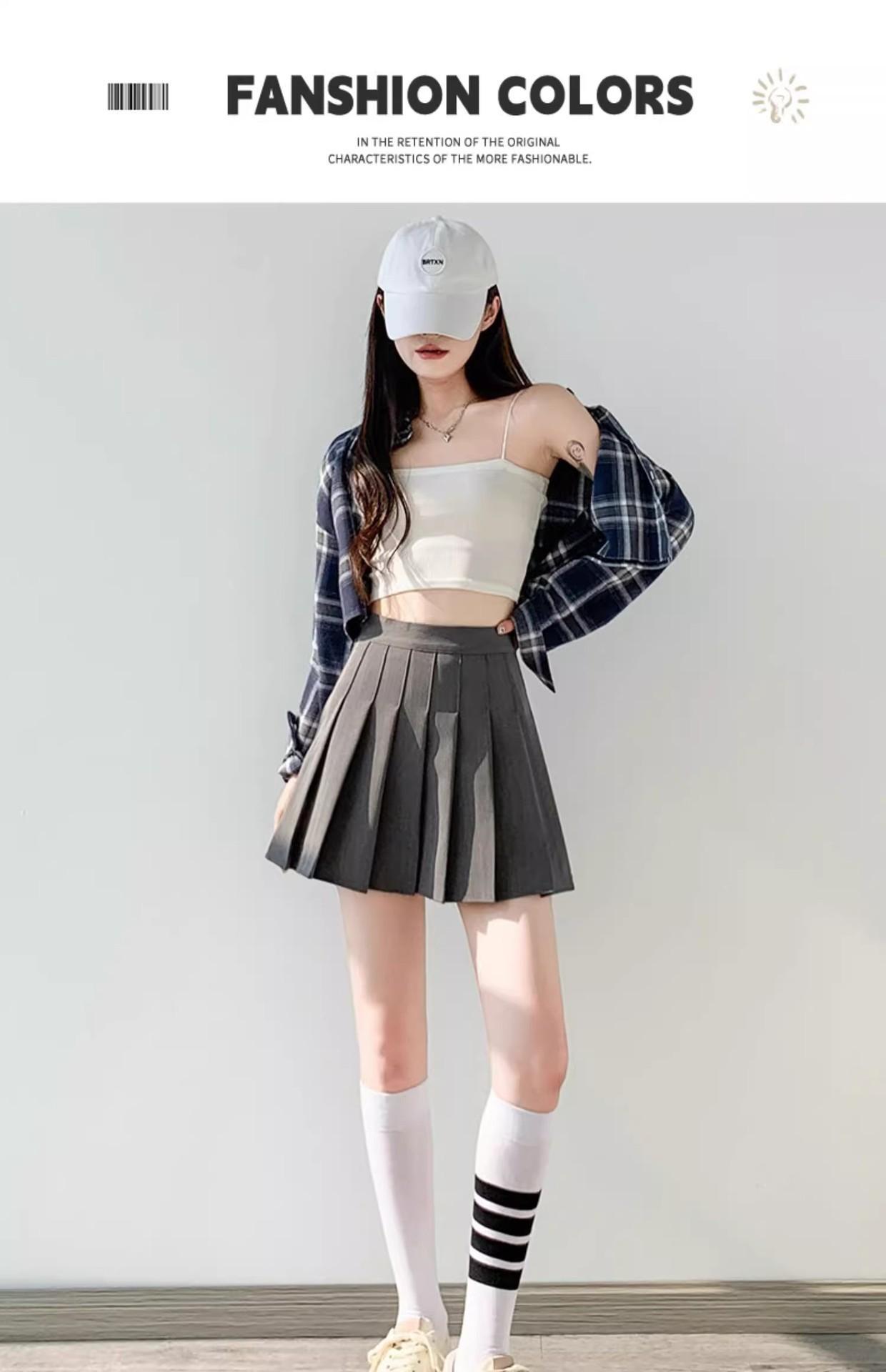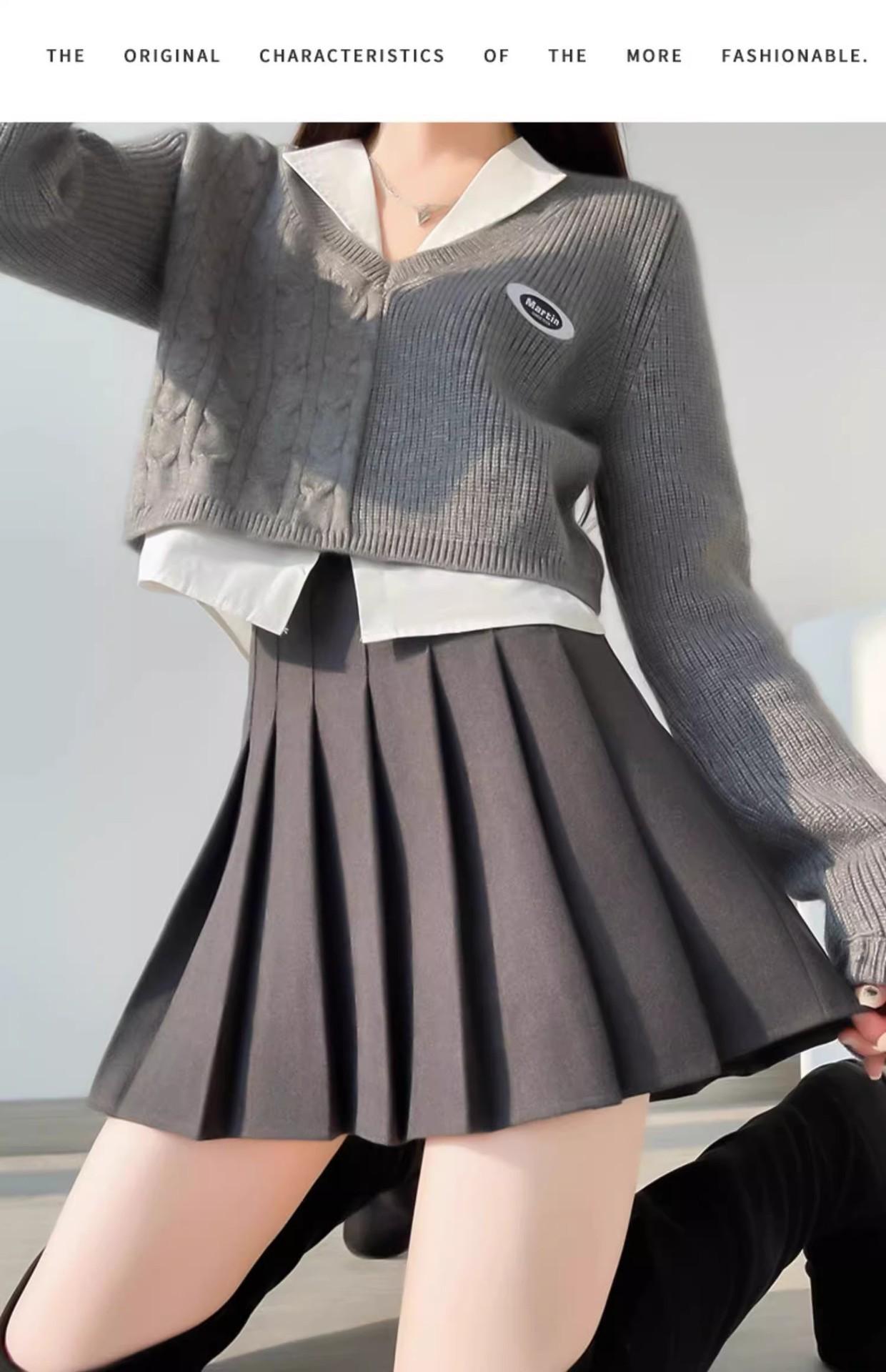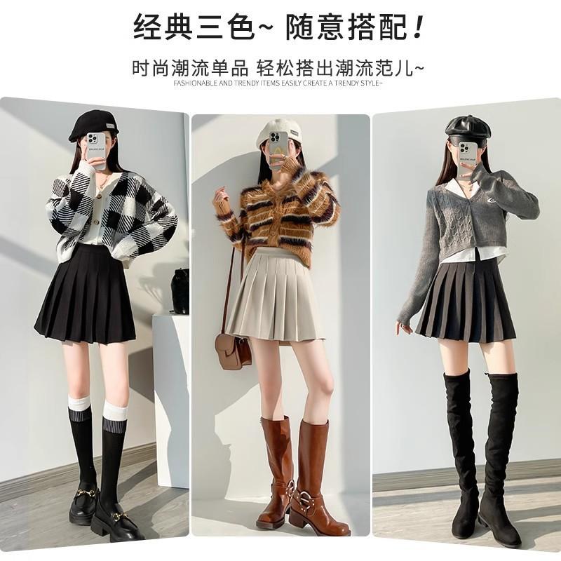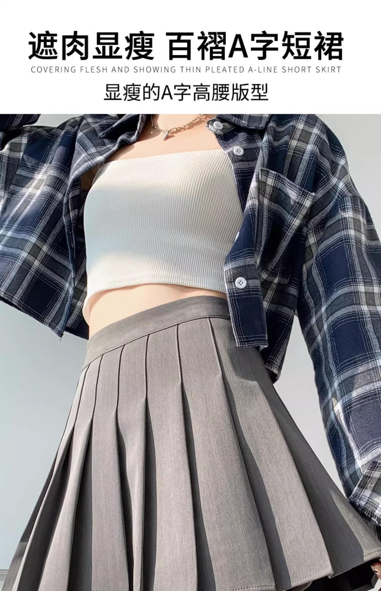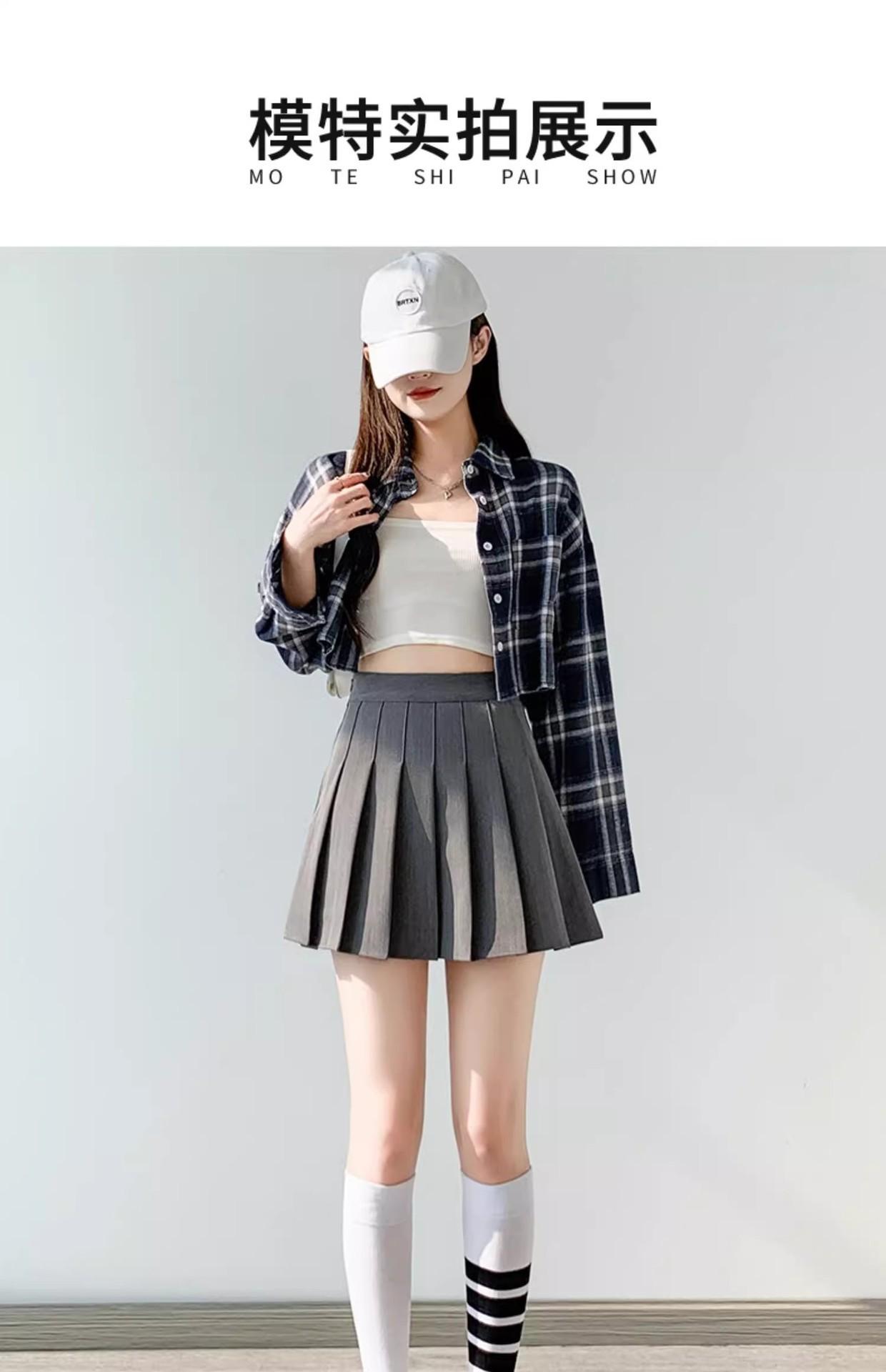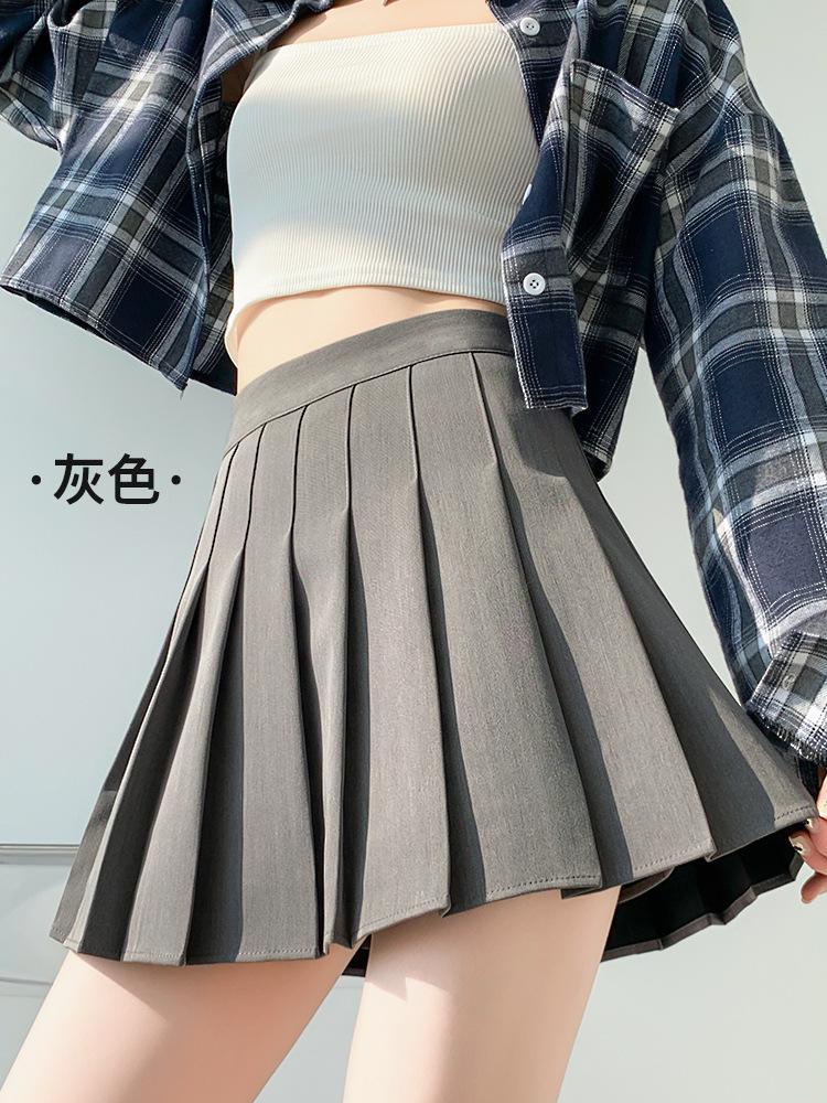 Falda plisada gris para mujer, nueva primavera 2024, fina, de cintura alta, corte A, falda JK