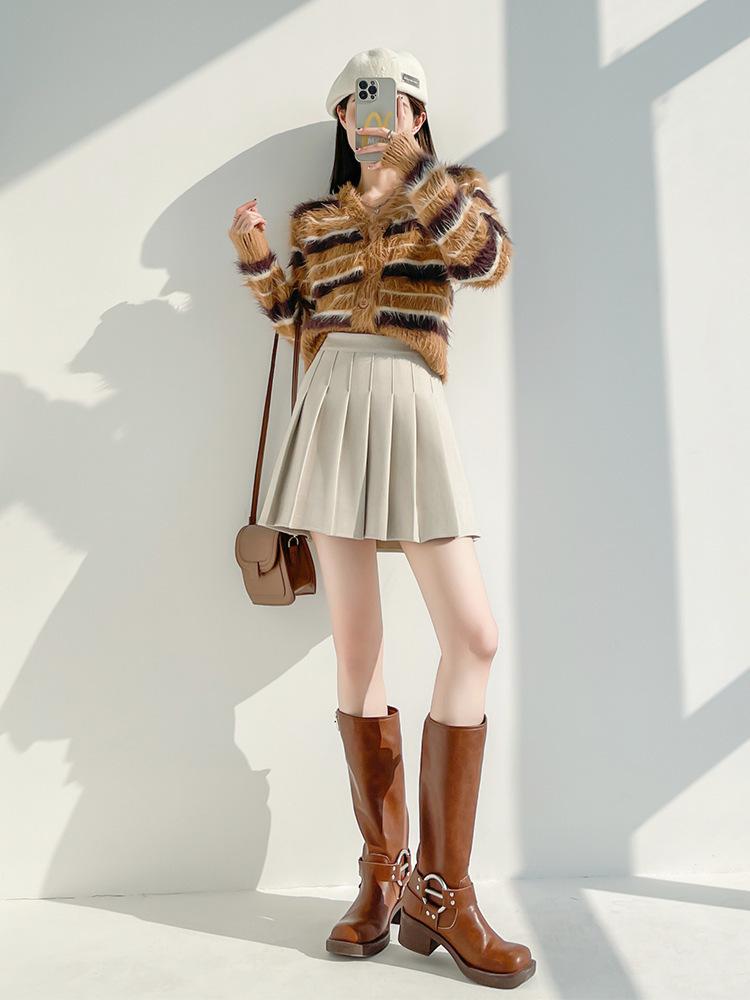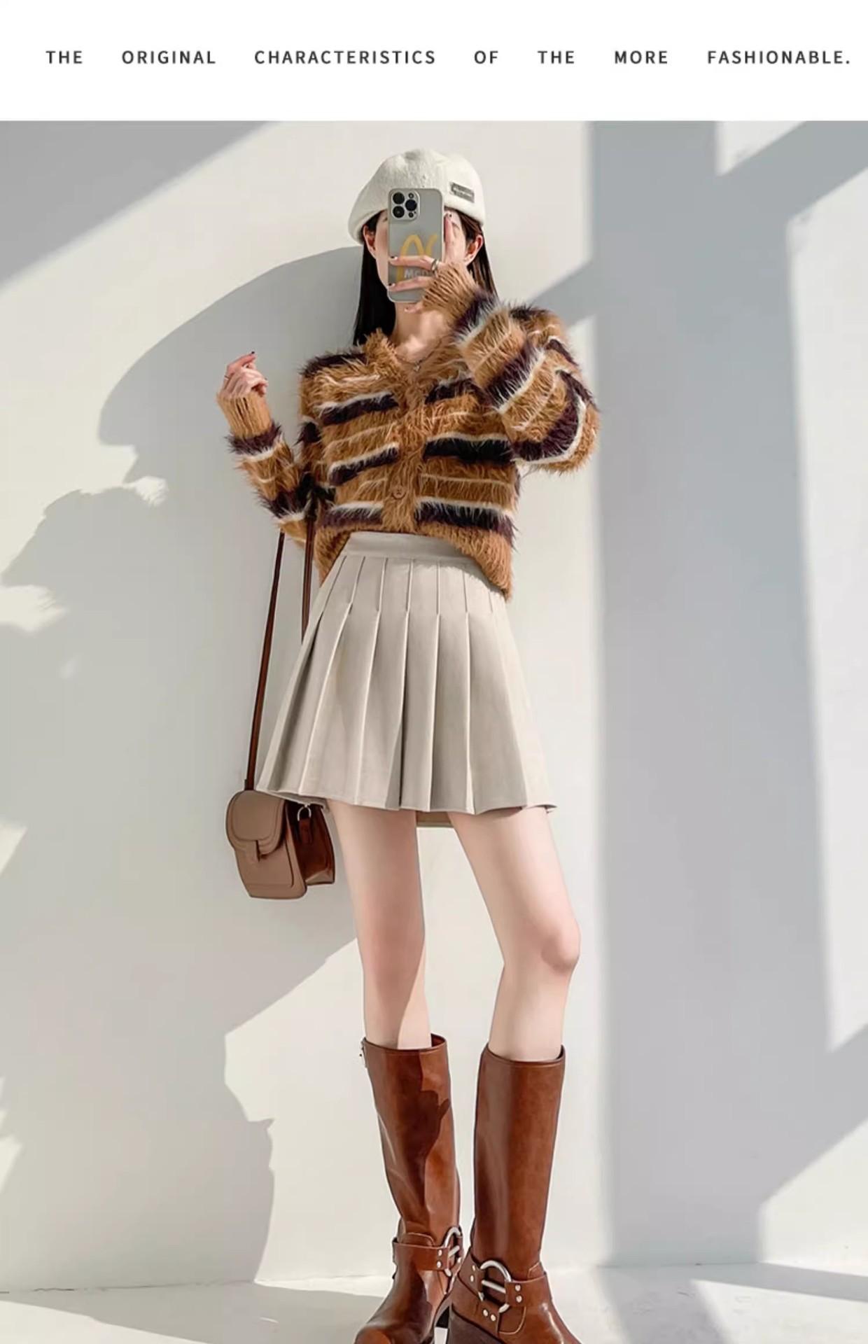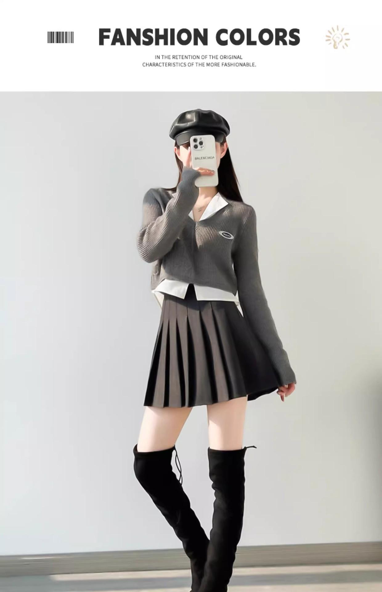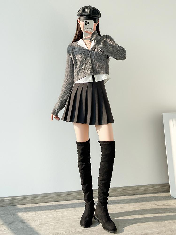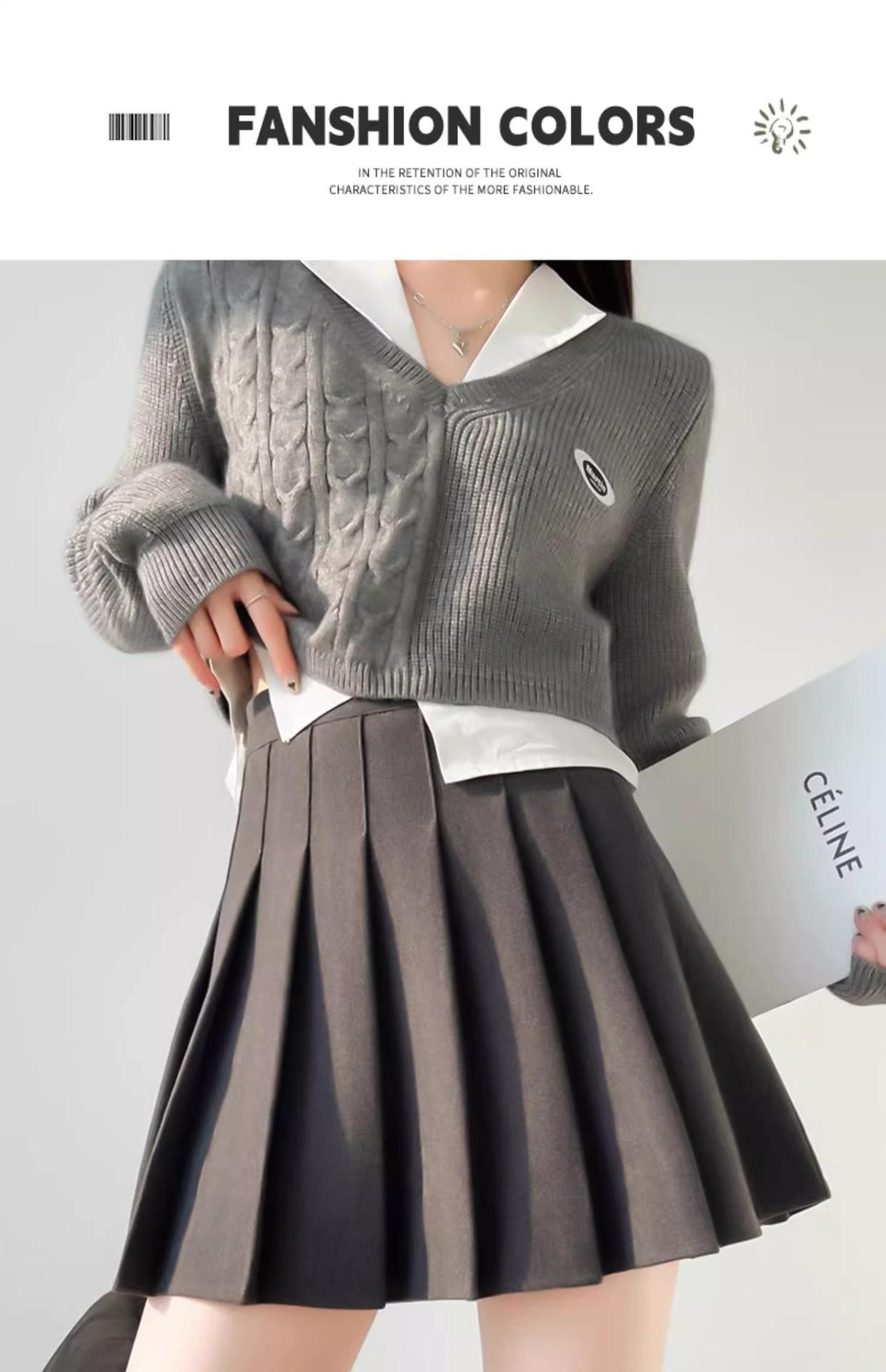 Falda plisada gris para mujer, nueva primavera 2024, fina, de cintura alta, corte A, falda JK