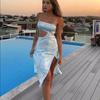 Vestido elegante y sexy con abertura y cuello en V, estilo europeo y americano, verano 2023