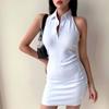 Vestido sexy para mujer, estilo europeo y americano, con cuello de solapa, sin espalda, elegante, ajustado y con falda a la cadera.
