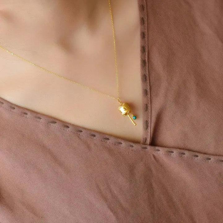Turquoise prayer cylinder single pendant, Turquoise prayer cylinder pendant with cross chain