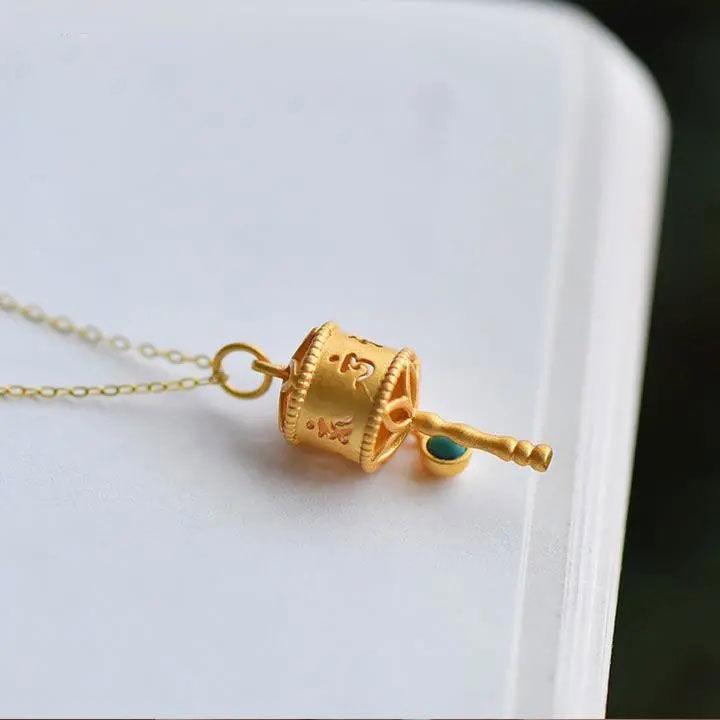 Collar de clavícula chapado en oro con colgante de cilindro de oración, joyería de mantra de seis palabras, collar pequeño personalizado para mujer, combina con todo.