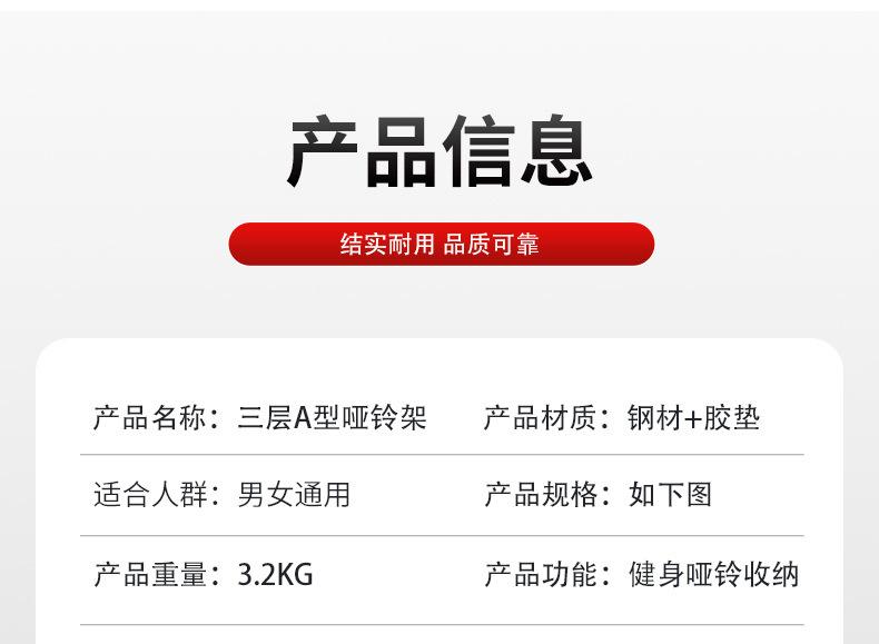 Estante para mancuernas tipo A de tres capas, engrosado y de alta resistencia, para gimnasios de interior y hogar, con 3 pares de mancuernas pequeñas, venta al por mayor transfronteriza