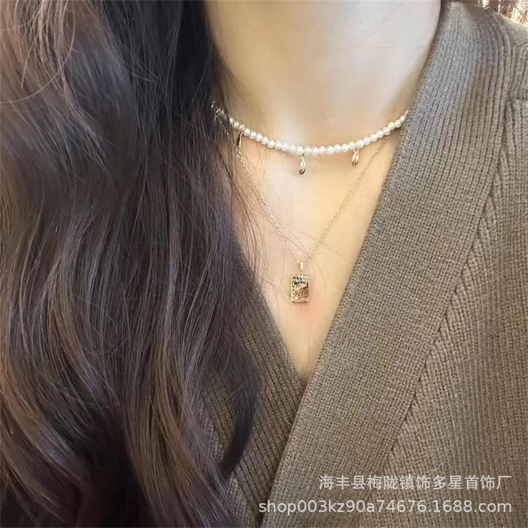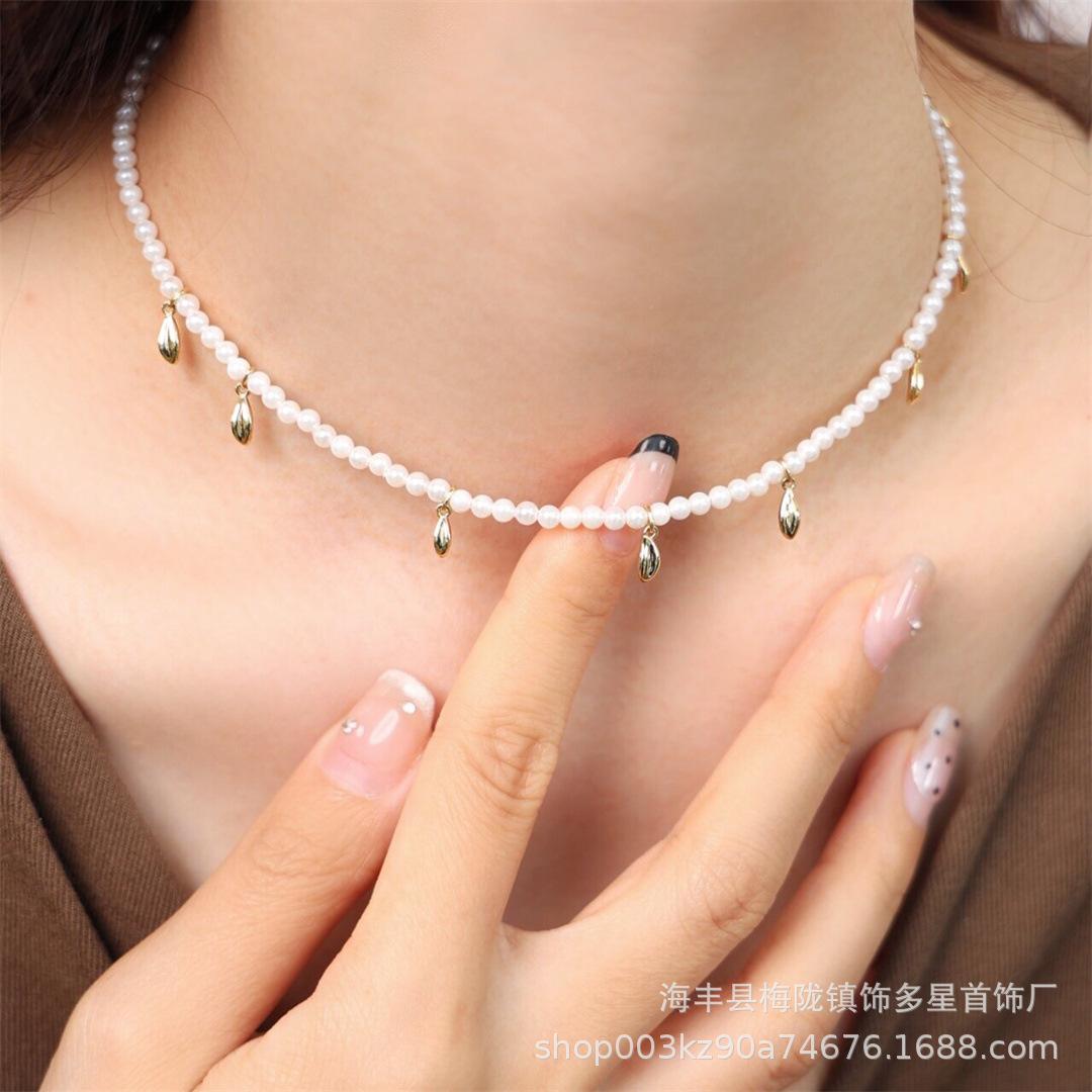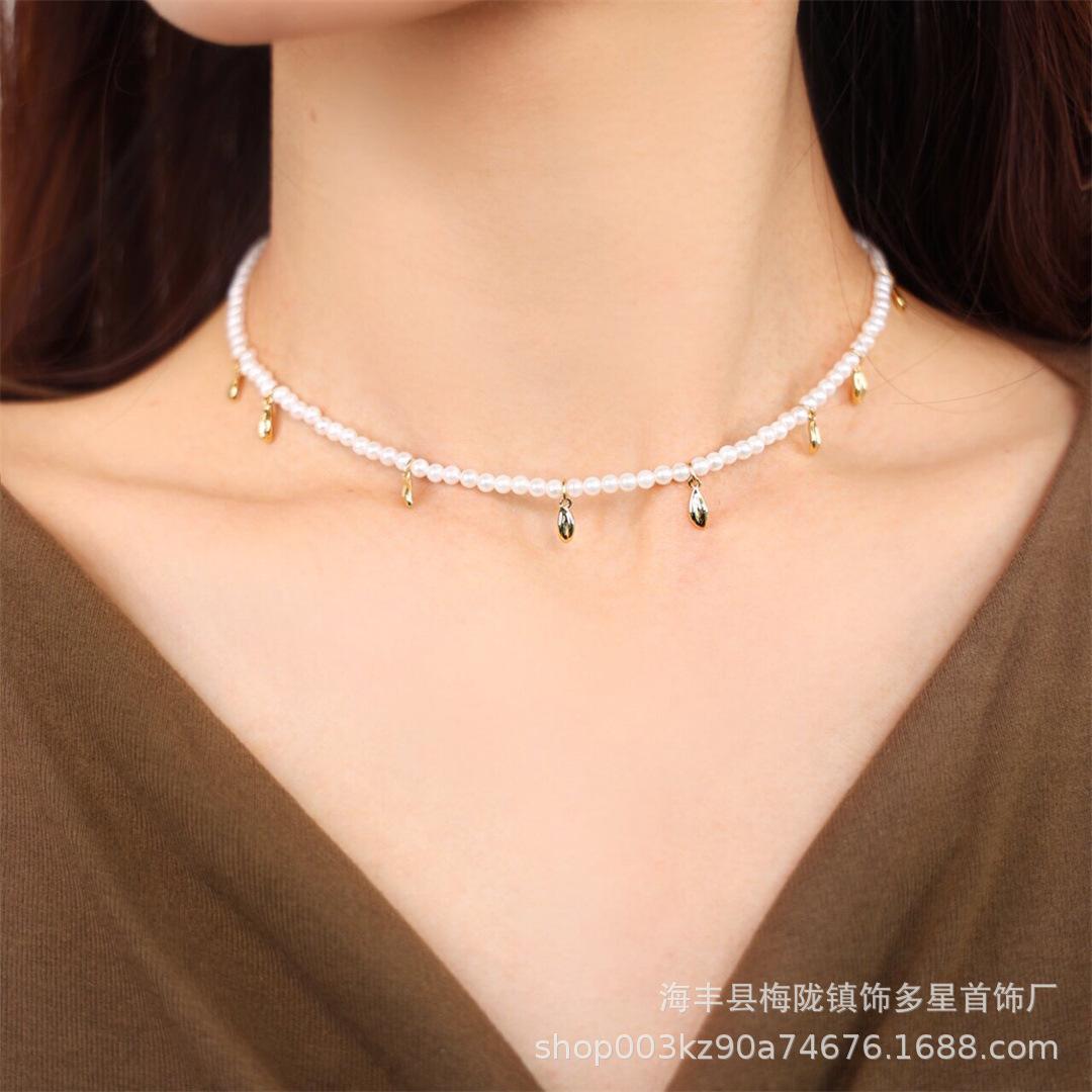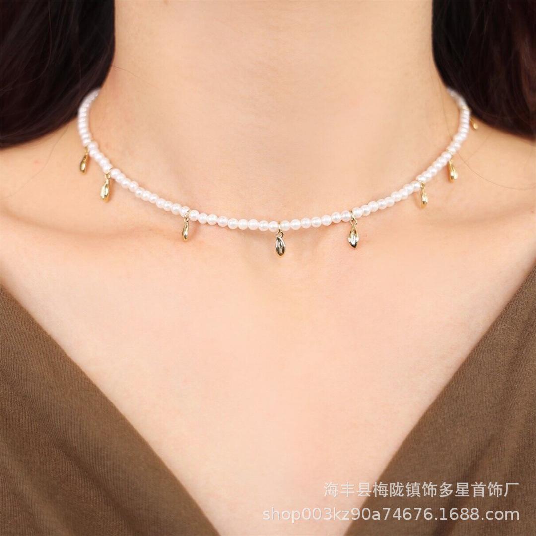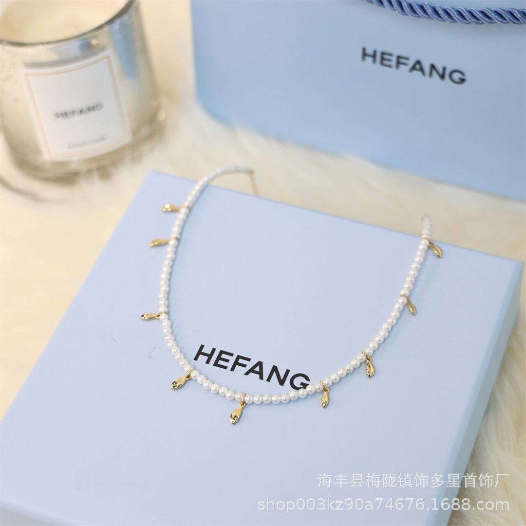 Collar de Perlas Hoja de Oro Hefang para Mujer Regalo de San Valentín Fabricante Dropshipping Colgante Estilo Coreano