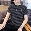 Nueva camiseta de cuello redondo para hombre, de marca de moda, ajustada, elegante, de verano, a rayas, de manga corta, camiseta de moda para hombre.
