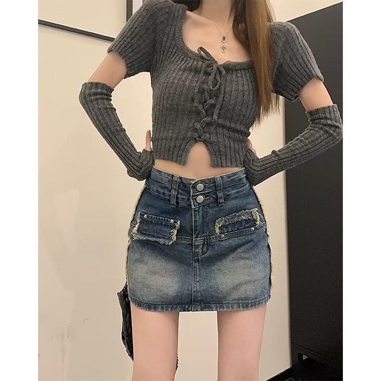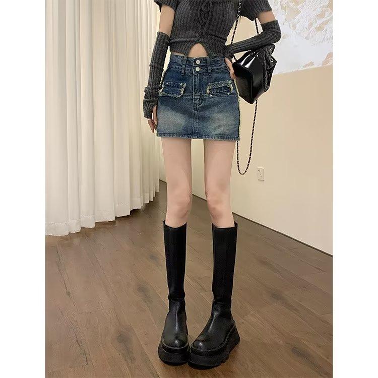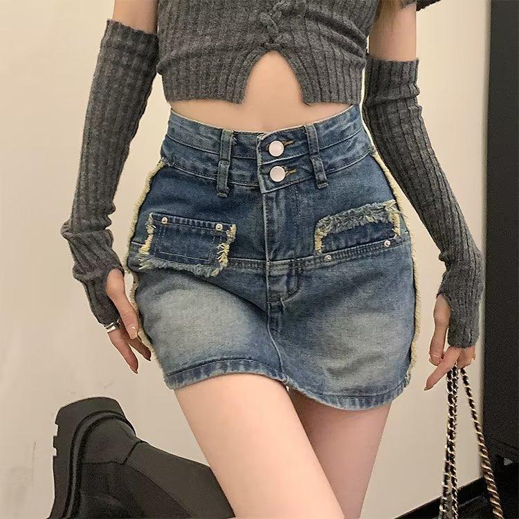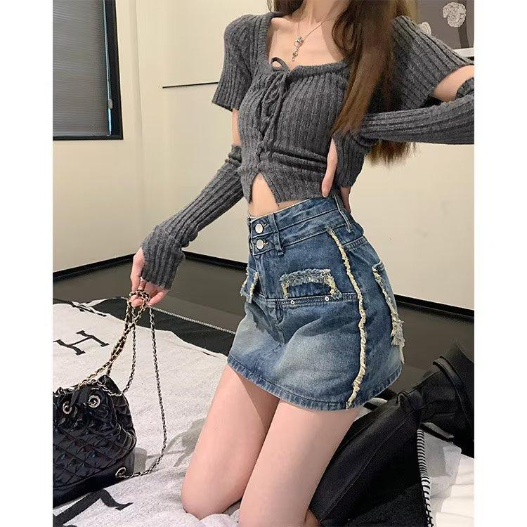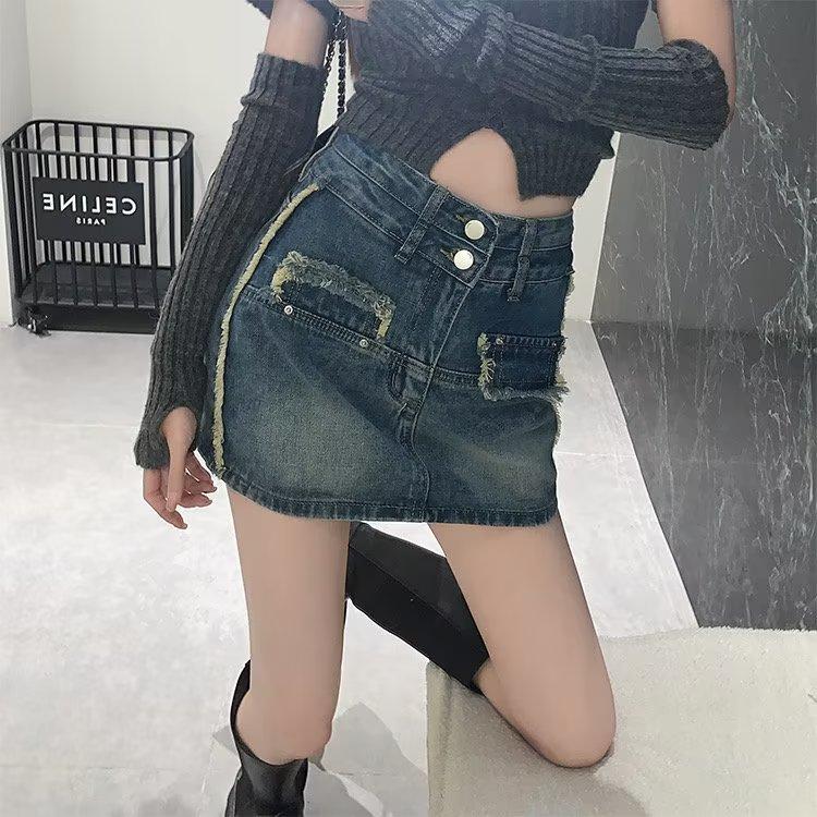 2024 Verano Nuevo Diseño MM Falda de Mezclilla Falda Corta para Mujer Talla Grande Cintura Alta Slim A-line Falda de Cadera