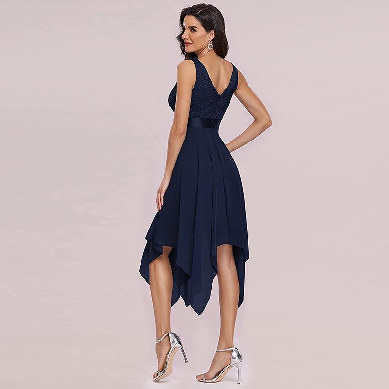 2025 Nuevo Vestido de Gasa Transfronterizo Amazon Sexy Encaje Vestidito Cóctel Banquete Vestido de Dama de Honor