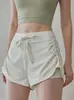 Shorts Deportivos de Yoga para Mujer de Cintura Alta con Cordón Ajustable de Imitación de Dos Piezas Levanta Glúteos Melocotón Pantalones Deportivos Fitness para Exterior Shorts Antiexposición