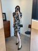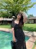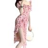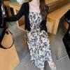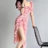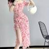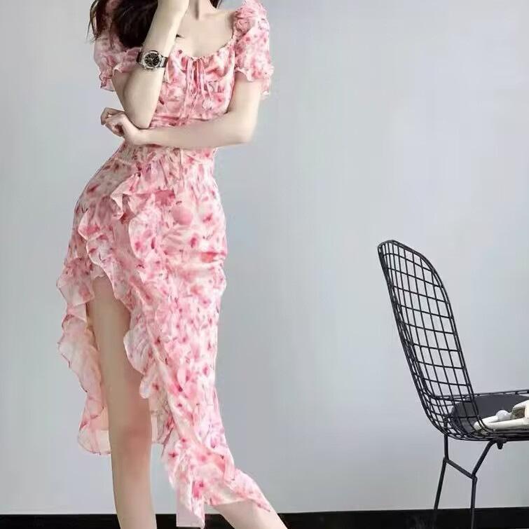 Vestido floral estilo francés para mujer, de verano, talla grande, estilo suave, para chica gordita, cintura ajustada, adelgazante, con volantes, falda larga dividida