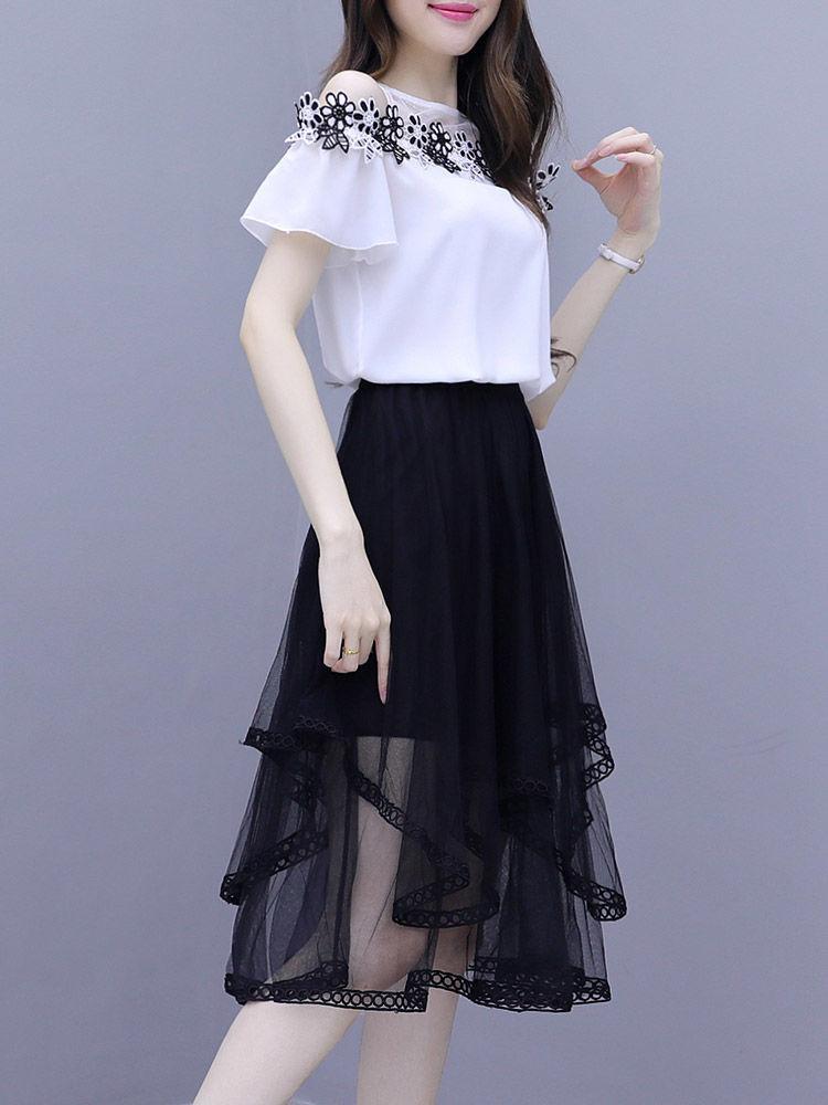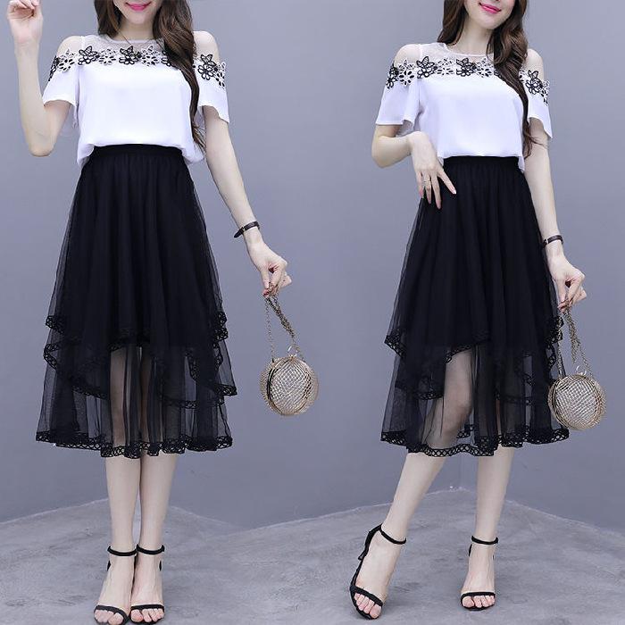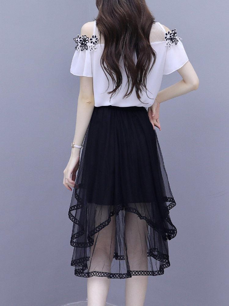 Traje de falda elegante de dos piezas 2024 Verano Nuevo para Mujer Super Slim con hombros descubiertos Moda Elegante Vestido elegante