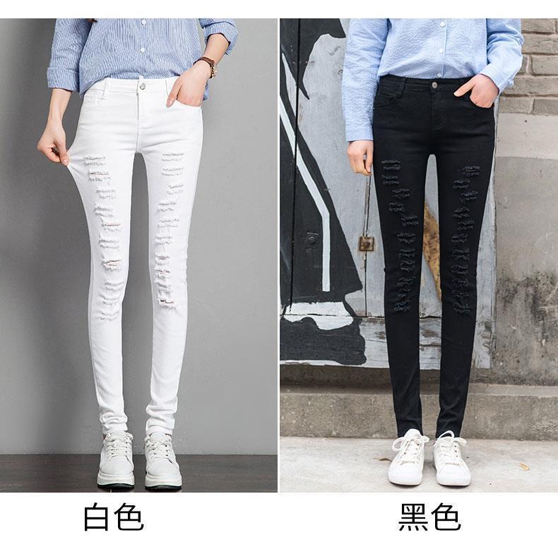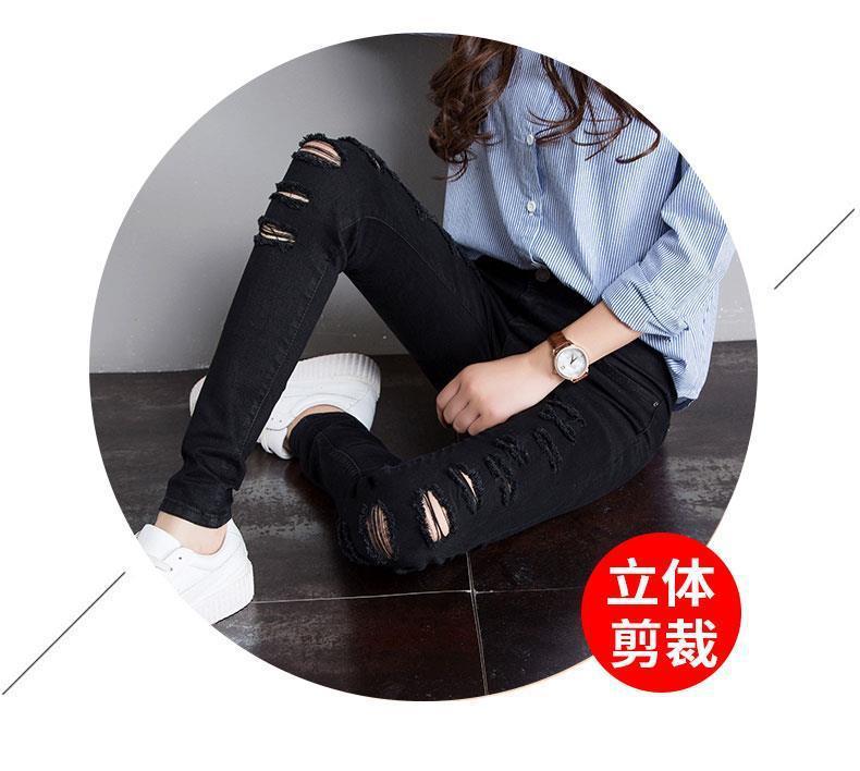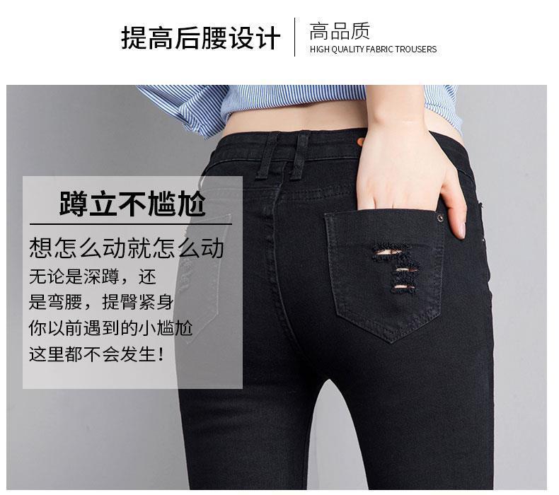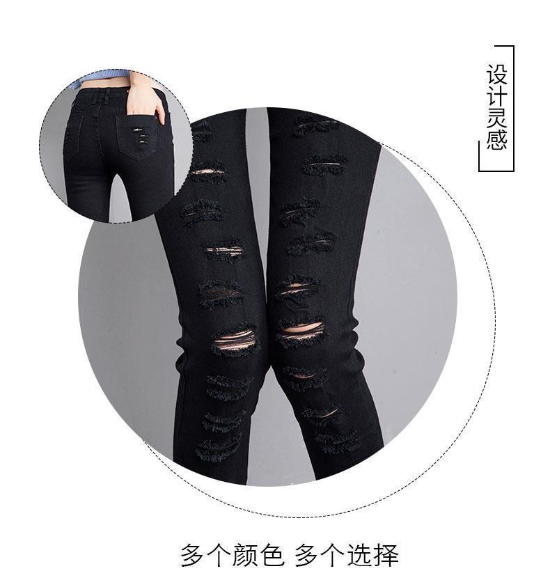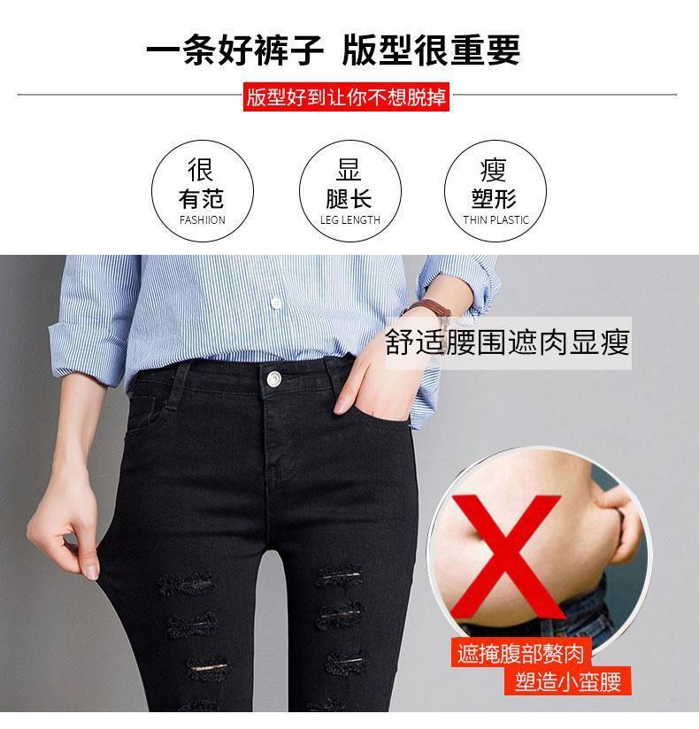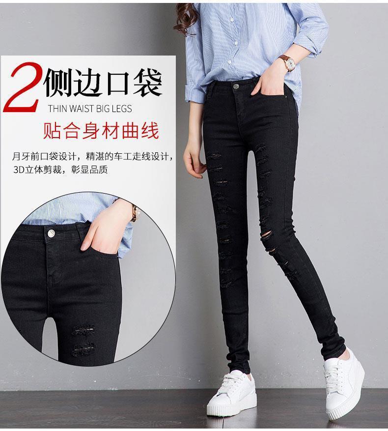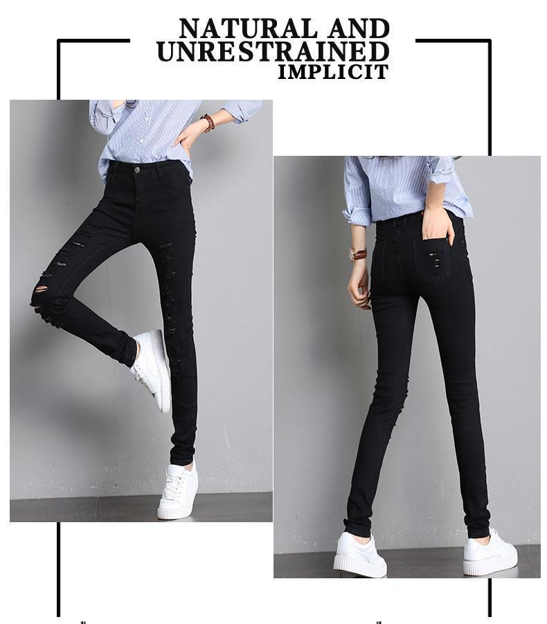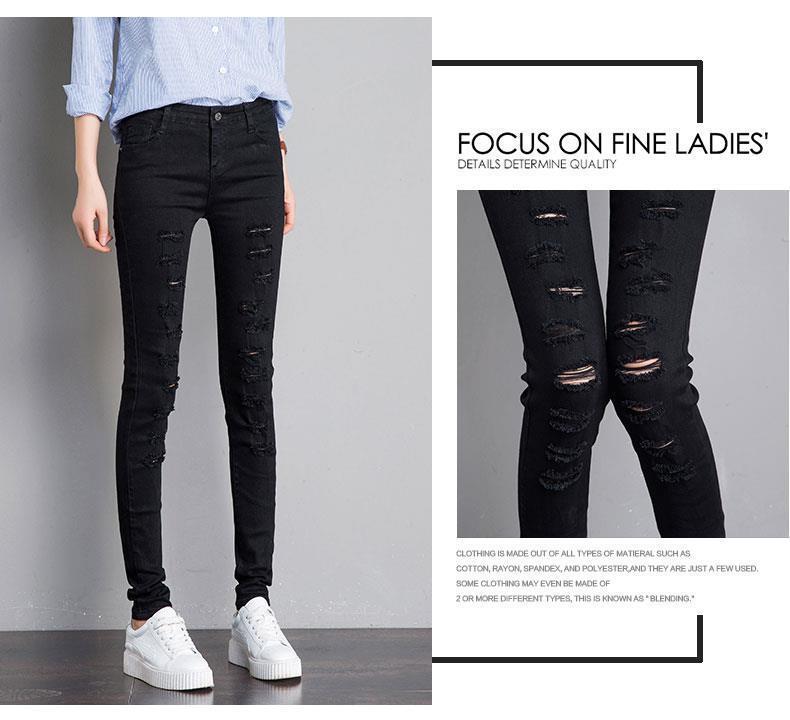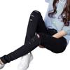 Pantalones vaqueros negros rotos para mujer, verano 2024, ajustados, elásticos, de cintura alta, adelgazantes, recortados, tipo lápiz