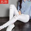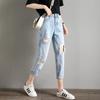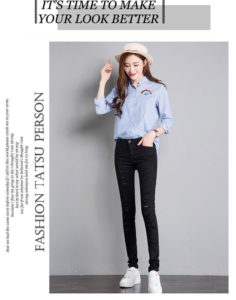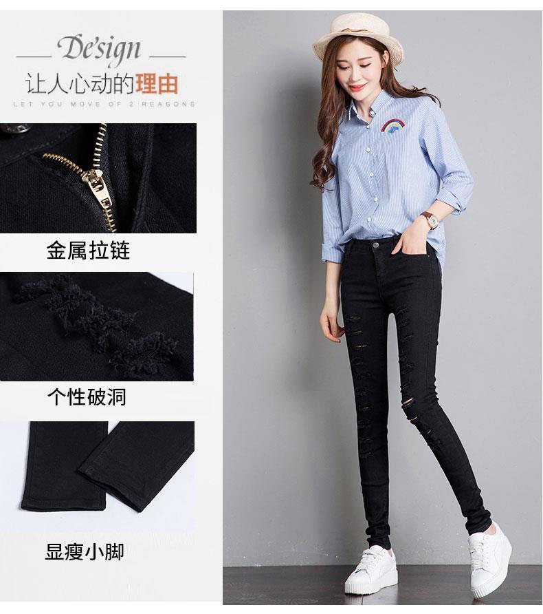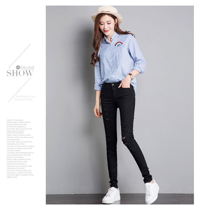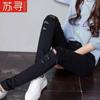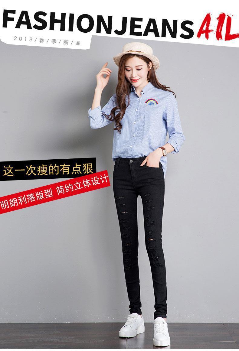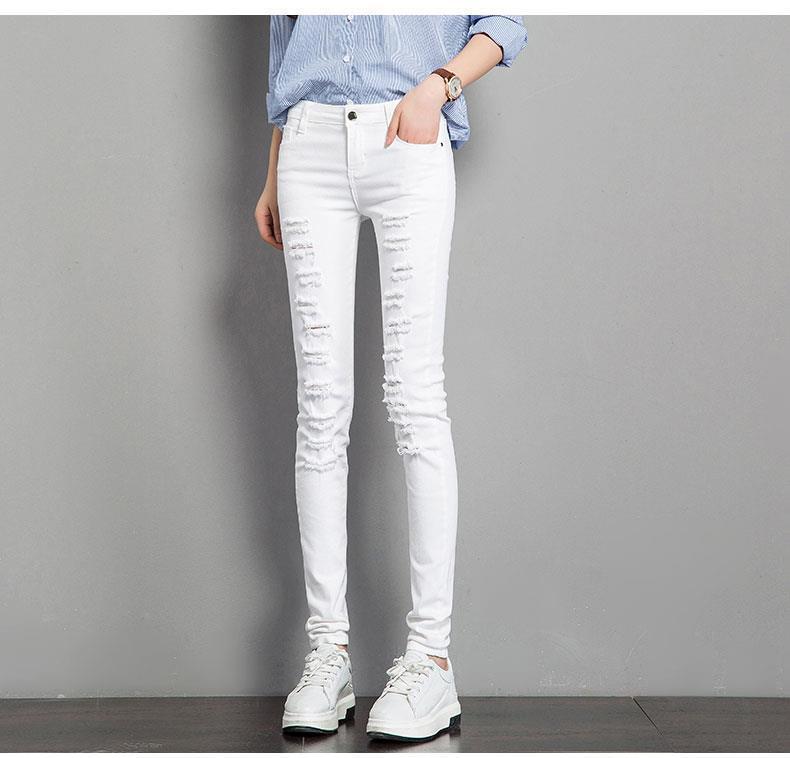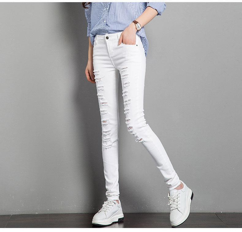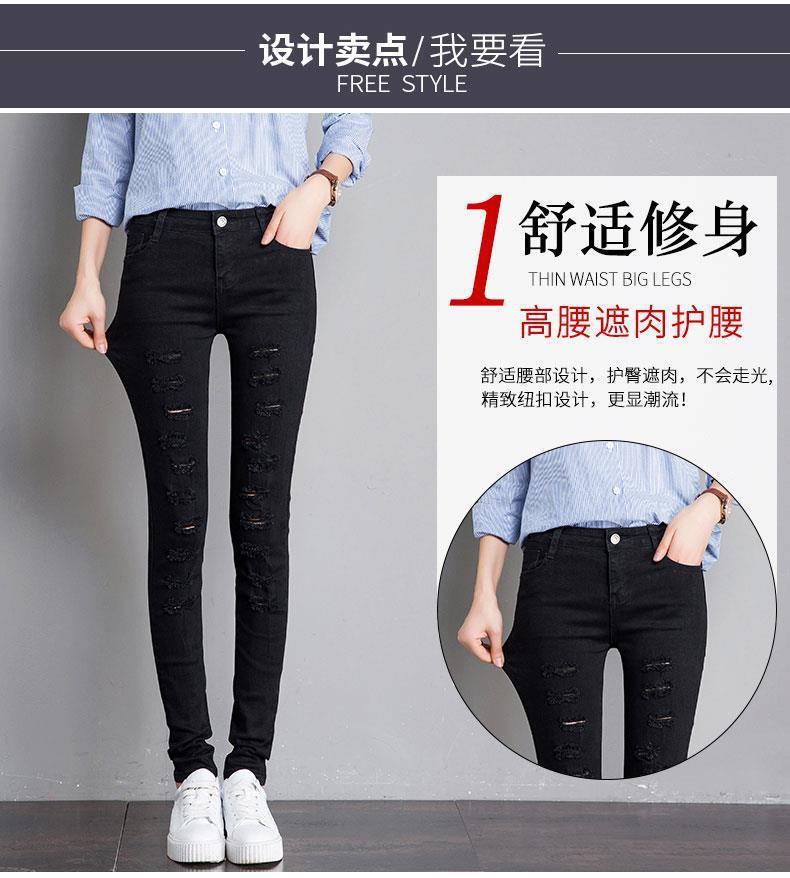 Pantalones vaqueros negros rotos para mujer, verano 2024, ajustados, elásticos, de cintura alta, adelgazantes, recortados, tipo lápiz