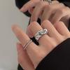 Anillo de plata S925 estilo coreano para mujer, con pliegues irregulares, retro, elegante, exagerado, de doble capa, cuadrado, redondo, abierto, para el dedo índice.