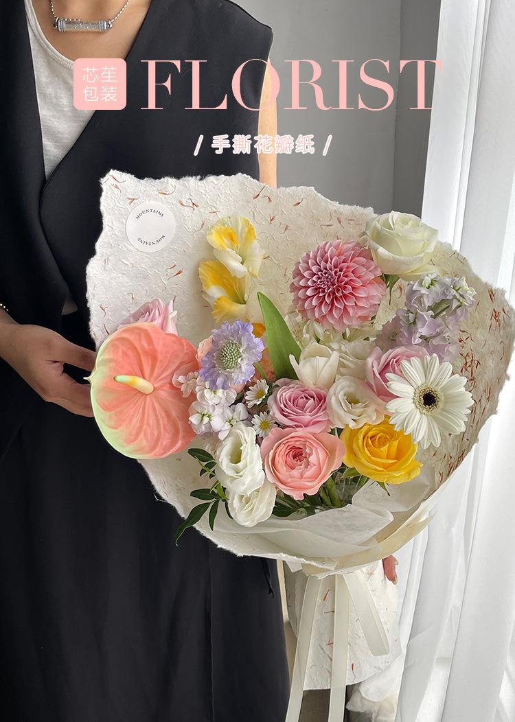 Papel de regalo para ramo de flores con pétalos rasgados a mano de Core Fu, papel de regalo floral, decoraciones creativas, accesorios de material de bricolaje