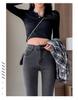 Jeans de cintura alta gris ahumado para mujer Otoño 2023 Nuevos pantalones ajustados elásticos que combinan con todo Pantalones largos ajustados