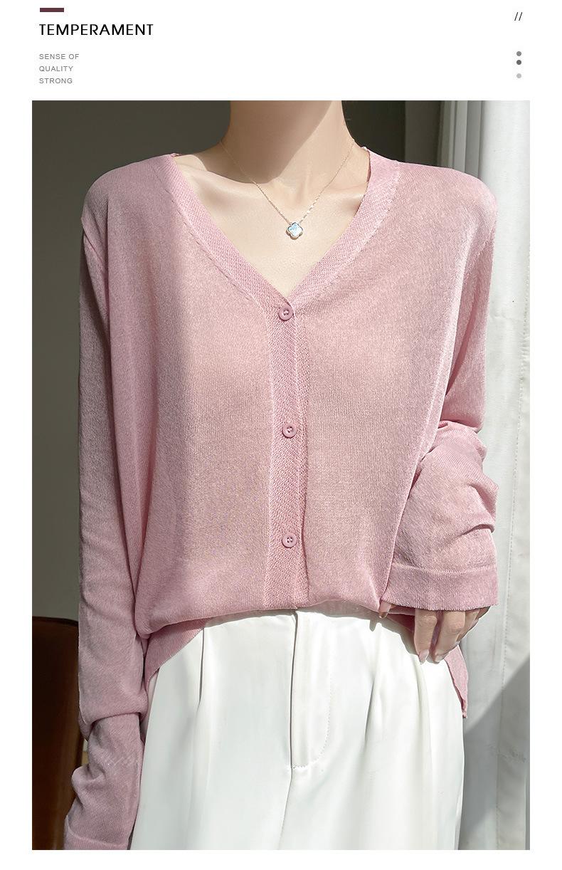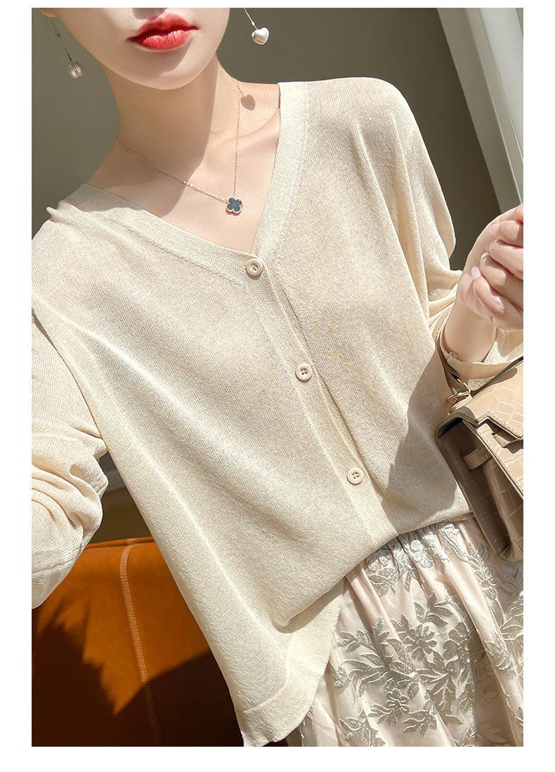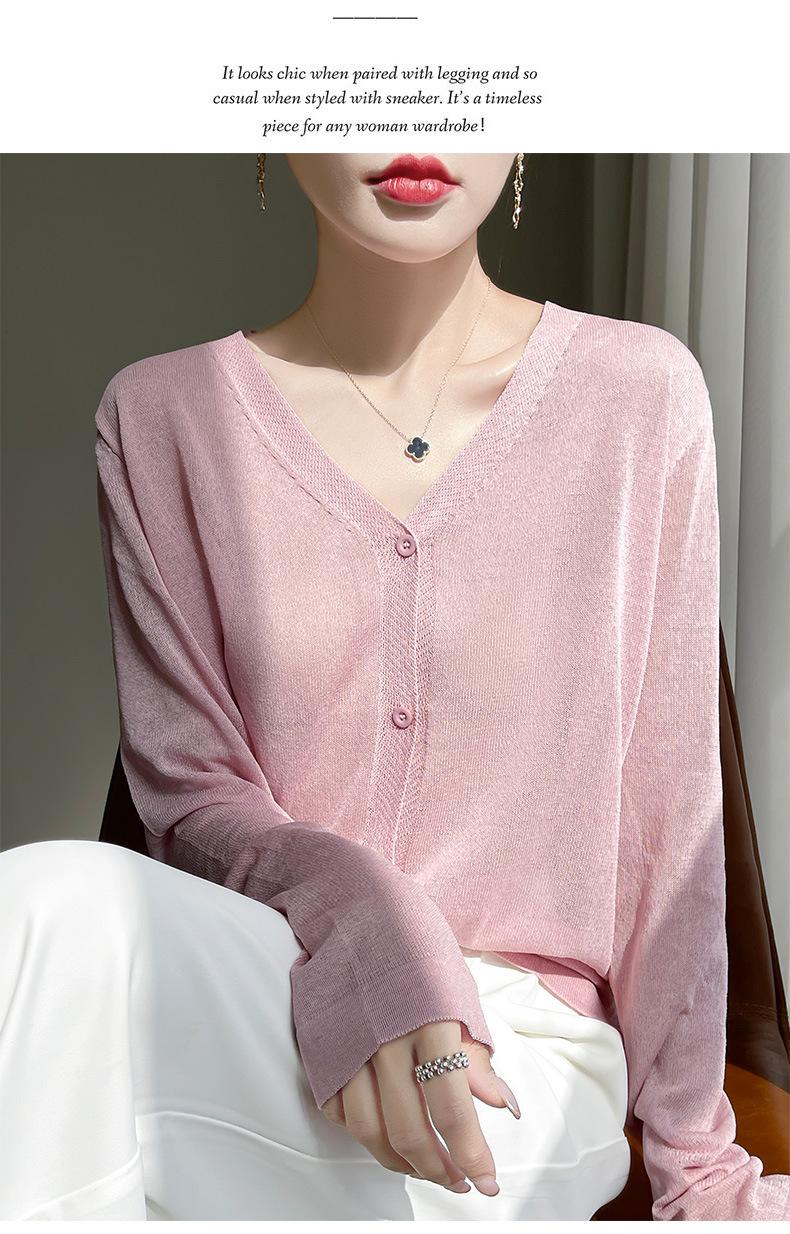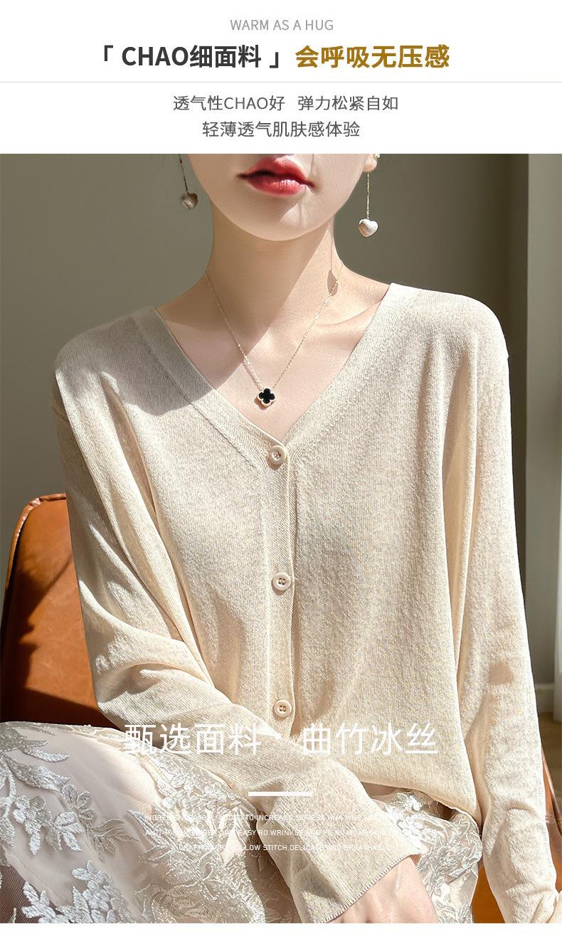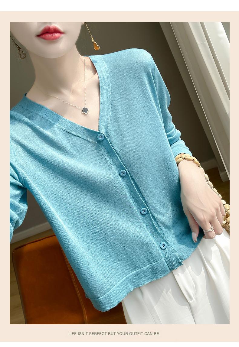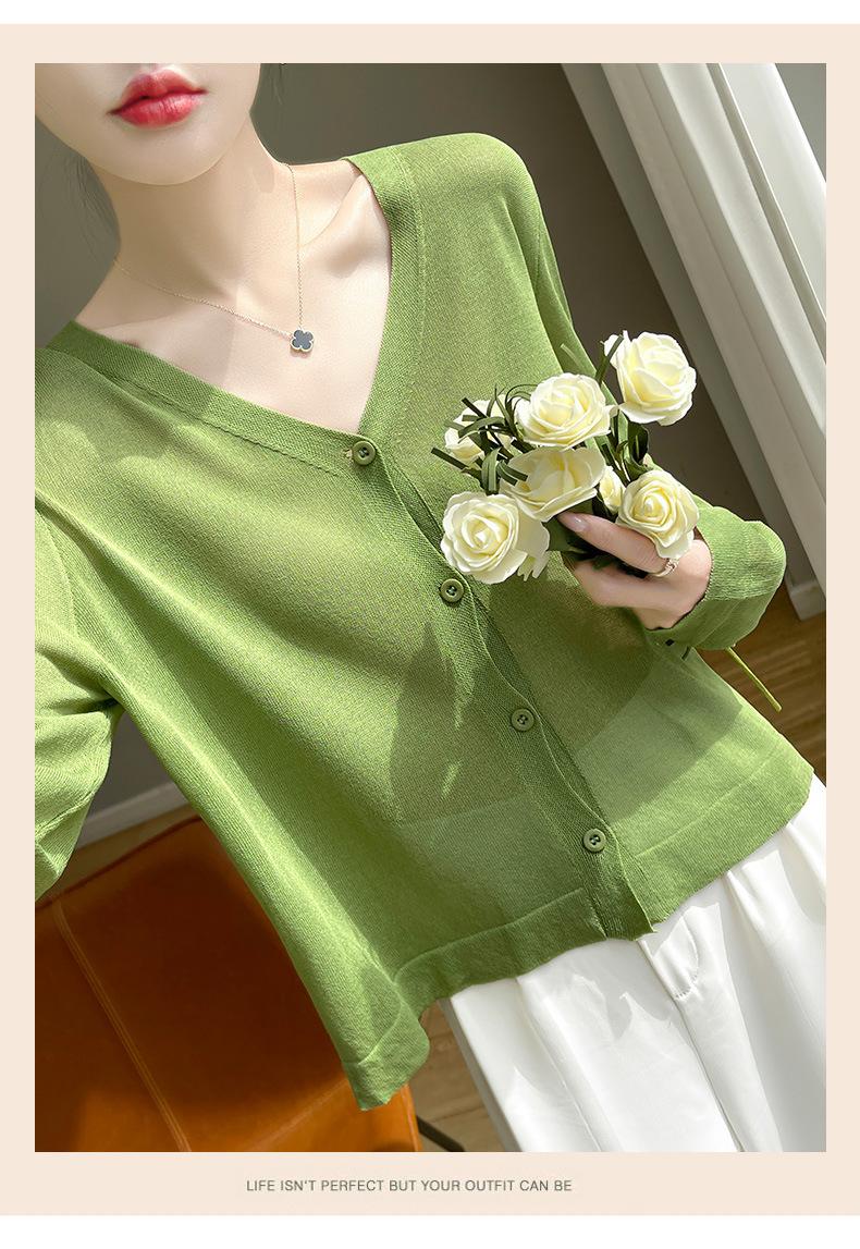 Cárdigan de Punto Fino de Verano con Cuello en V para Mujer, Moda, Acondicionador de Aire, Camisa Protectora Solar, Moda, Estilo Coreano, Camisa de Seda de Hielo Quzhu