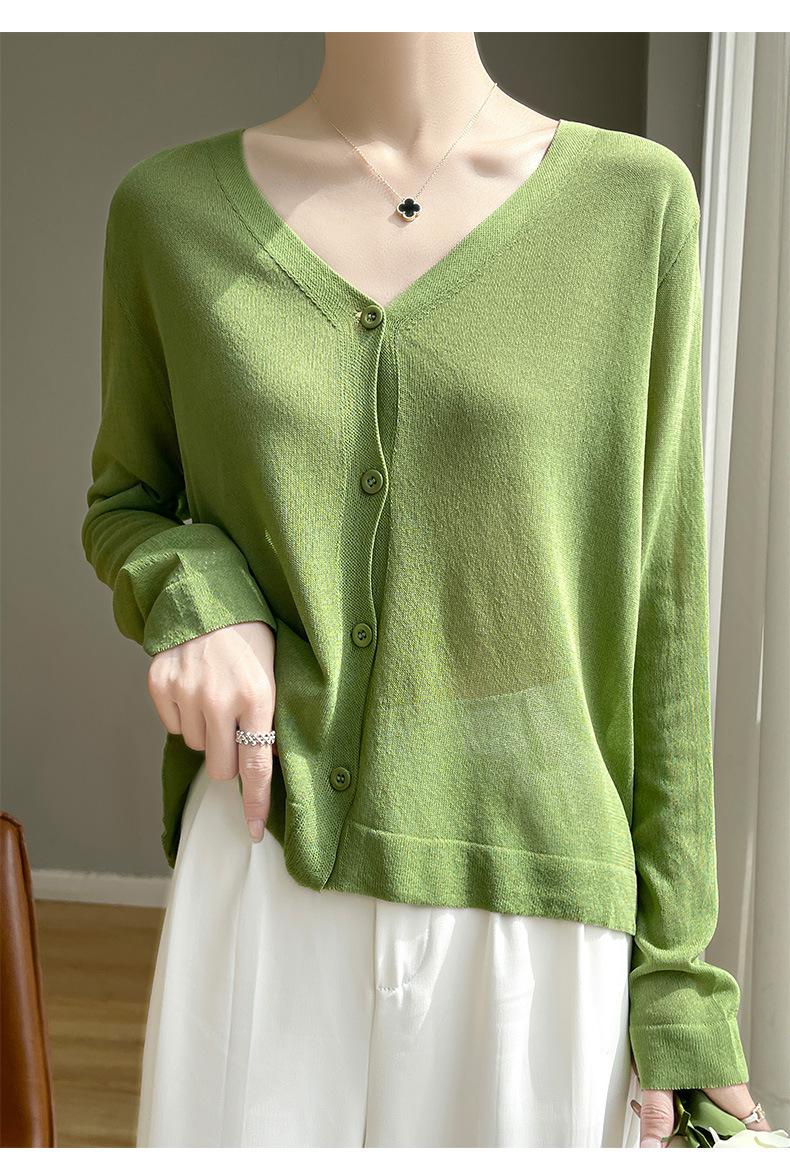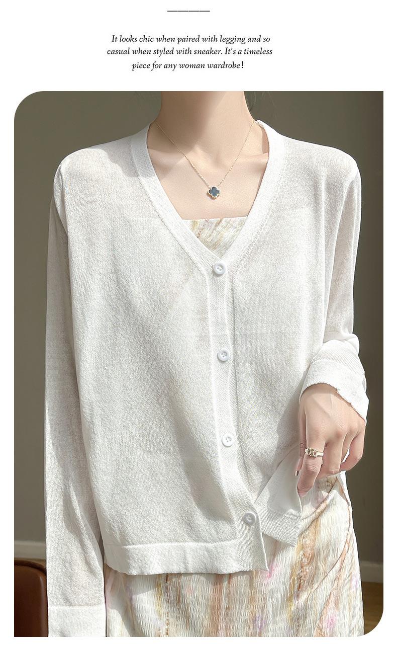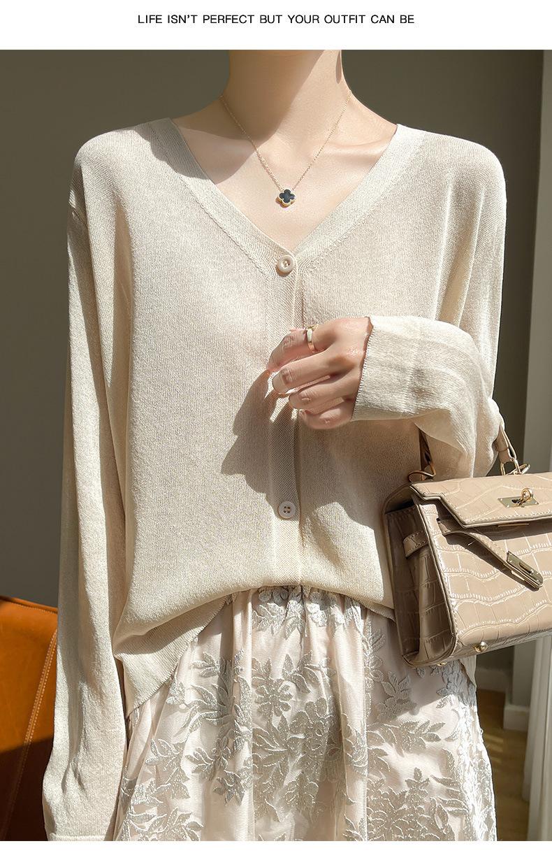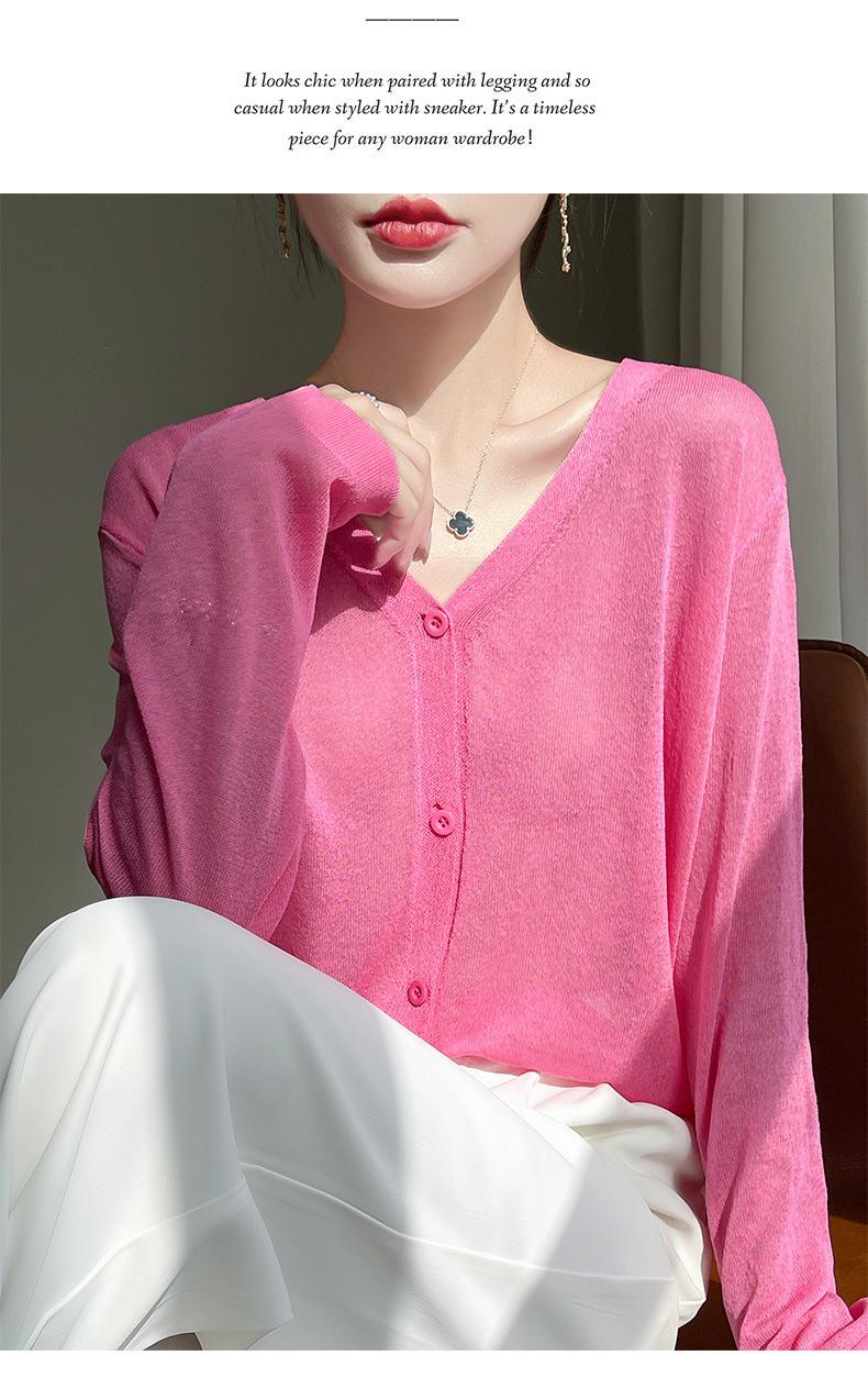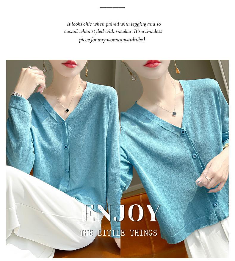 Cárdigan de Punto Fino de Verano con Cuello en V para Mujer, Moda, Acondicionador de Aire, Camisa Protectora Solar, Moda, Estilo Coreano, Camisa de Seda de Hielo Quzhu