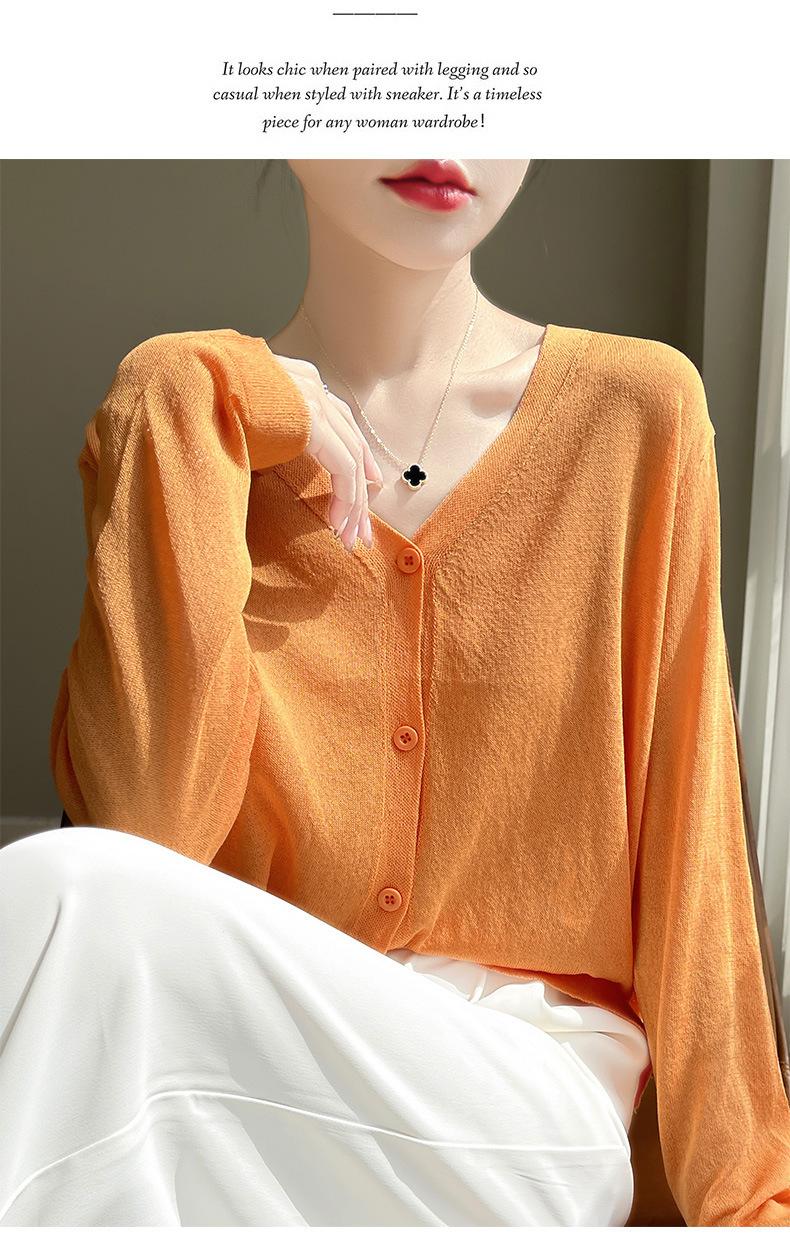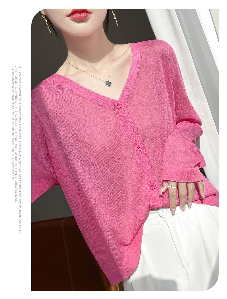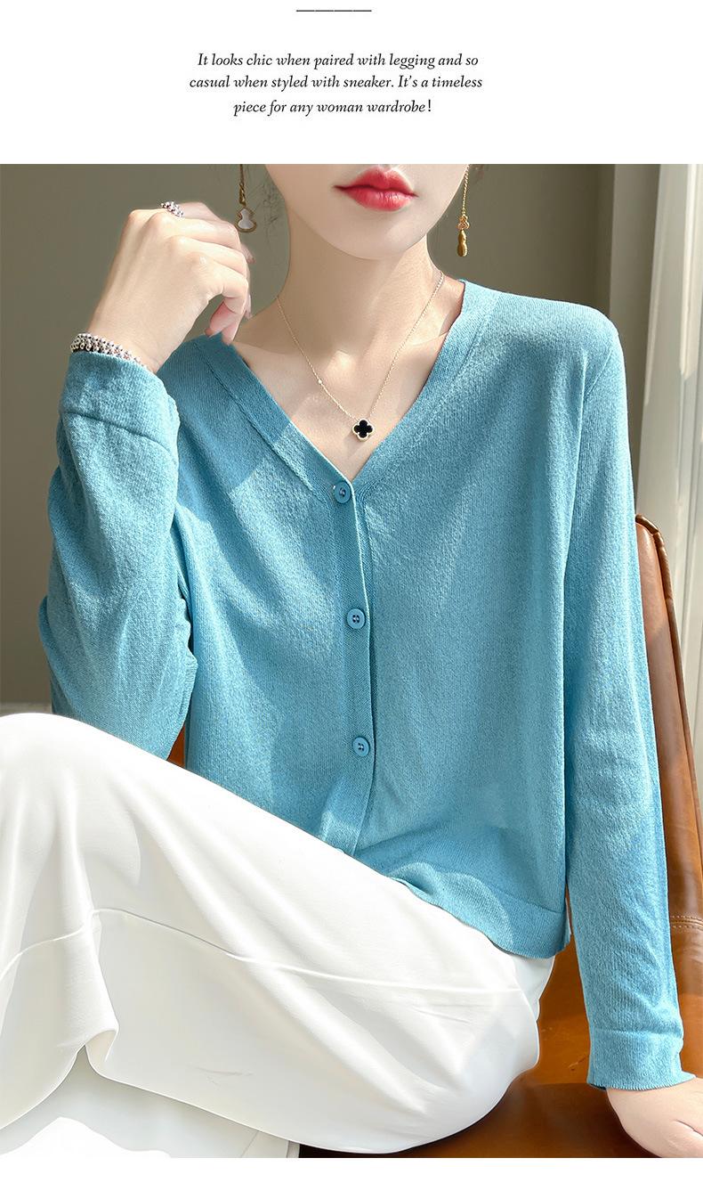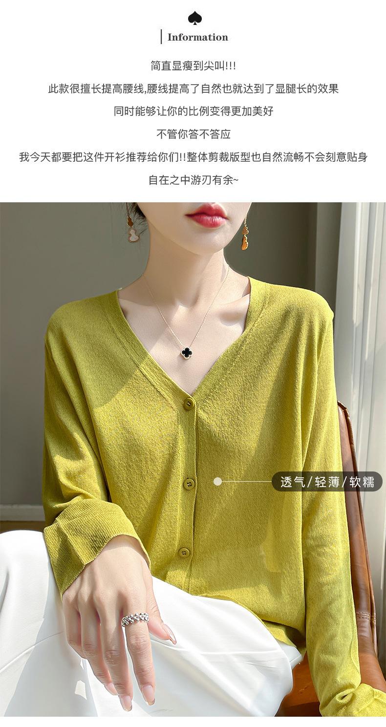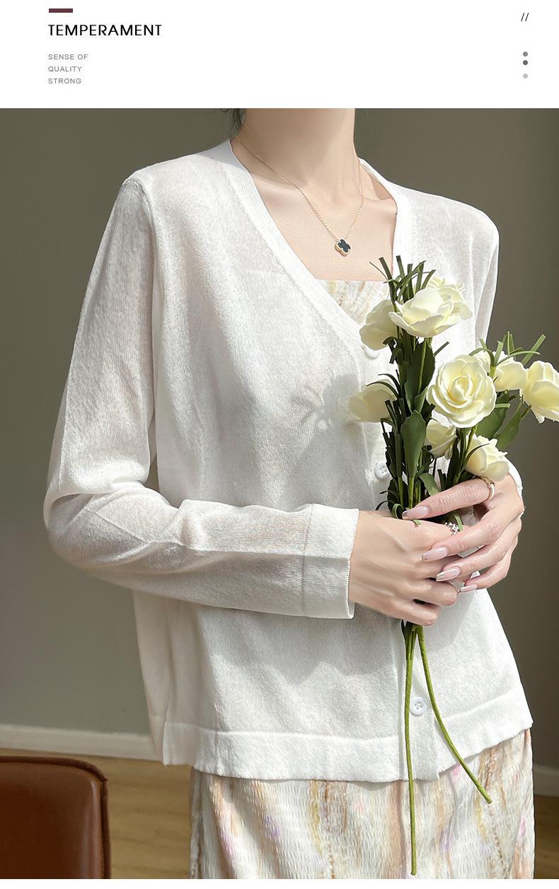 Cárdigan de Punto Fino de Verano con Cuello en V para Mujer, Moda, Acondicionador de Aire, Camisa Protectora Solar, Moda, Estilo Coreano, Camisa de Seda de Hielo Quzhu