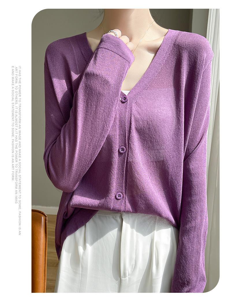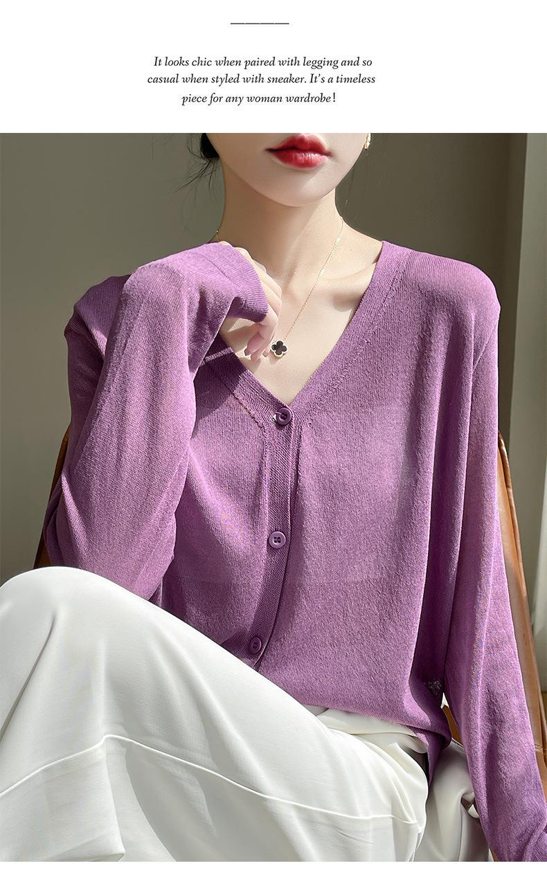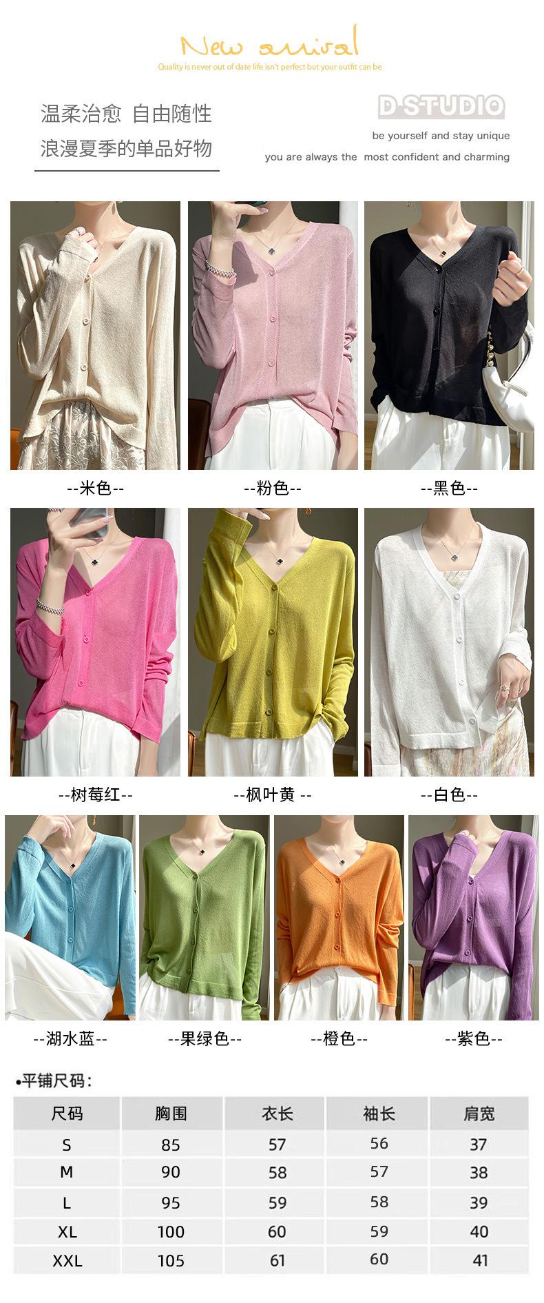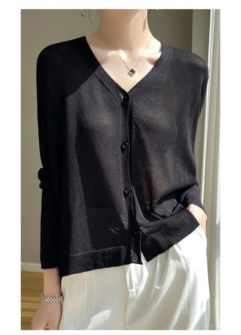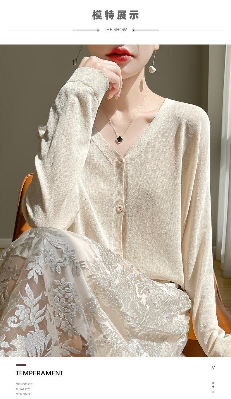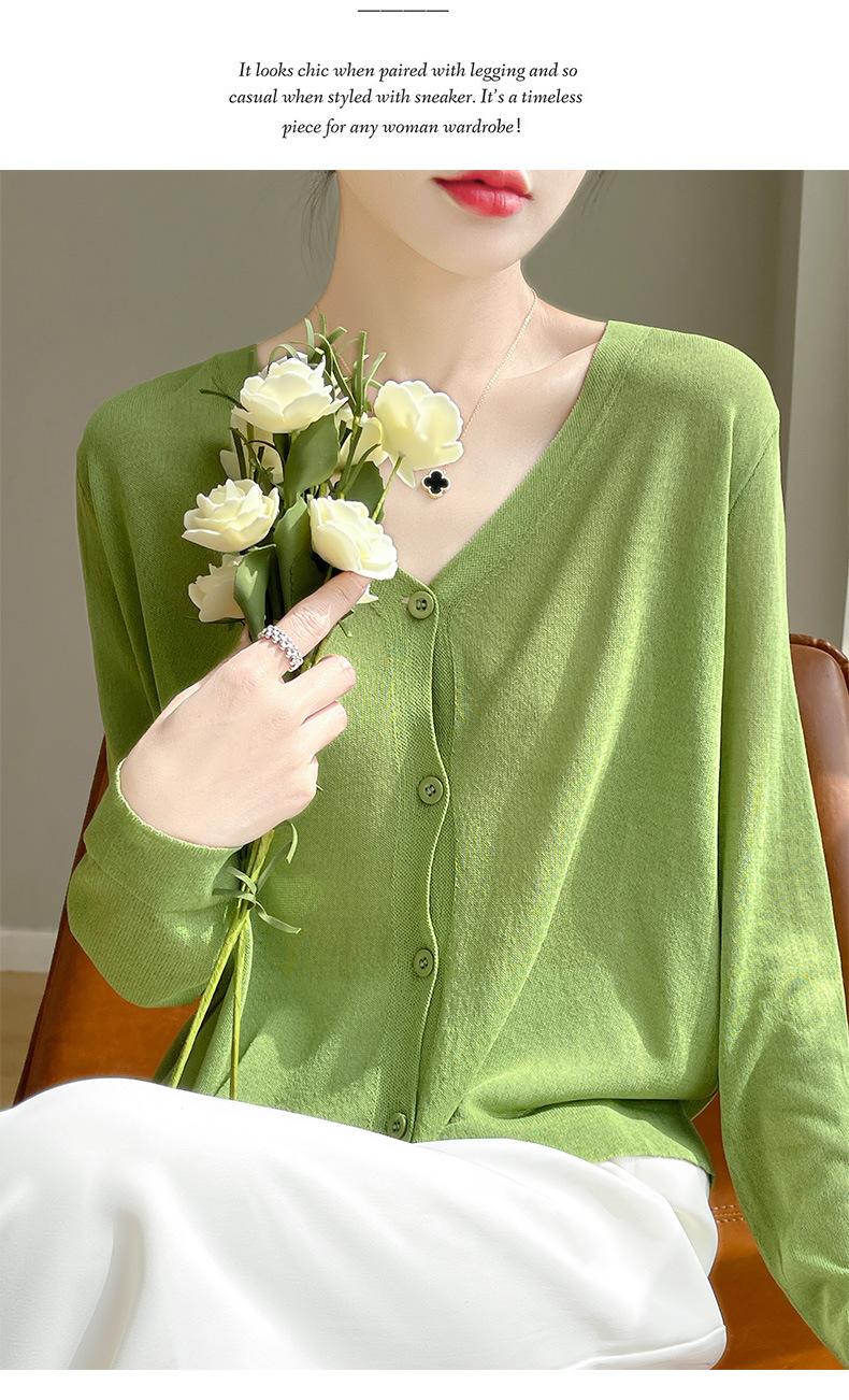 Cárdigan de Punto Fino de Verano con Cuello en V para Mujer, Moda, Acondicionador de Aire, Camisa Protectora Solar, Moda, Estilo Coreano, Camisa de Seda de Hielo Quzhu