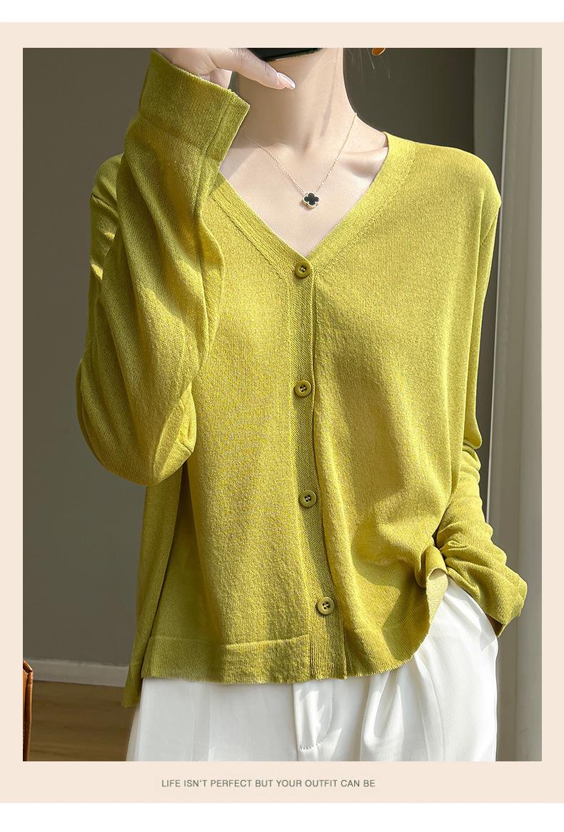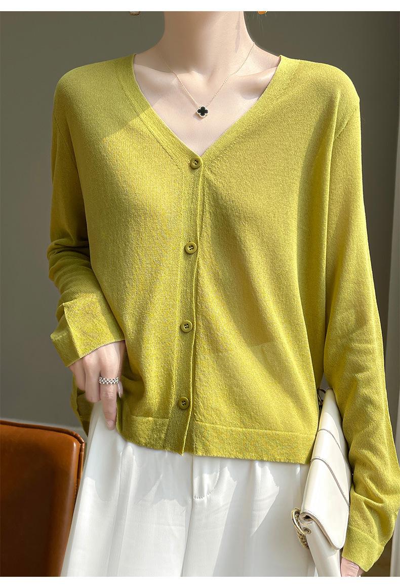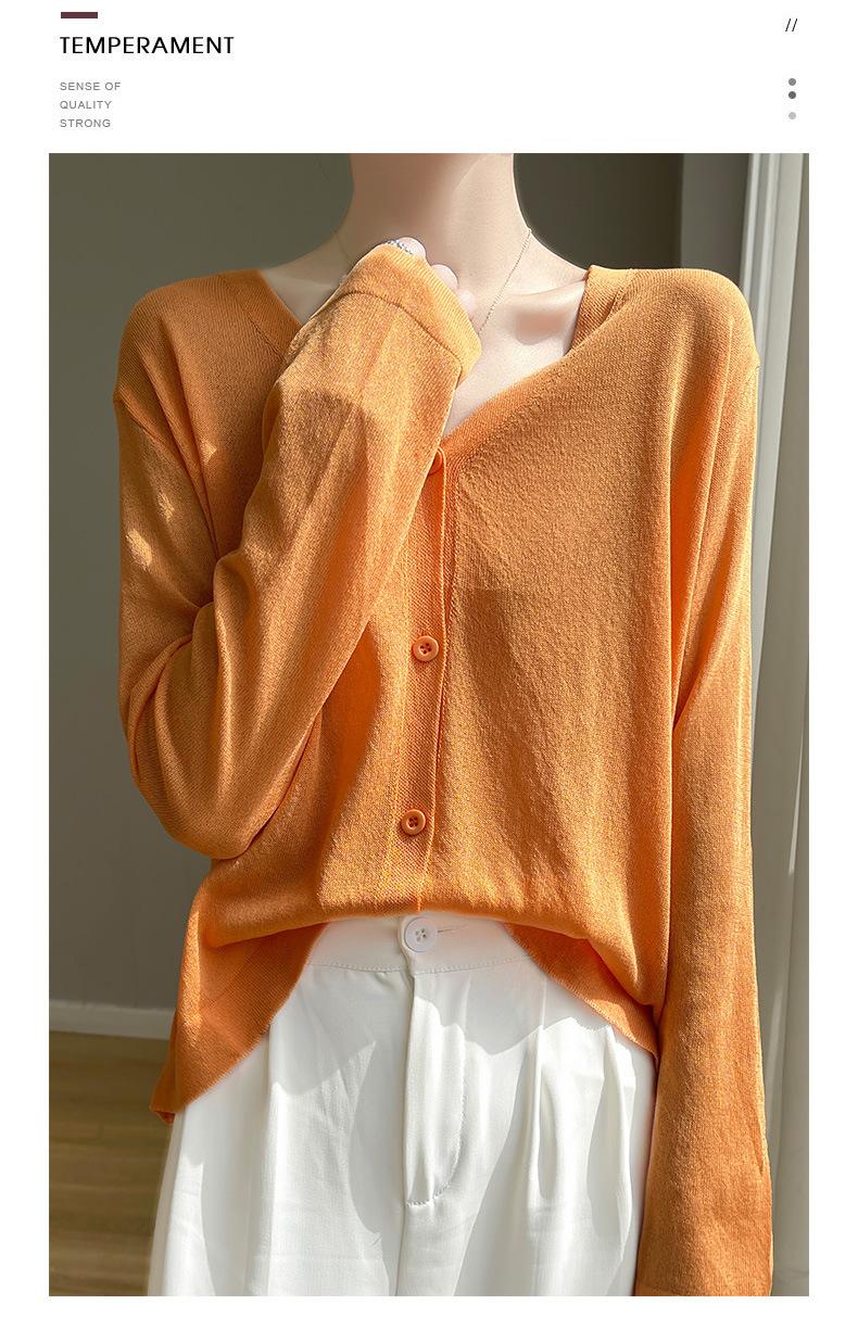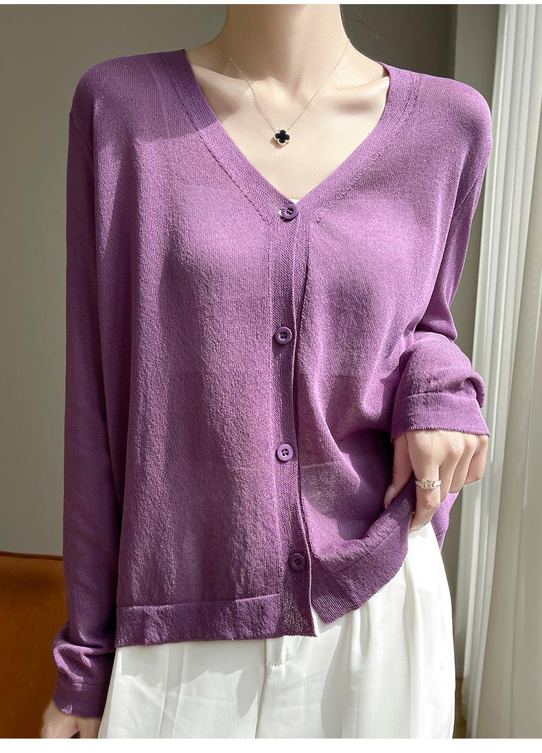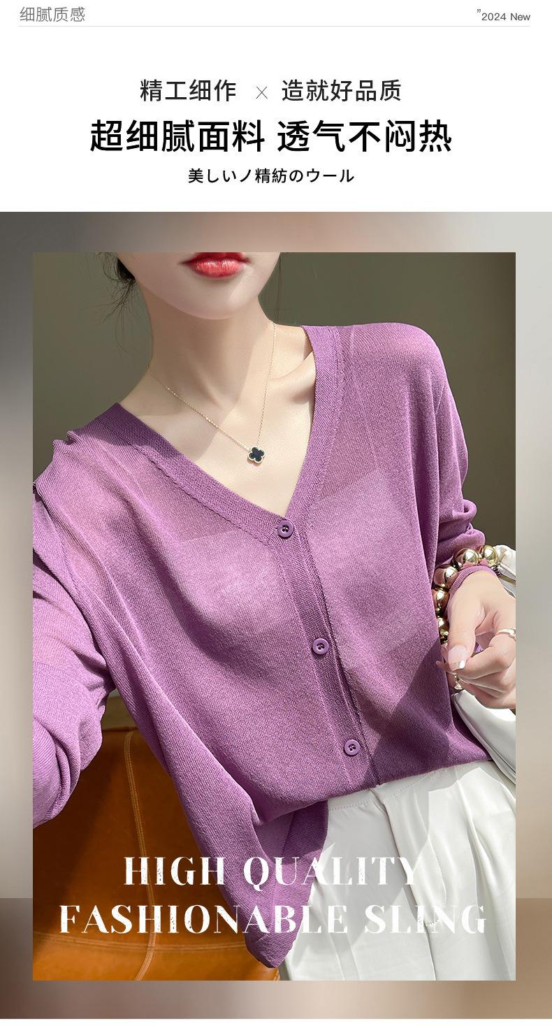Cárdigan de Punto Fino de Verano con Cuello en V para Mujer, Moda, Acondicionador de Aire, Camisa Protectora Solar, Moda, Estilo Coreano, Camisa de Seda de Hielo Quzhu