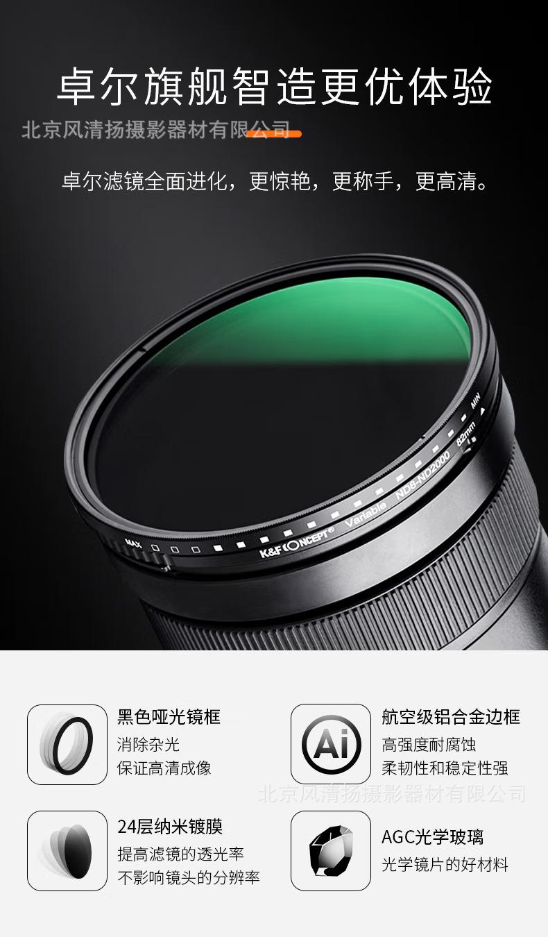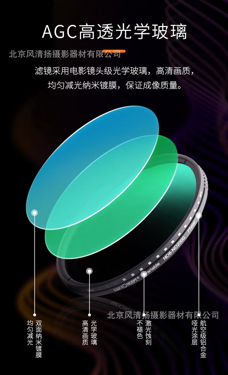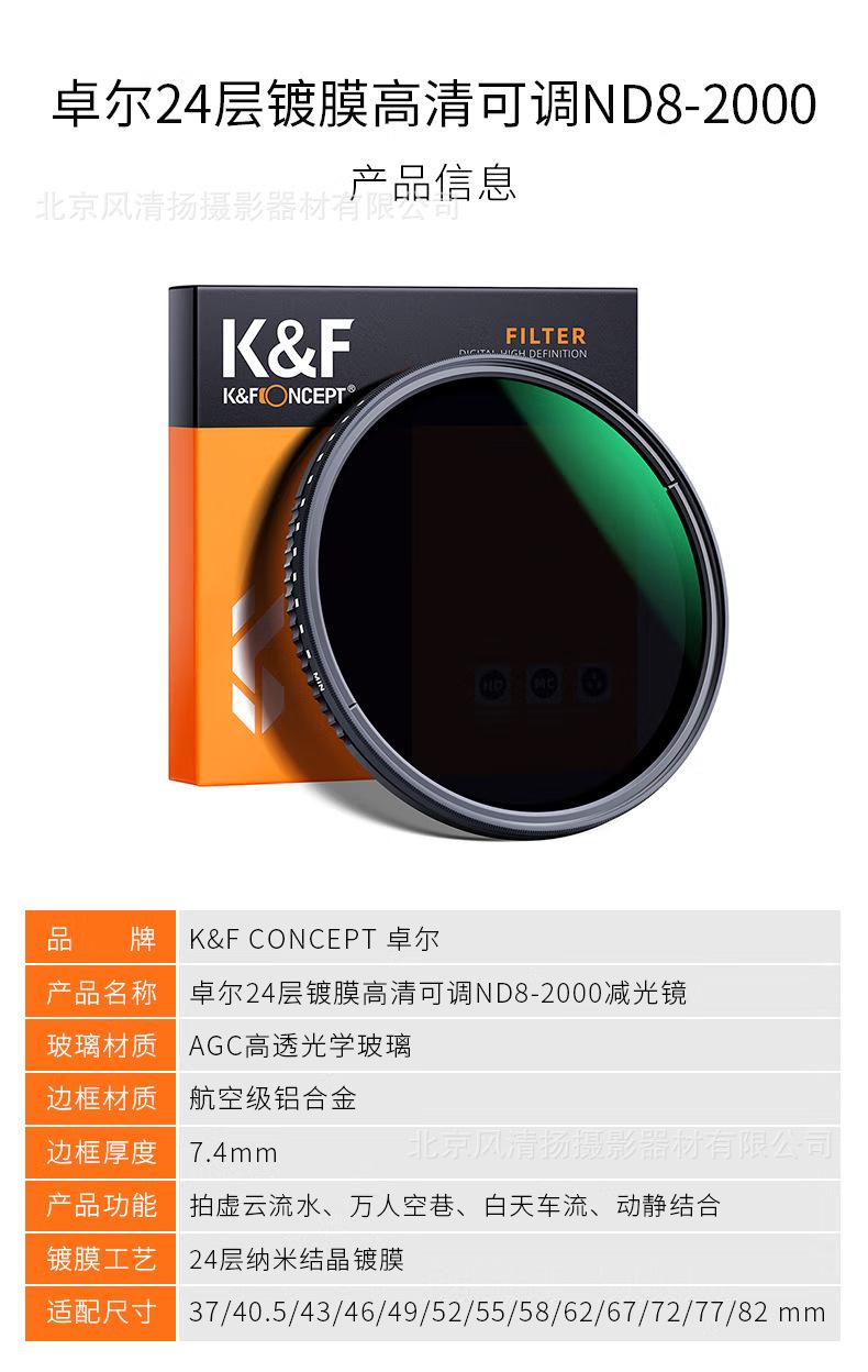 K & F Concept drow ND8-2000 lente una serie VND filtro de lente nd ajustable película verde