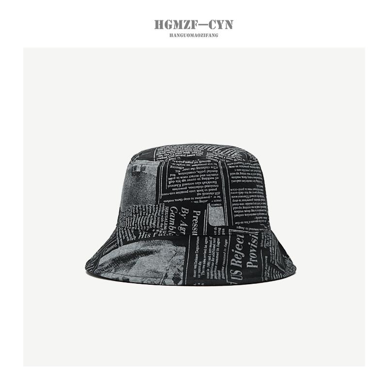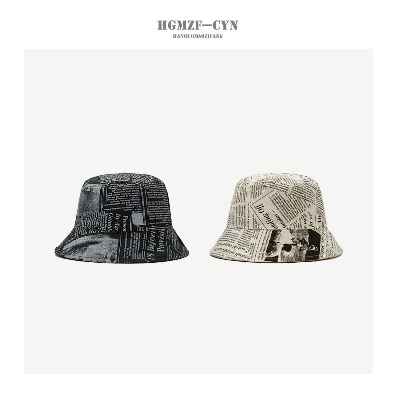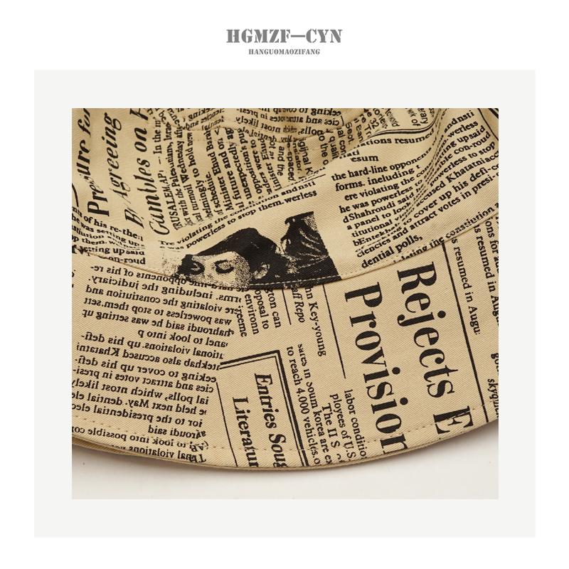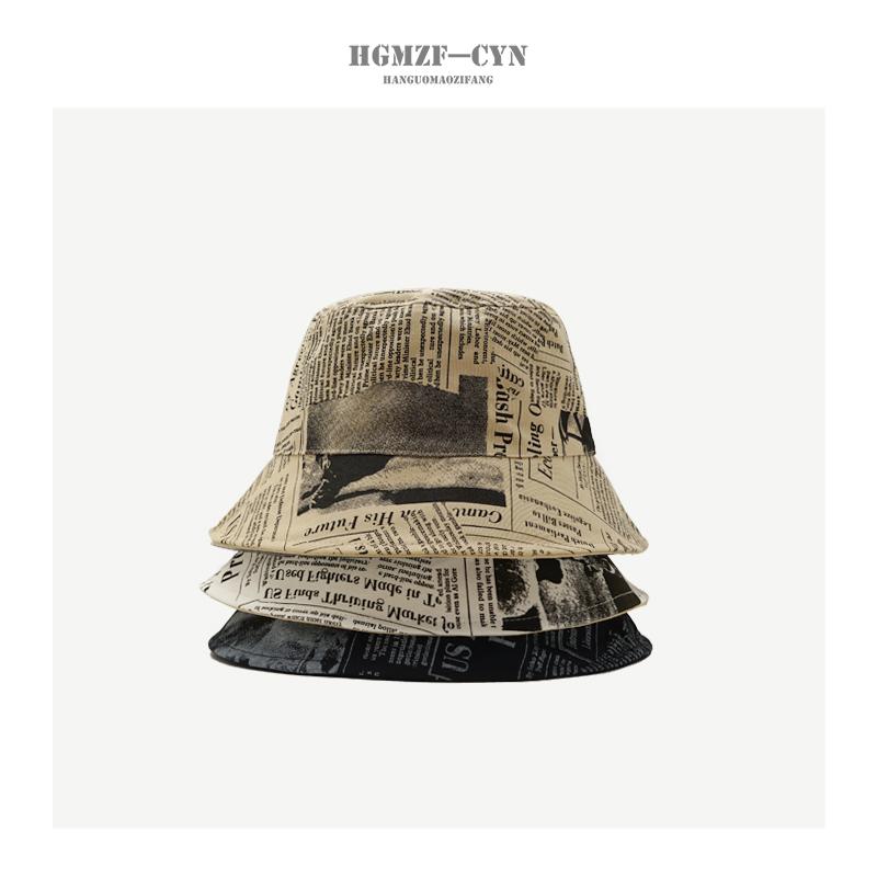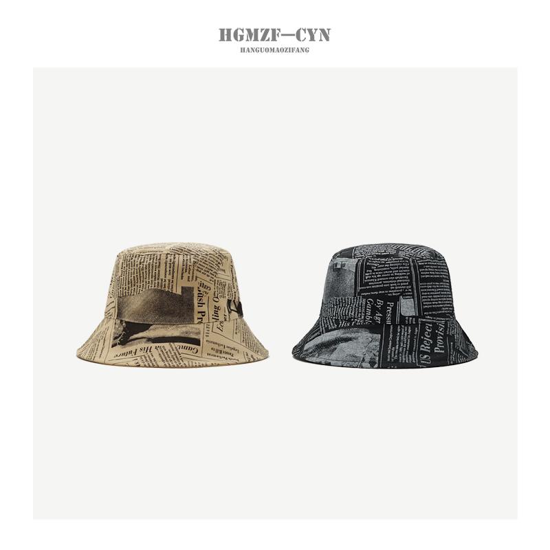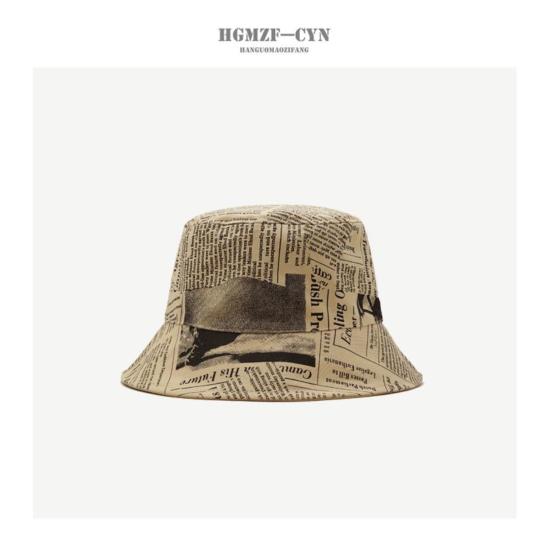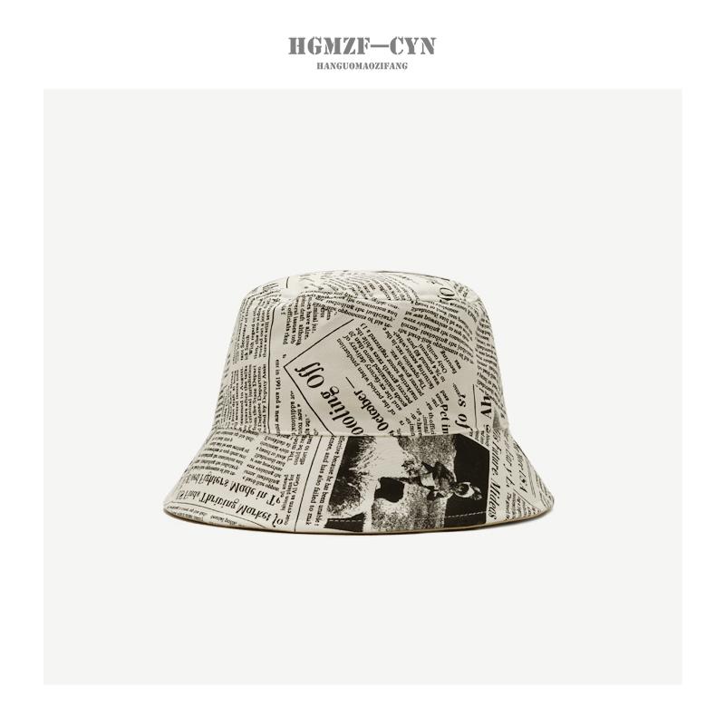 Sombrero Transfronterizo para Mujer Primavera y Verano Patrón de Periódico Retro Sombrero de Pescador Reversible Estilo Coreano Versátil Sombrero para el Sol Sombrero de Cubo Casual para Hombre