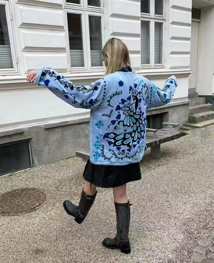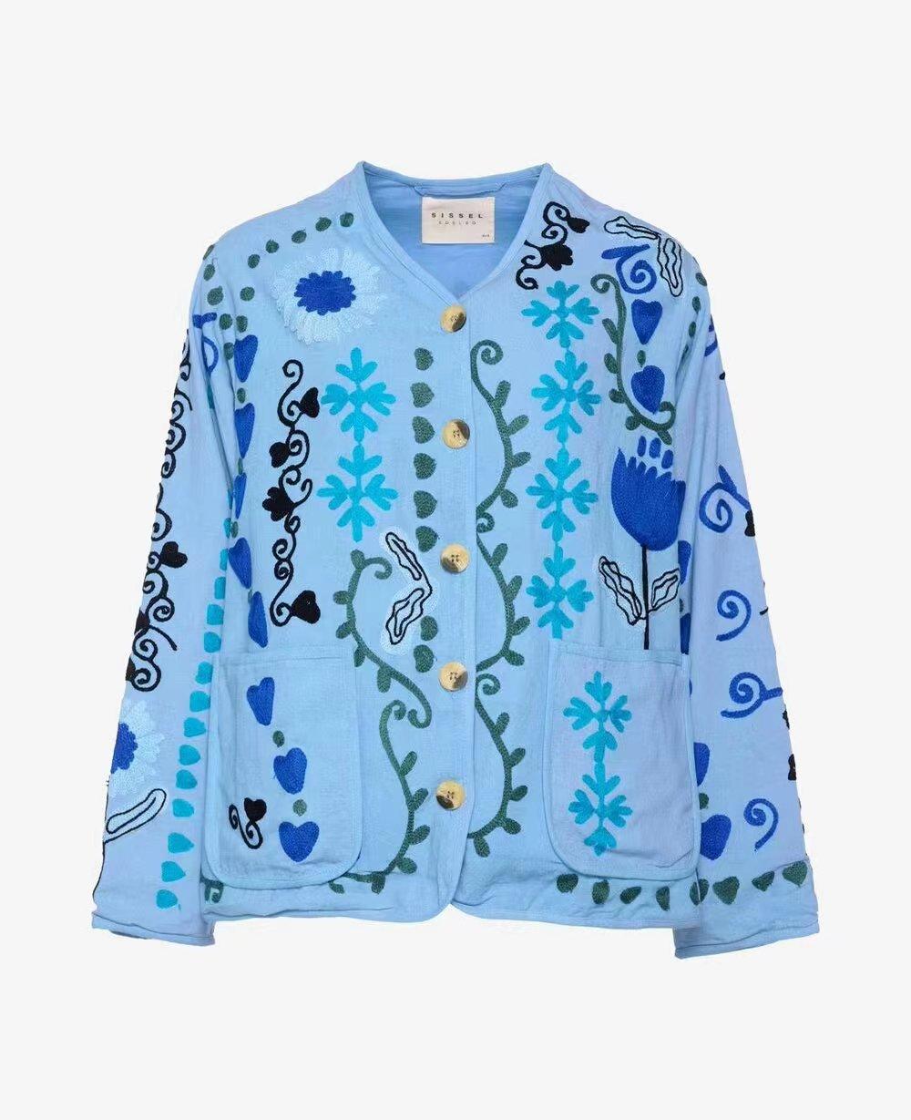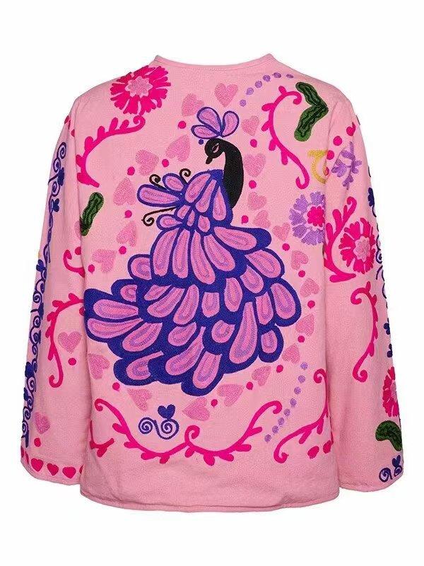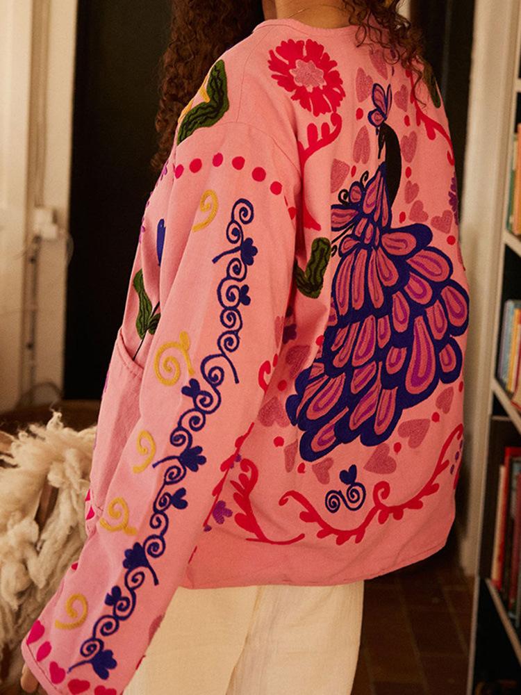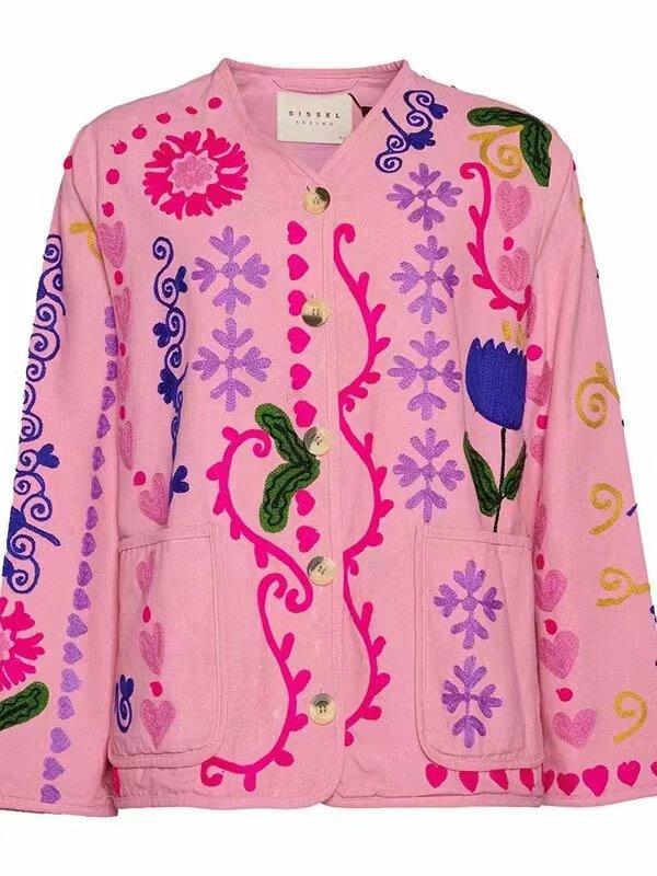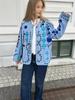Amazon Mujer Venta al por Mayor 2024 Nuevo Rosa Estilo Casual Flor Manga Larga Top Chaqueta de Un Solo Botón Cuello en V Mujer