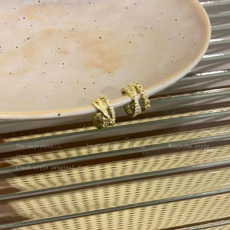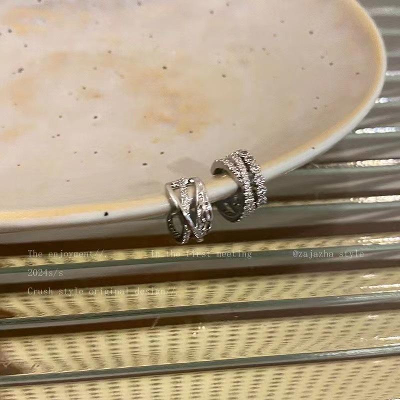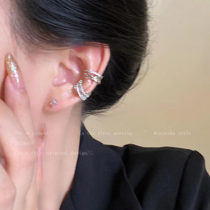 Clip de Hueso de Oreja de Circonita de Múltiples Capas Sin Perforación para Mujeres Verano Lujo Accesible Clip de Oreja de Alta Gama 2024 Nuevo Estilo Caliente Aretes Estilo Frío