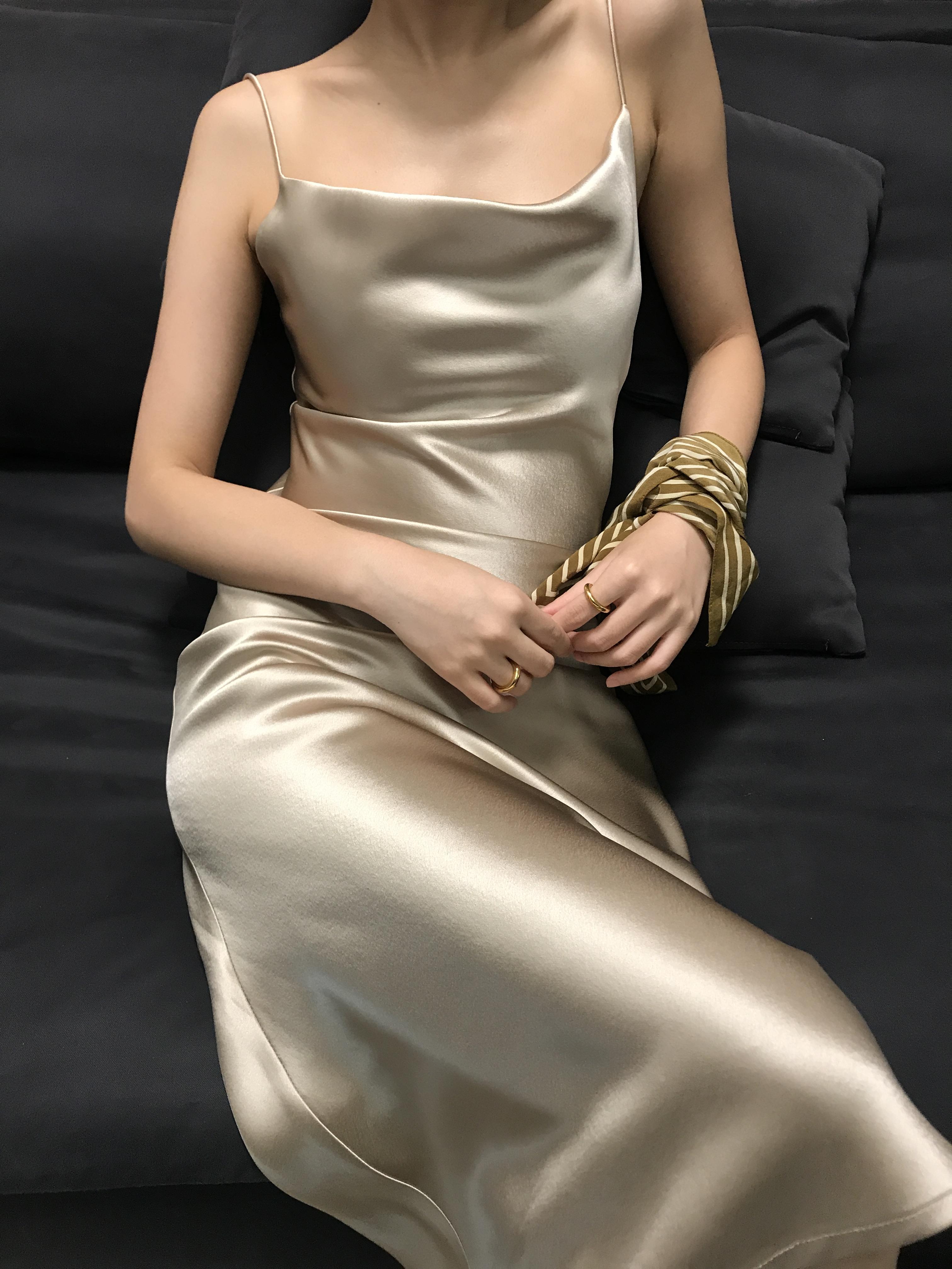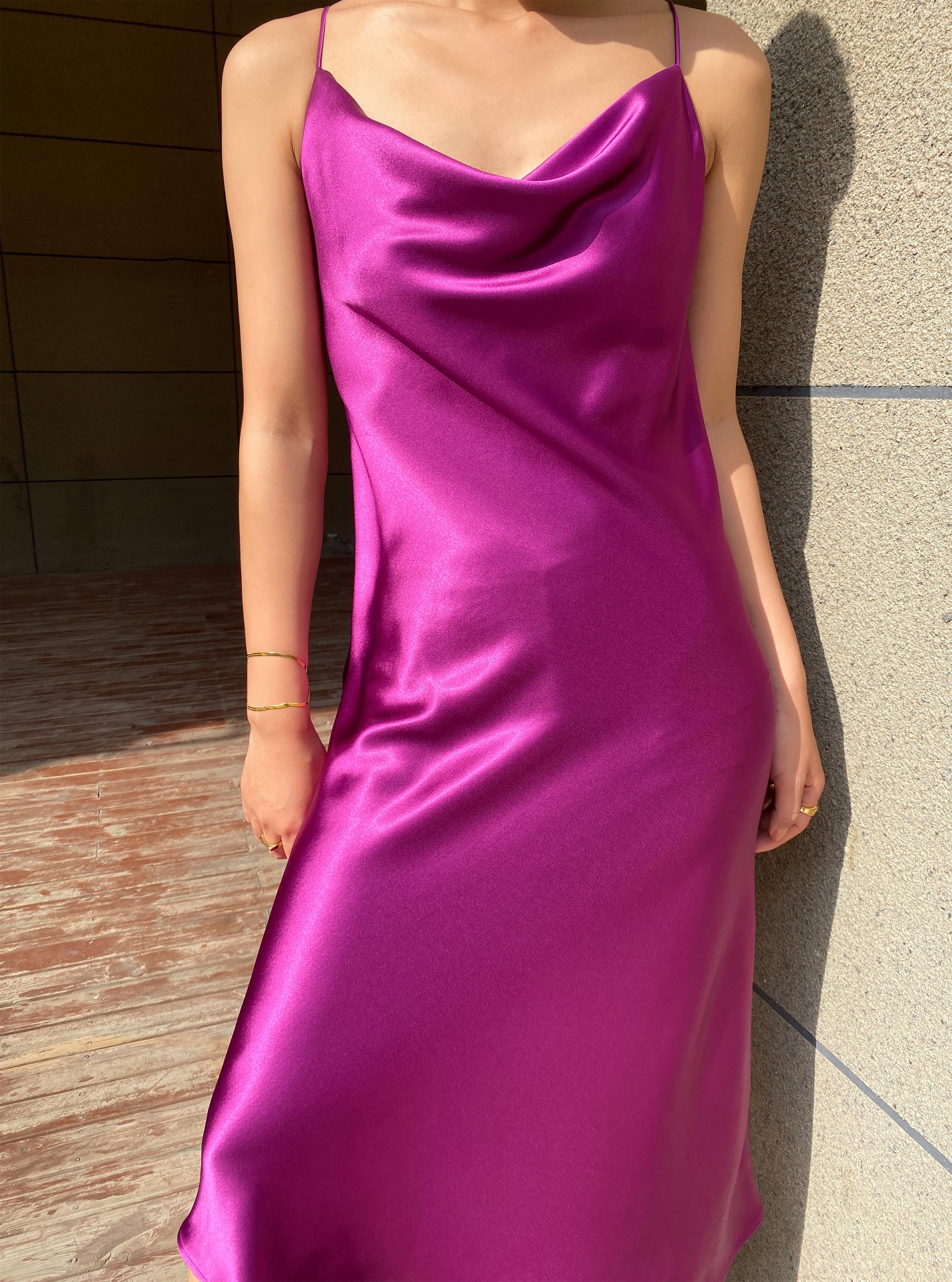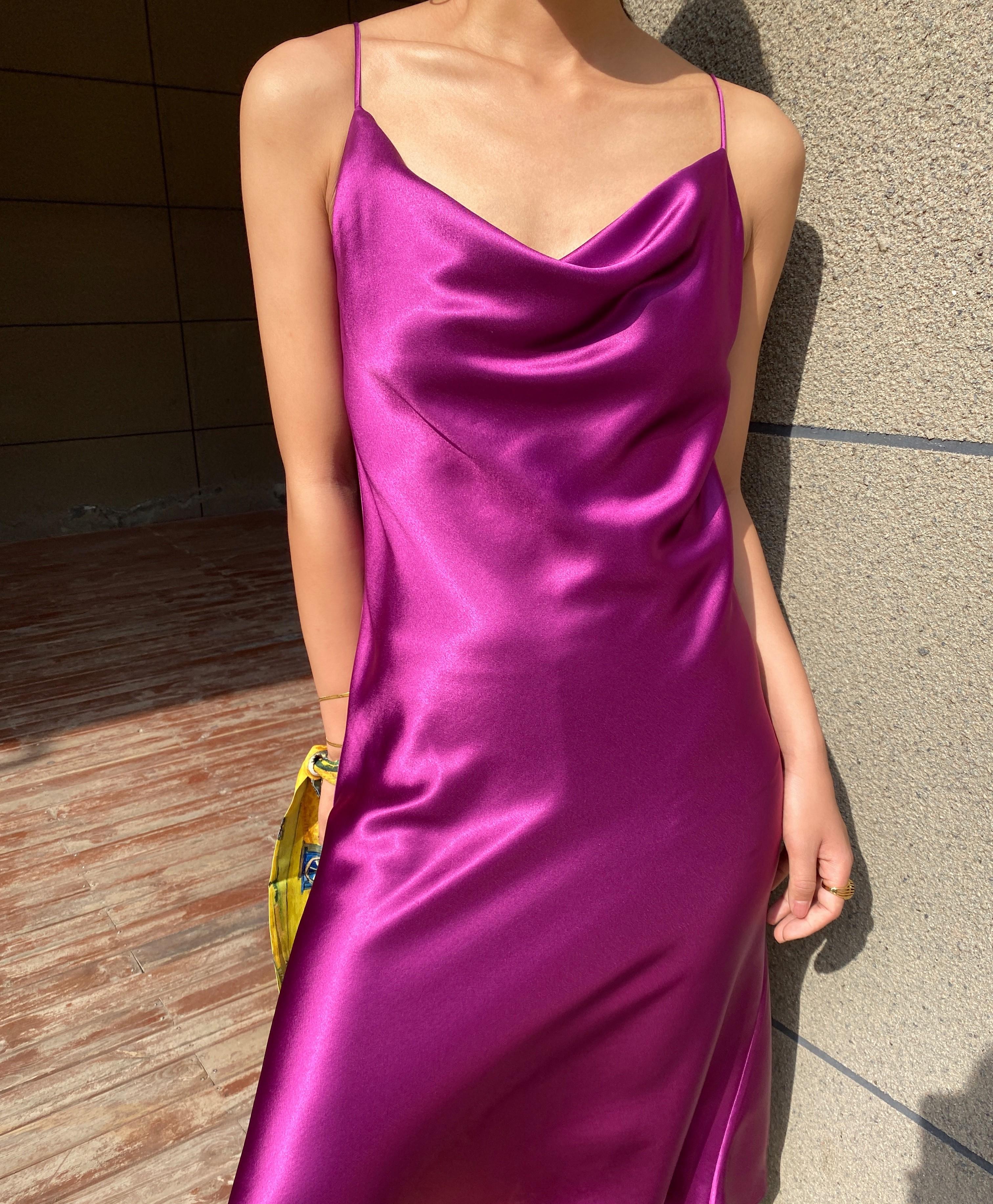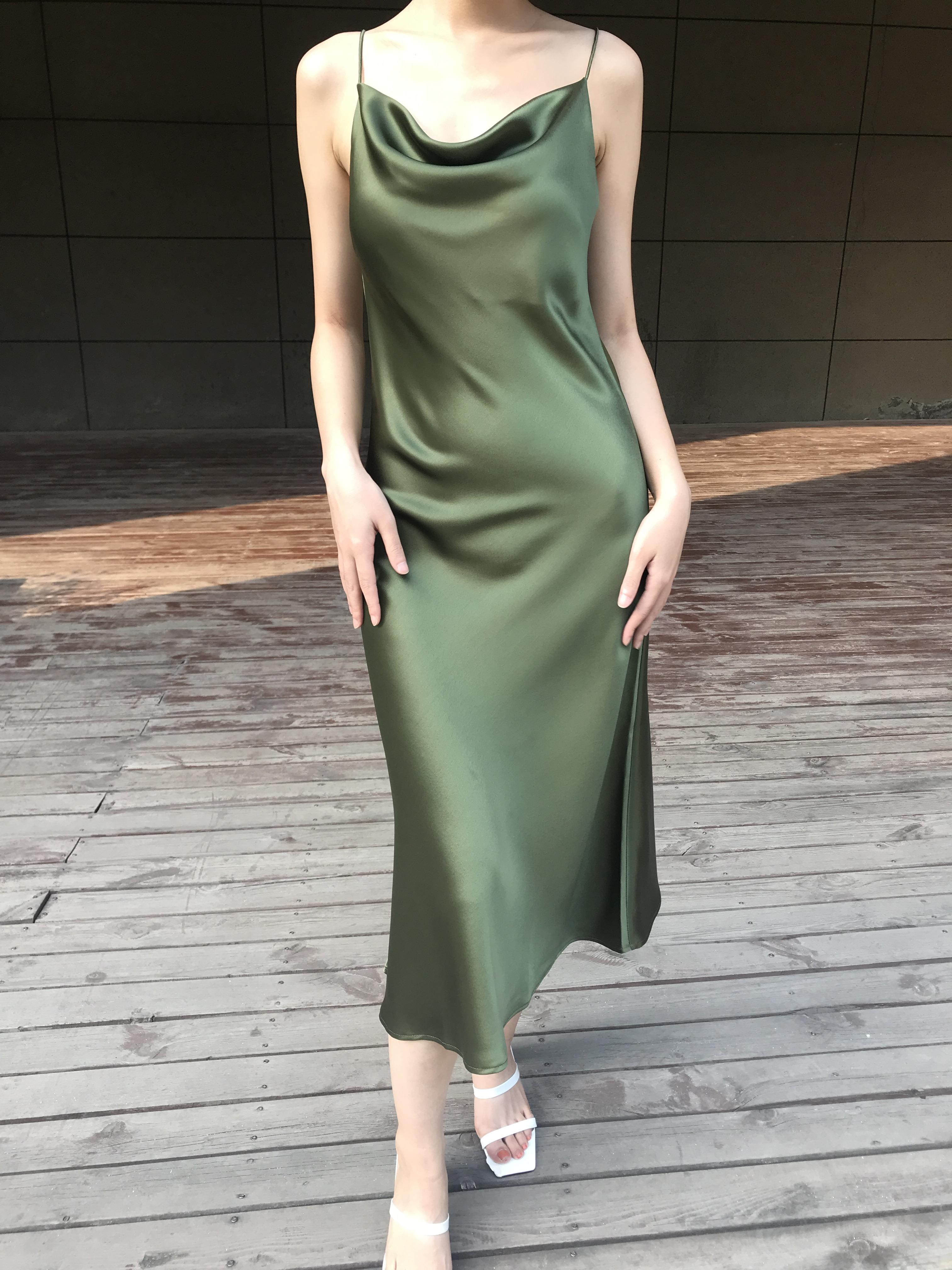 La combinación del escote caído y los tirantes finos es muy de alta gama.