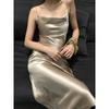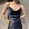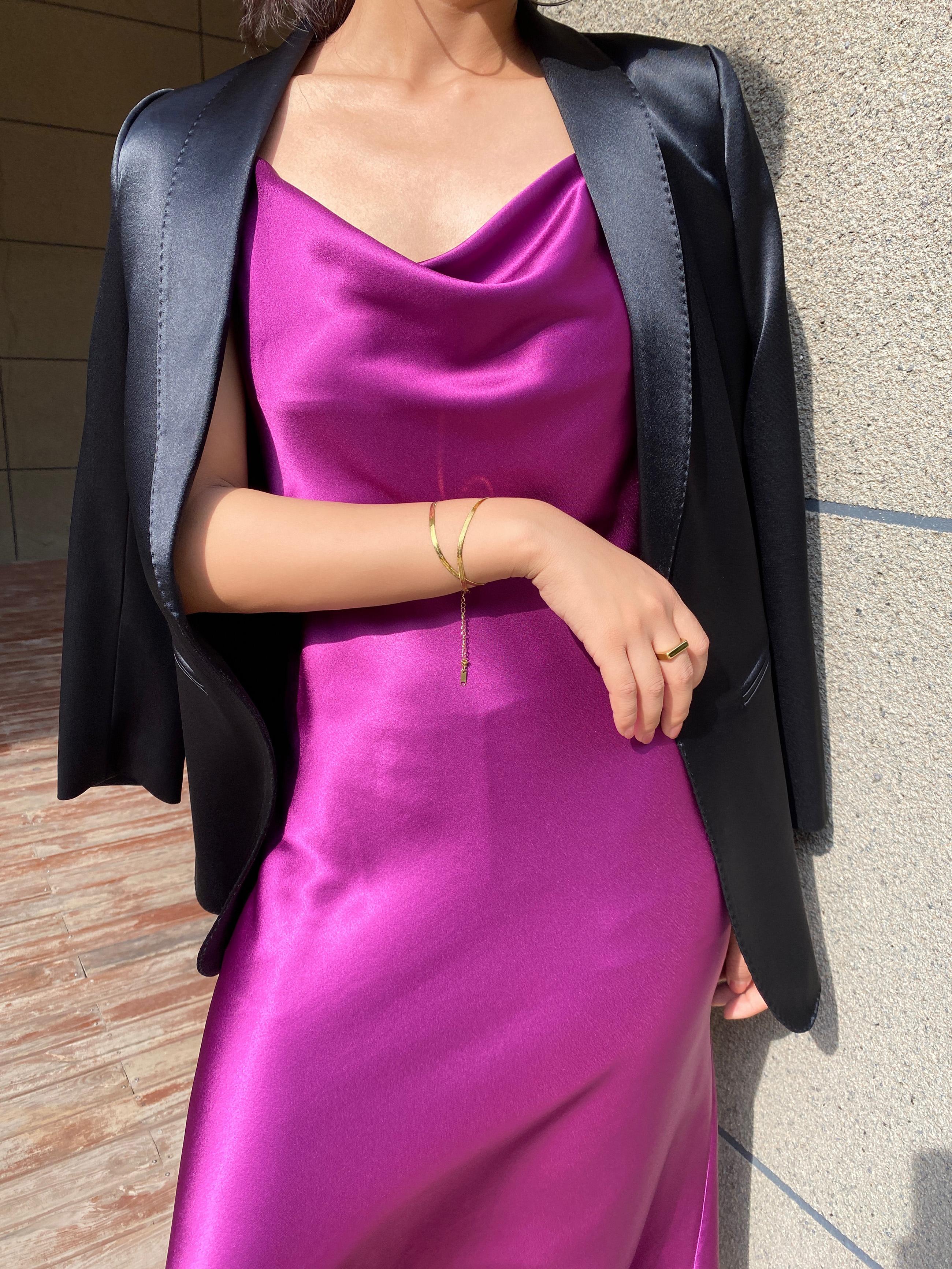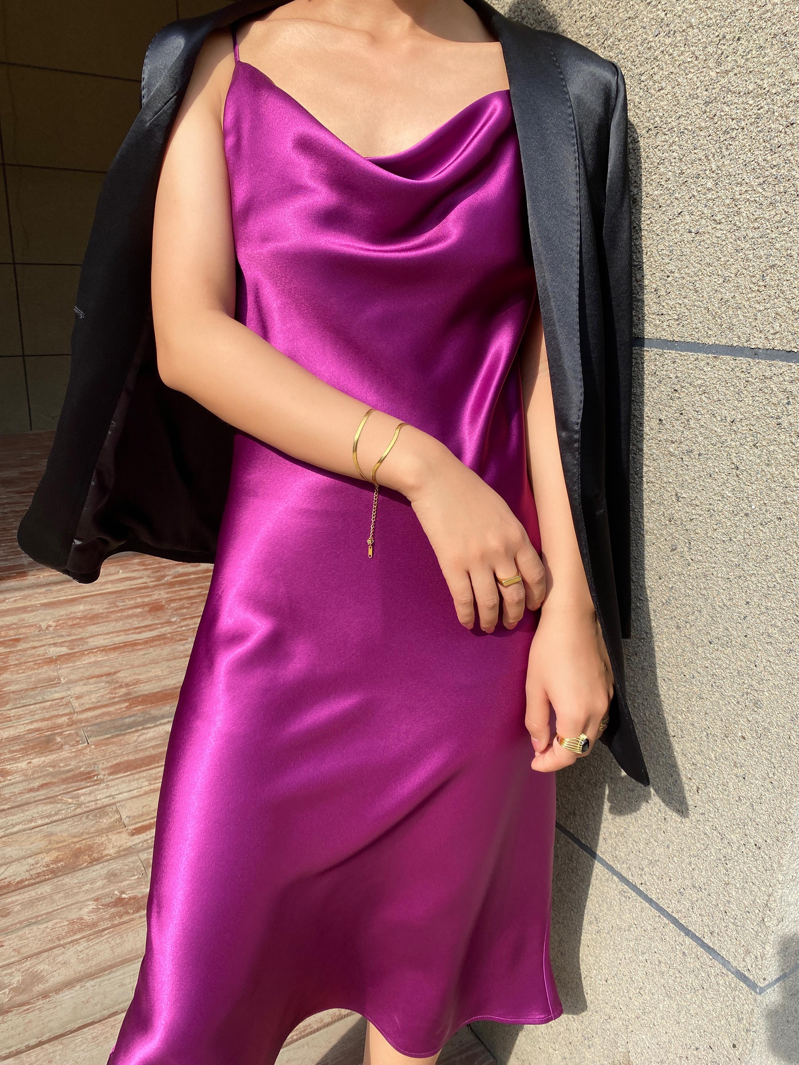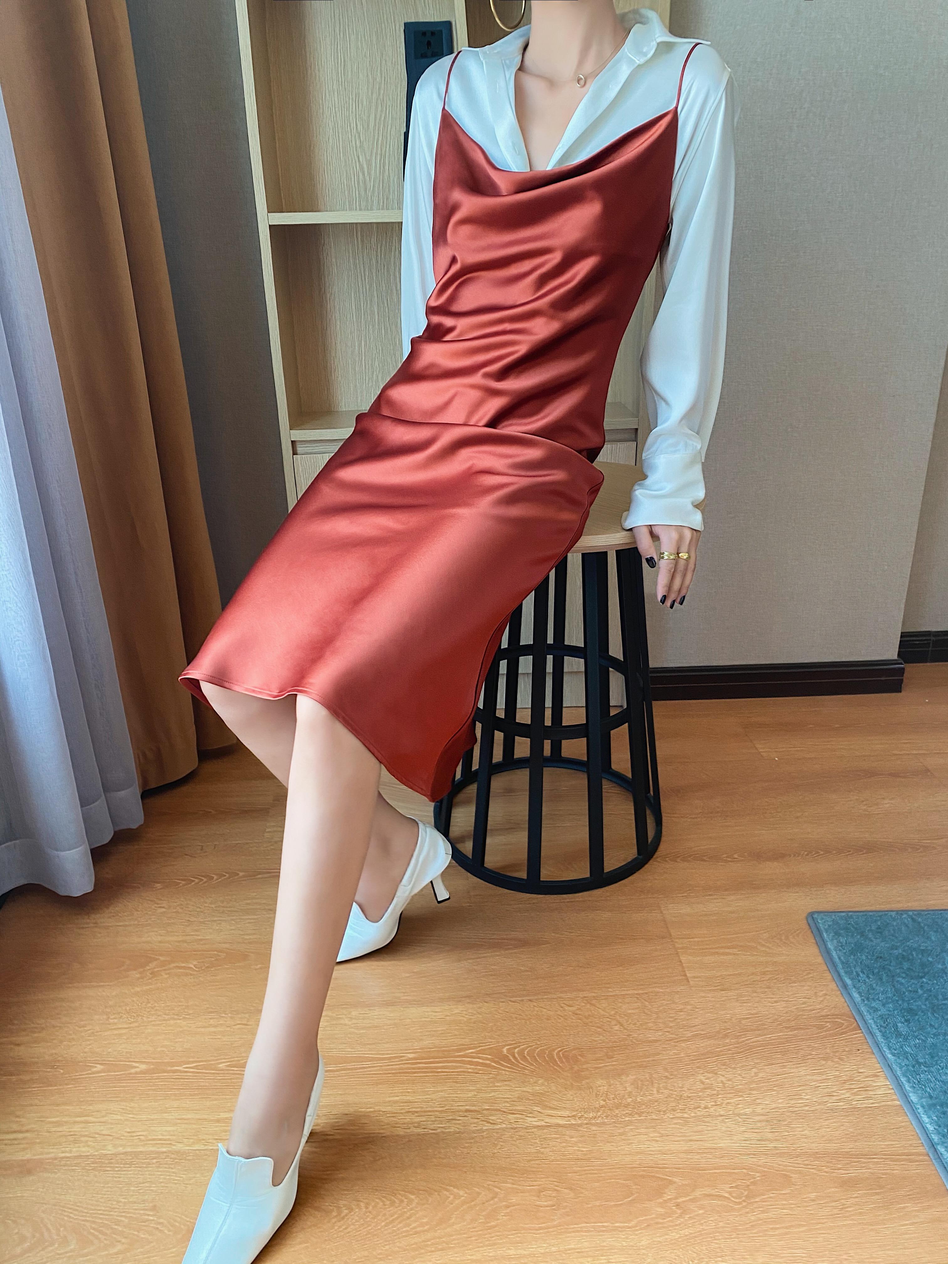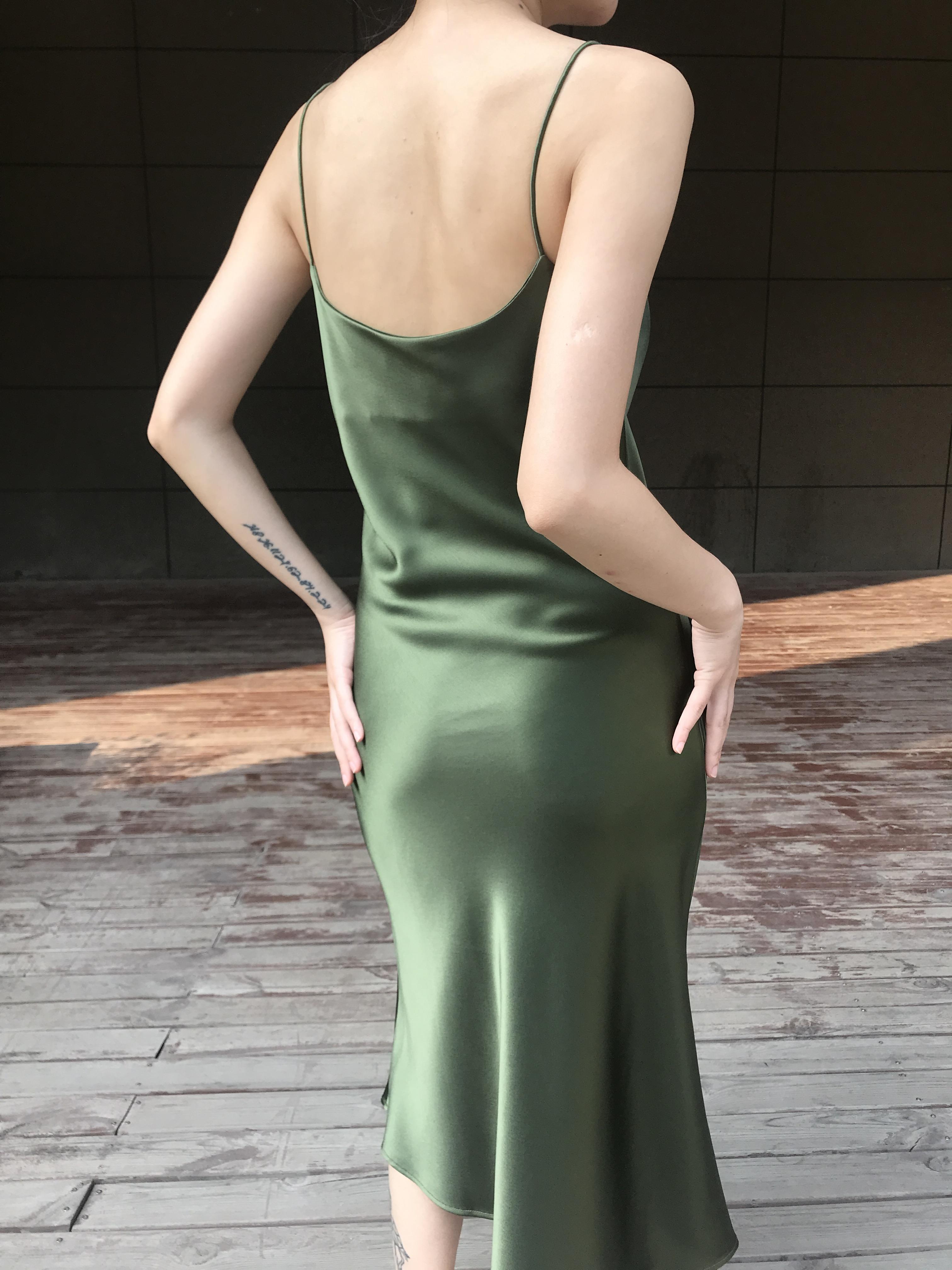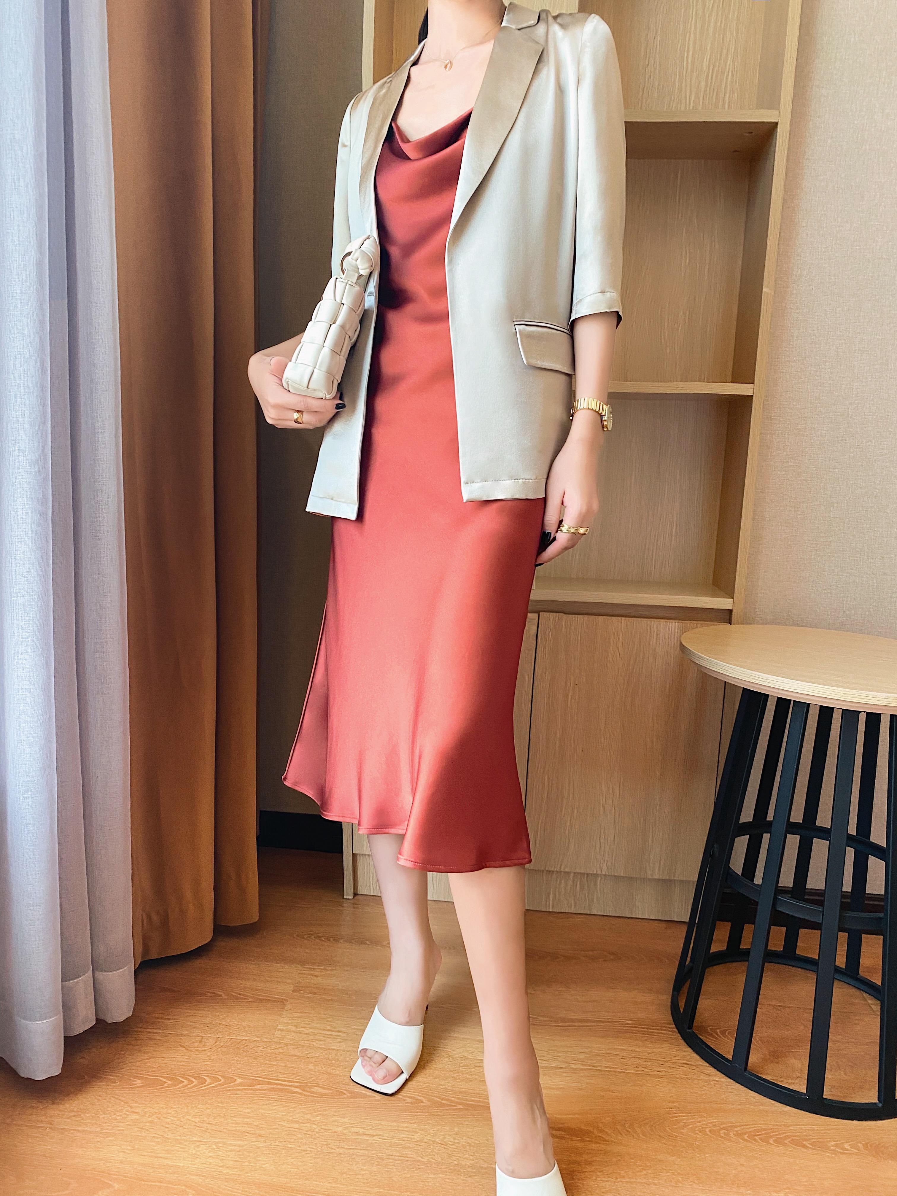 La combinación del escote caído y los tirantes finos es muy de alta gama.