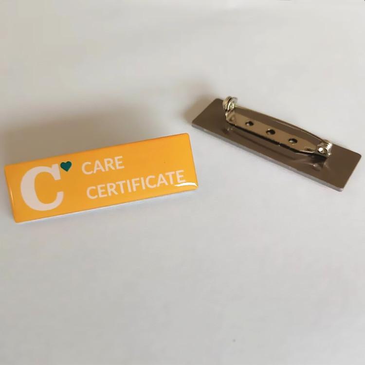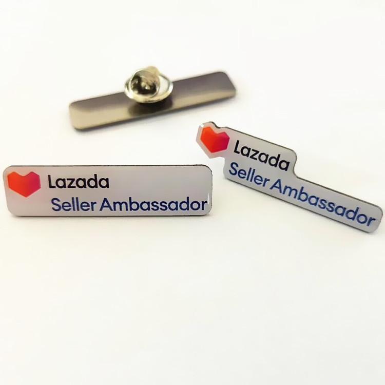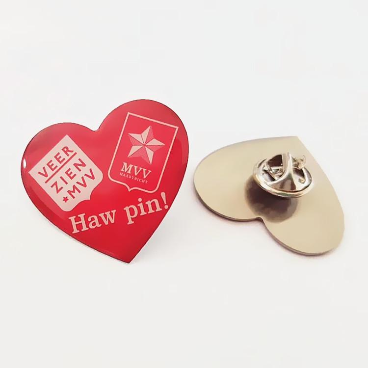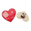 Suministro de insignias de regalo para el Día de San Valentín, impresión en color offset, patrón de texto, broche con forma de amor, fabricación de insignias