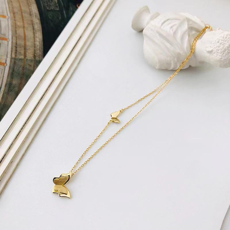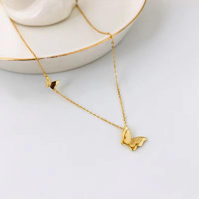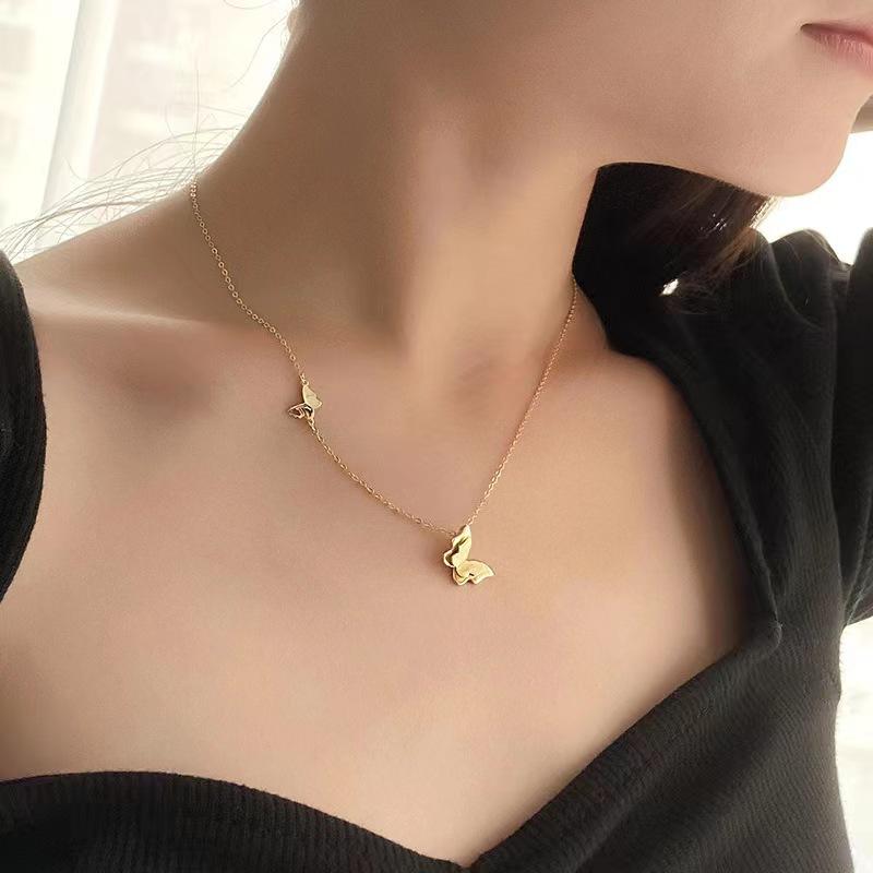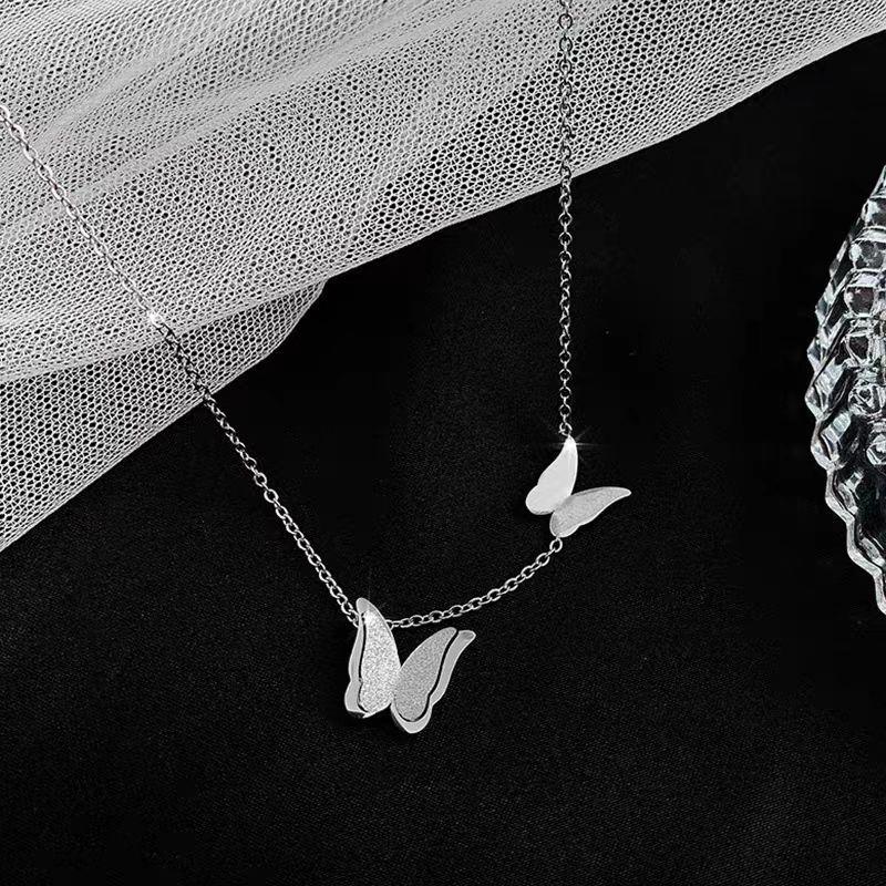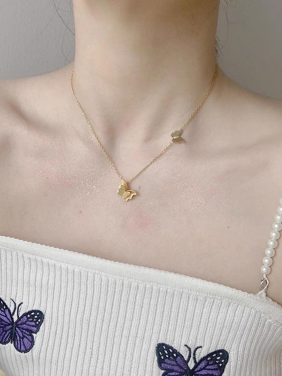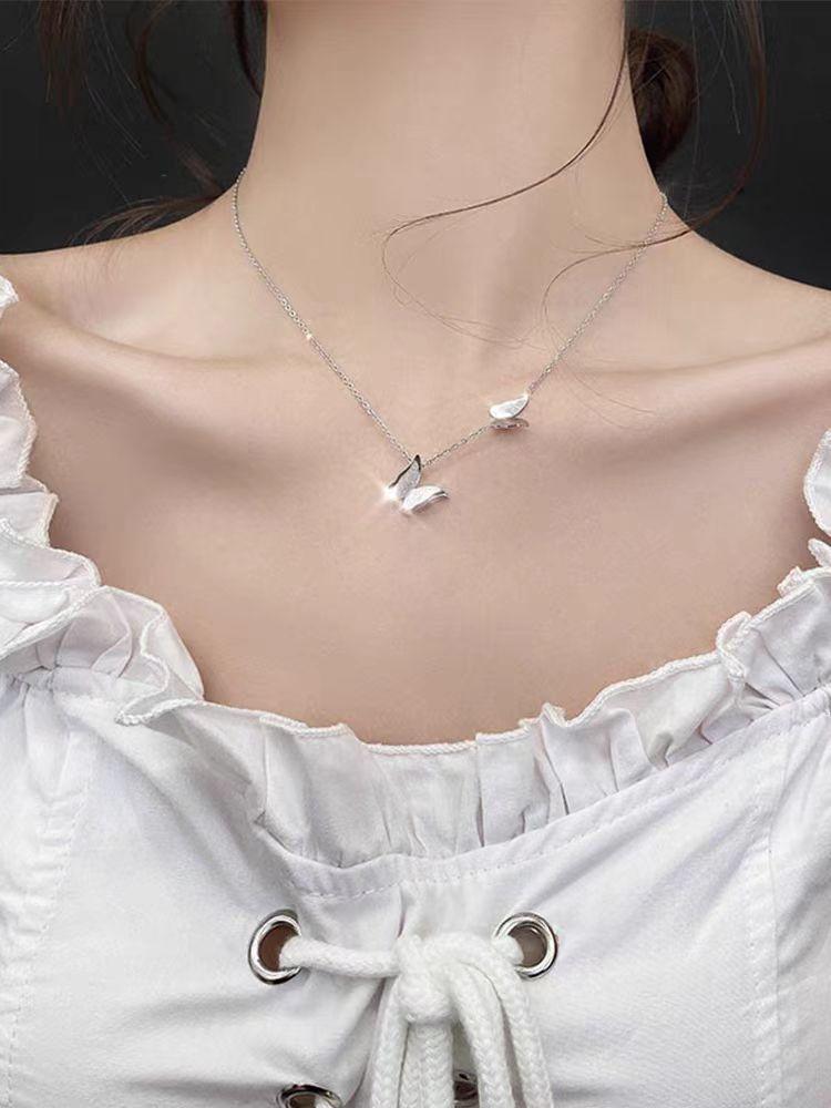 Collar de mariposa de acero de titanio de lujo ligero y sin color para mujer, nuevo, de primavera, elegante, de doble capa, con cadena de clavícula de mariposa 3D.