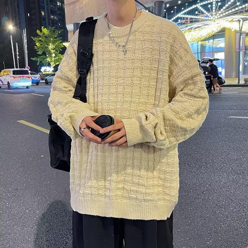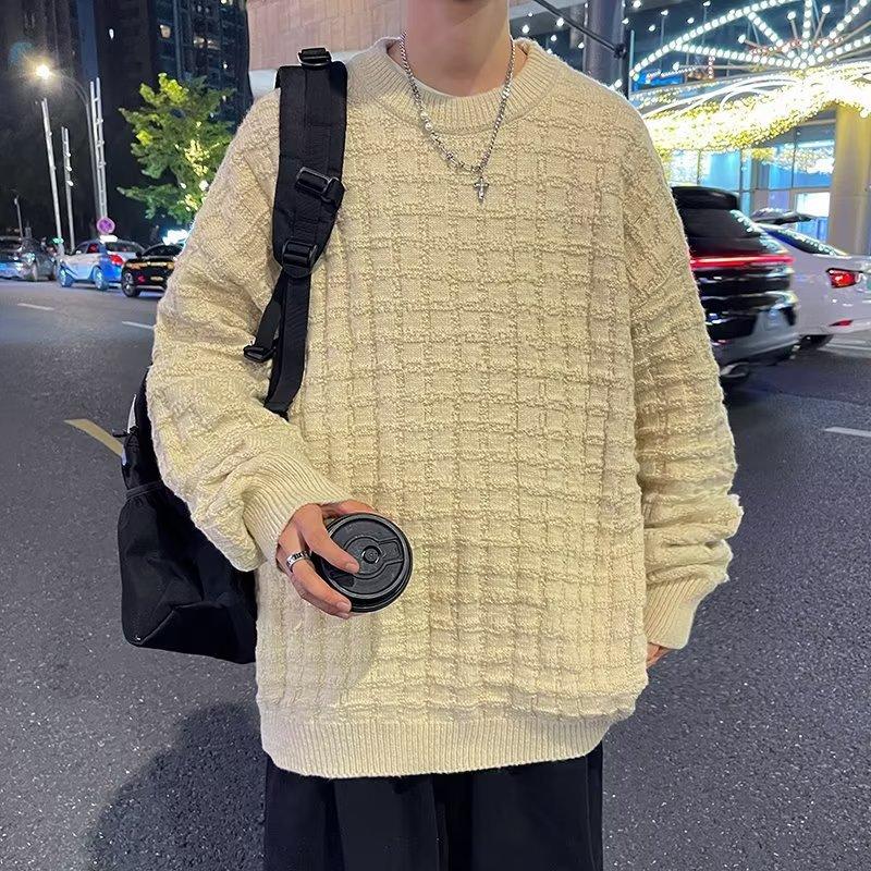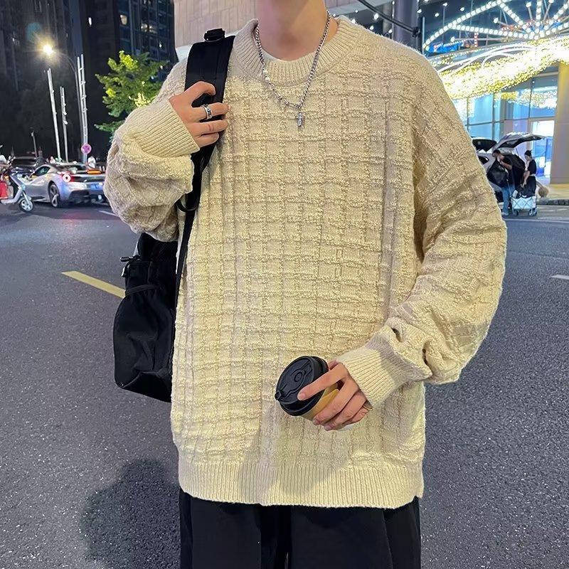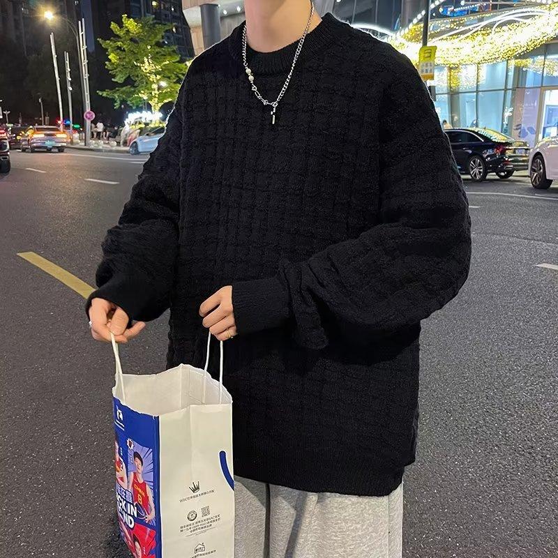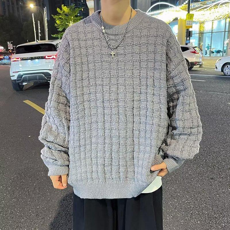 Suéter de cuello redondo para hombre, otoño e invierno, abrigo para niño, ropa exterior retro holgada, novedad de 2023