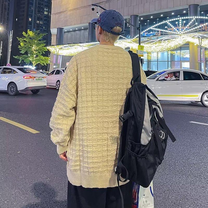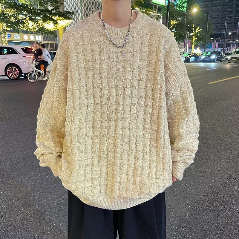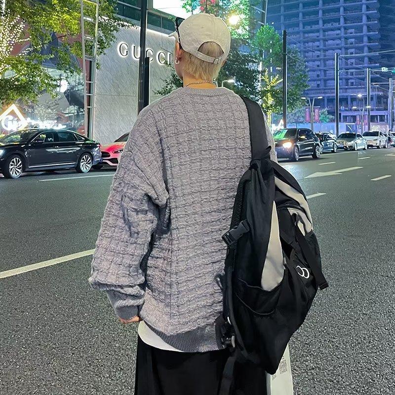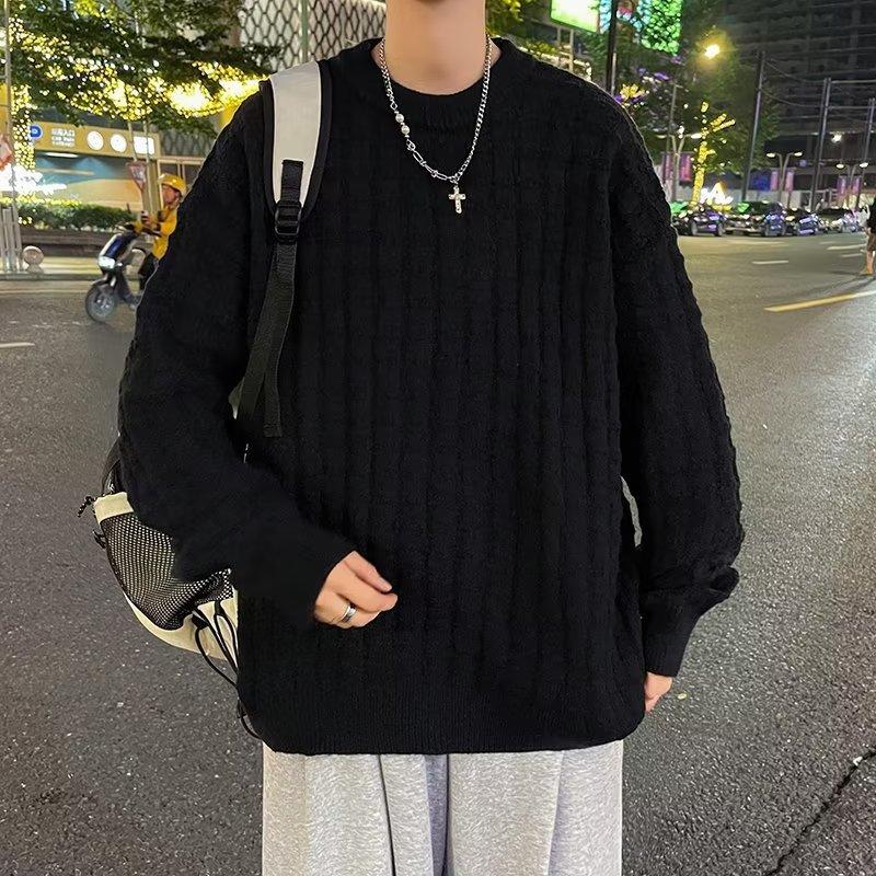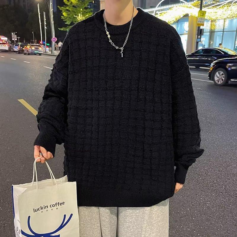 Suéter de cuello redondo para hombre, otoño e invierno, abrigo para niño, ropa exterior retro holgada, novedad de 2023