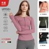 Ropa deportiva transfronteriza para correr y fitness, ropa de yoga de color sólido con cremallera, pantalones de manga larga con cordón para levantar la cadera, traje de yoga para mujer