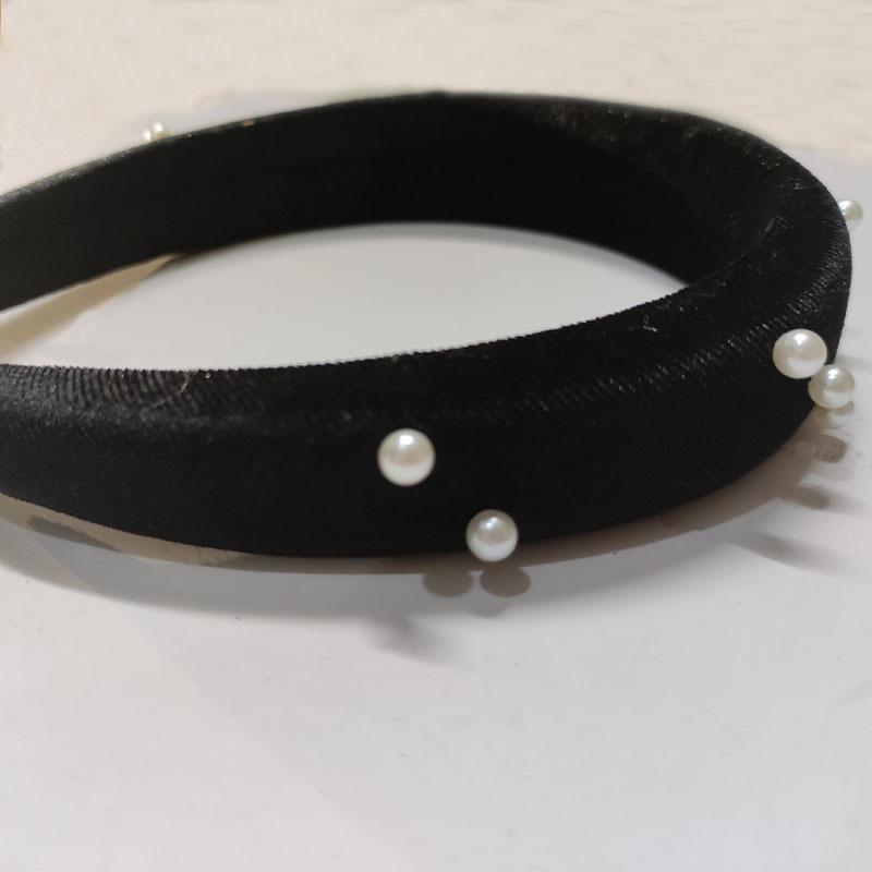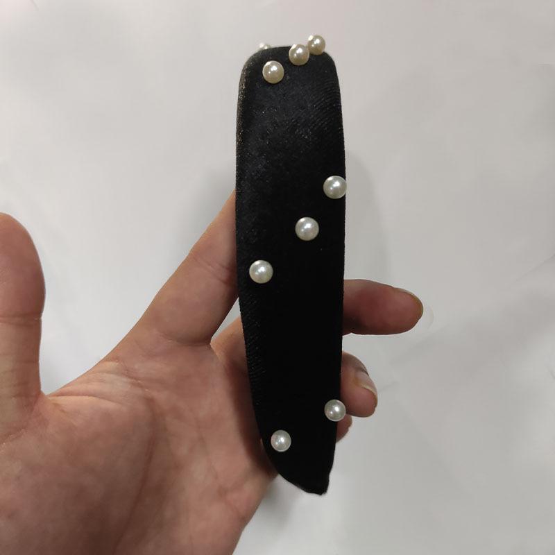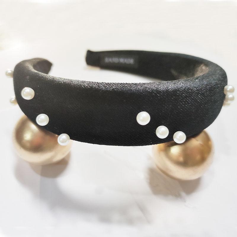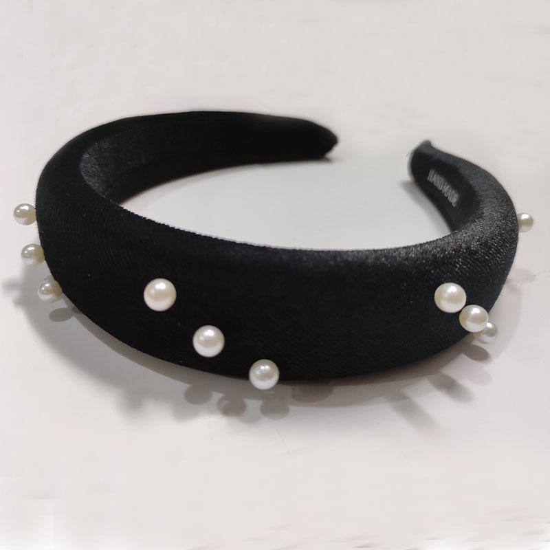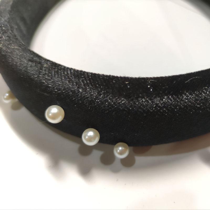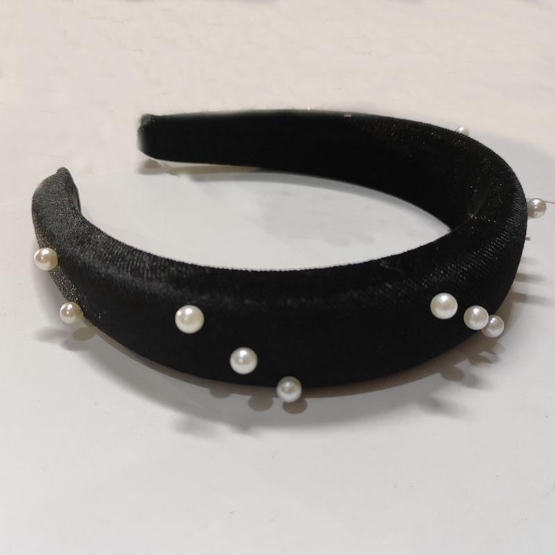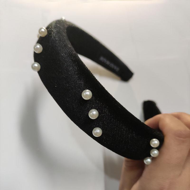 Versión coreana de banda para el cabello con red negra y roja aumentada en la parte superior del cráneo, temperamento, diadema de terciopelo dorado perlado, esponja, paquete de cabello grueso, accesorios para el cabello al por mayor