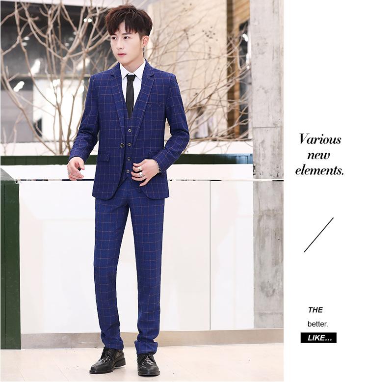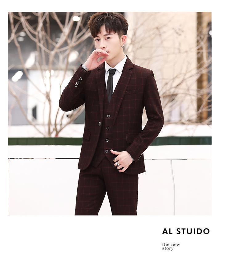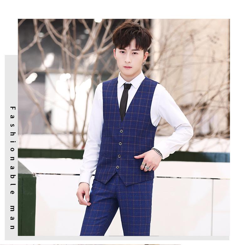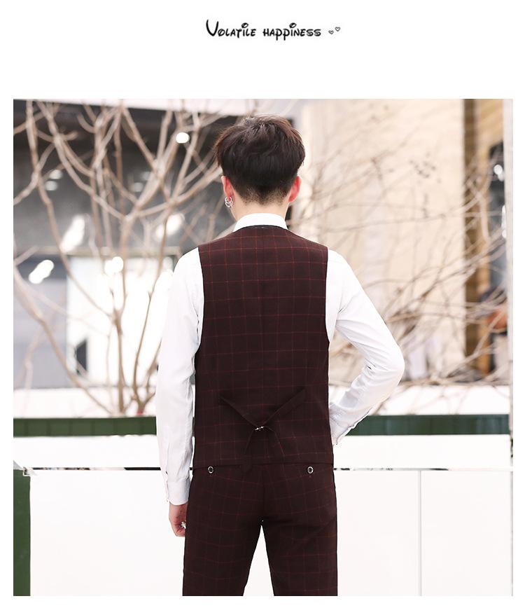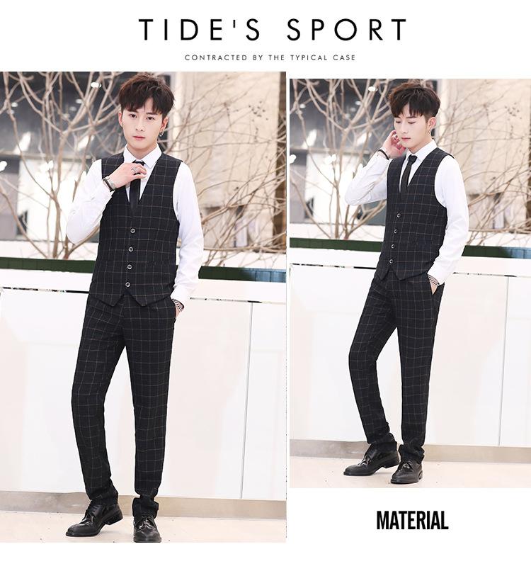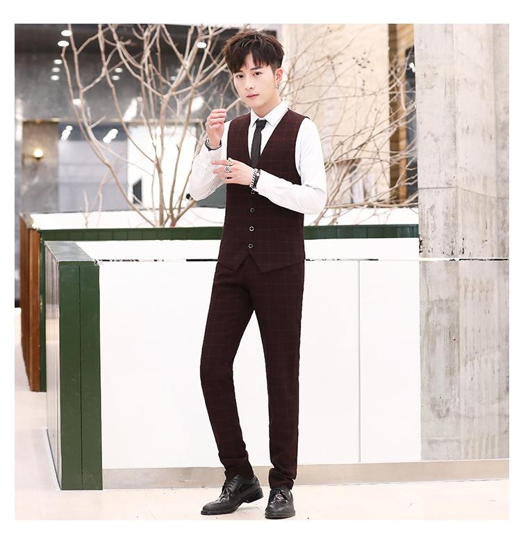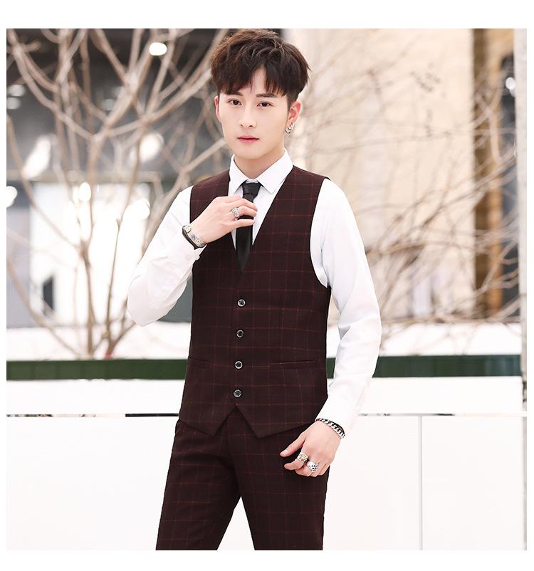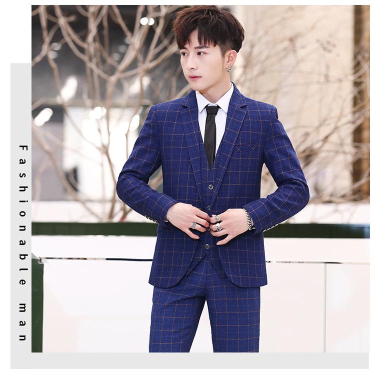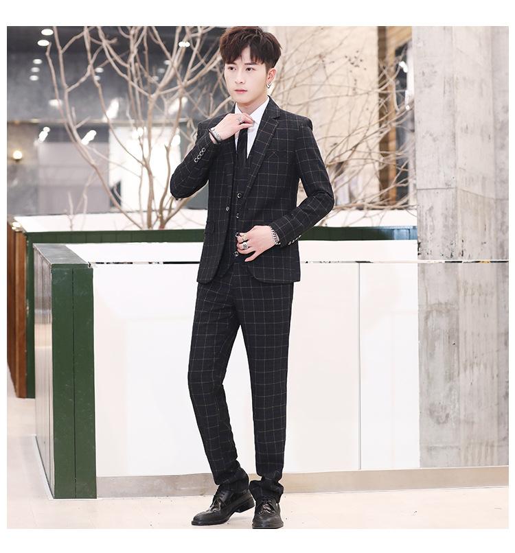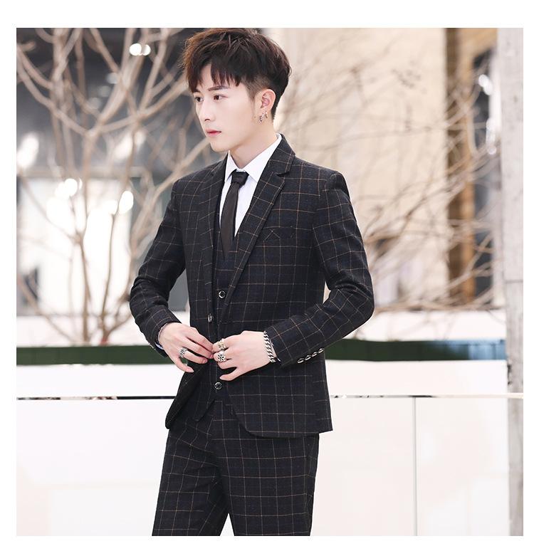 Conjunto de traje informal de tres piezas para hombre, corte entallado, estilo coreano, elegante, para novio, boda, a cuadros, pequeño.