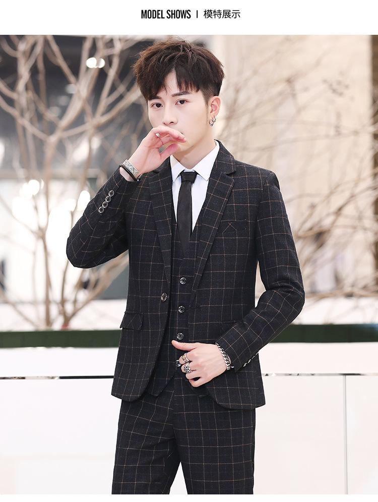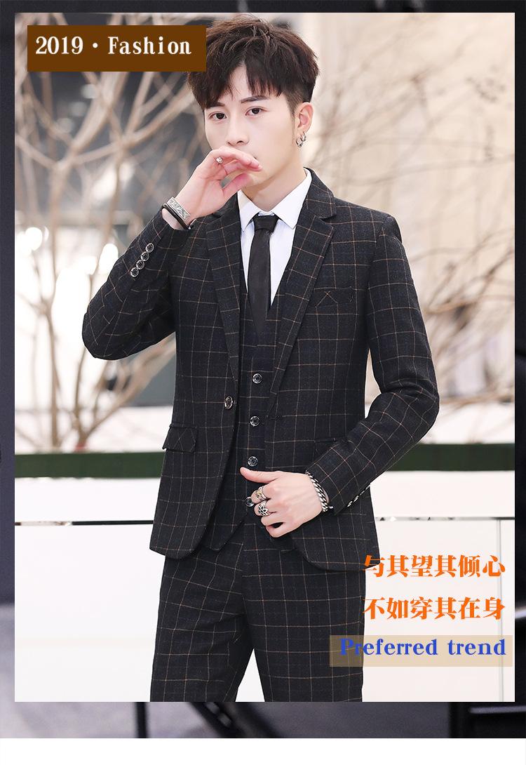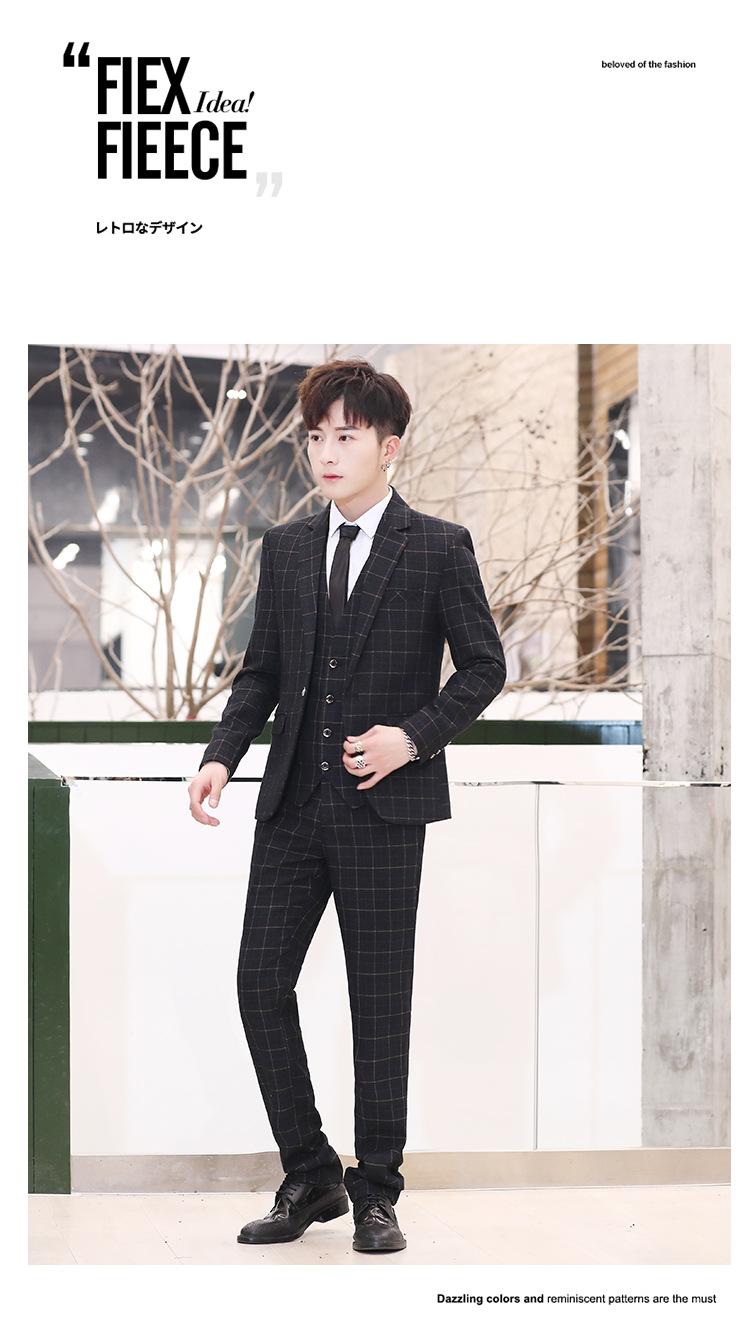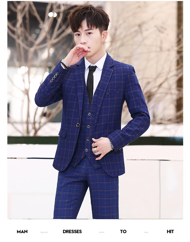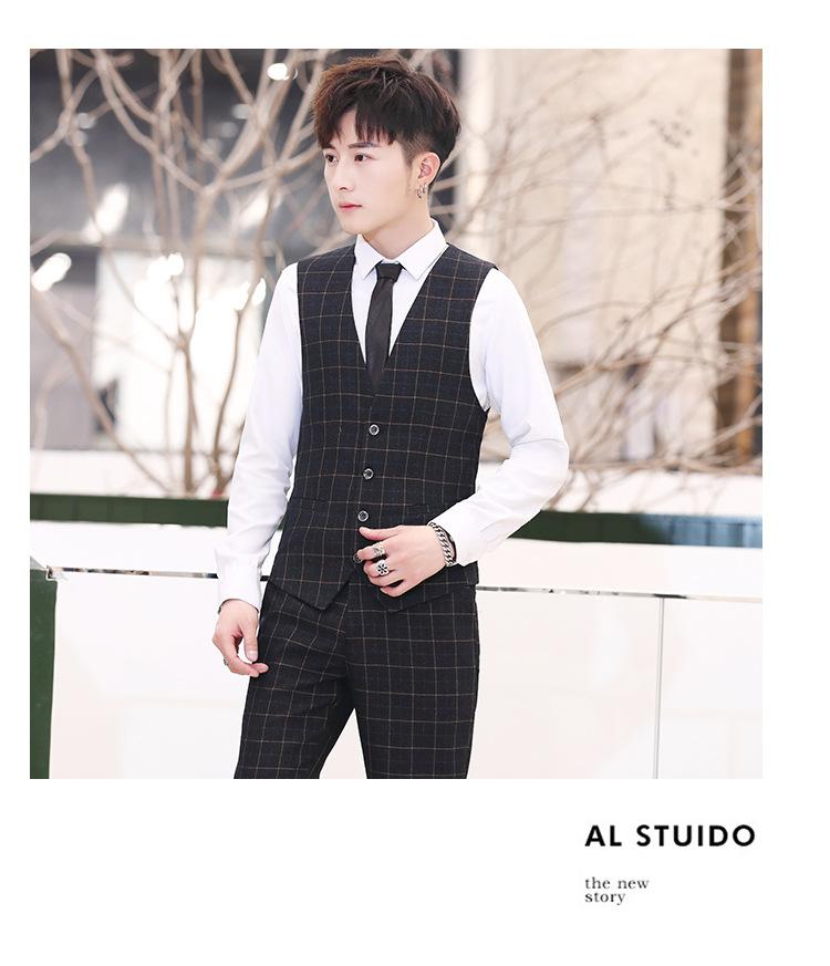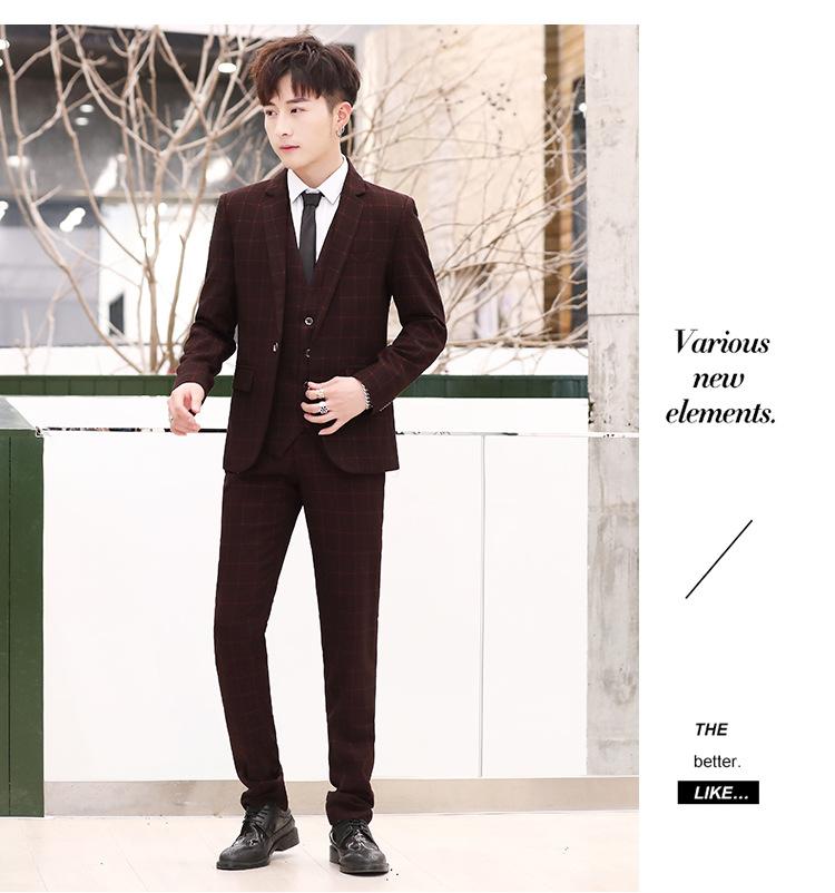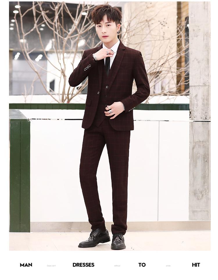 Conjunto de traje informal de tres piezas para hombre, corte entallado, estilo coreano, elegante, para novio, boda, a cuadros, pequeño.