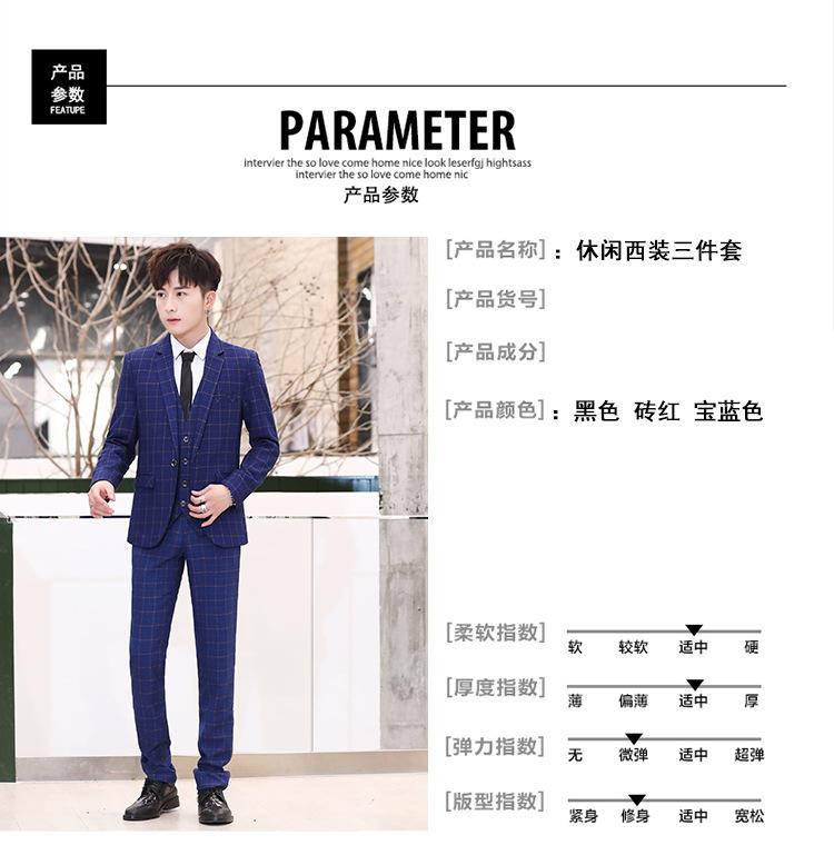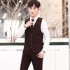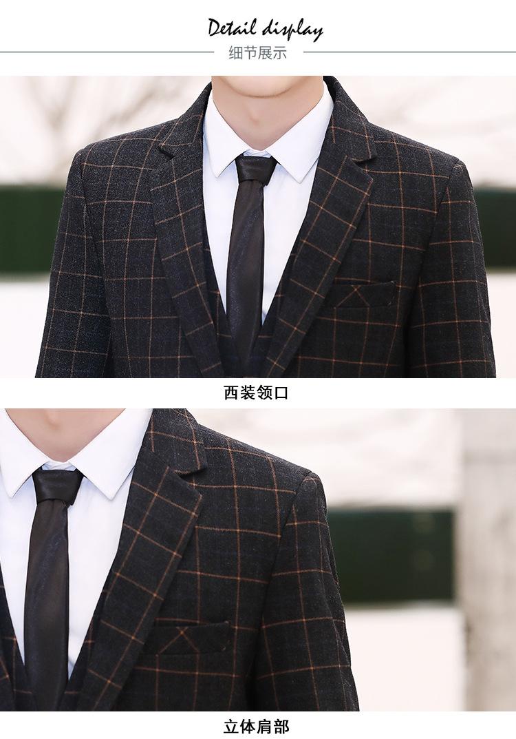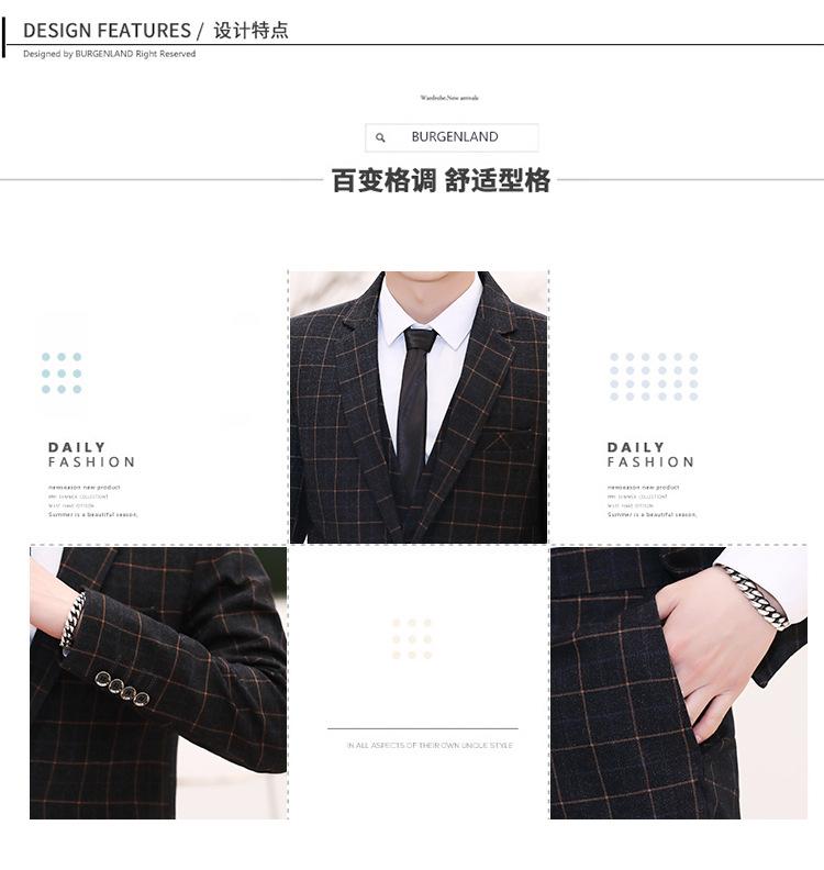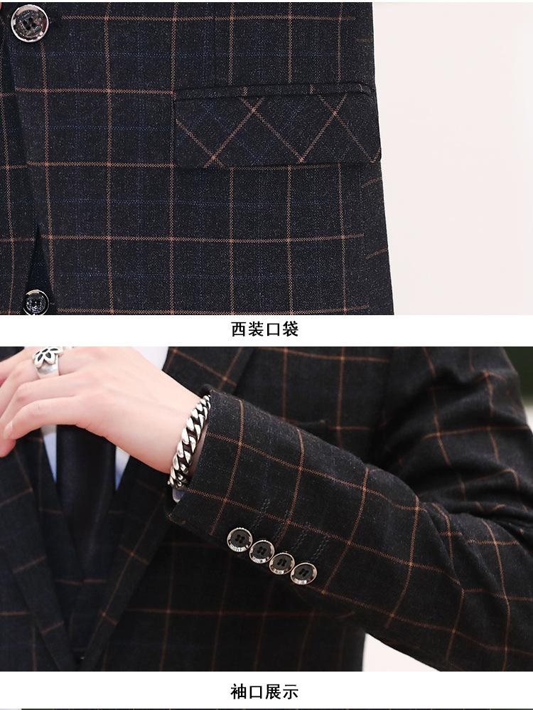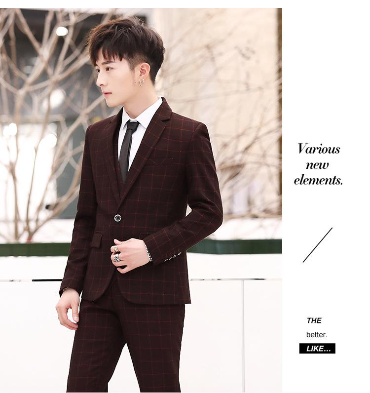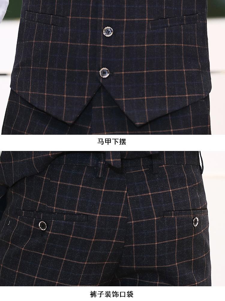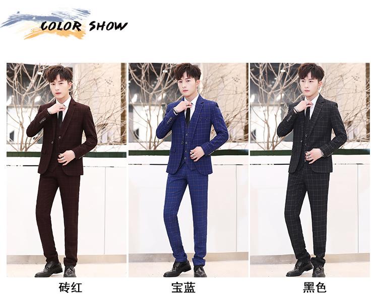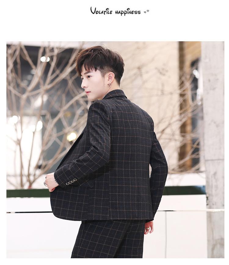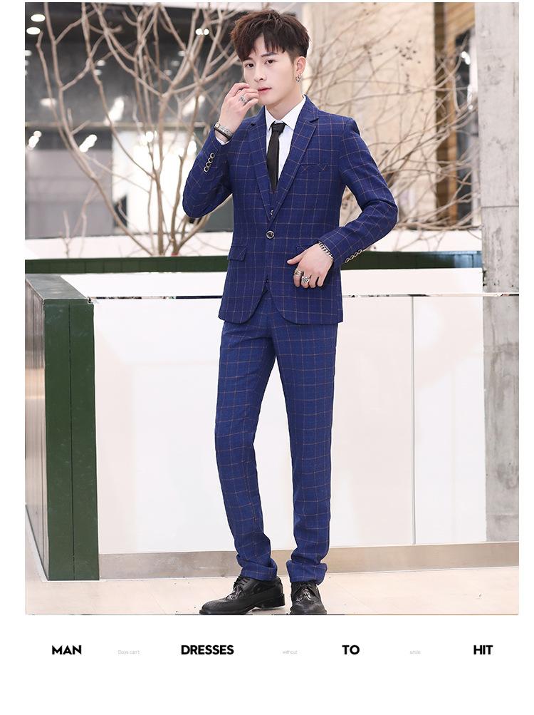 Conjunto de traje informal de tres piezas para hombre, corte entallado, estilo coreano, elegante, para novio, boda, a cuadros, pequeño.