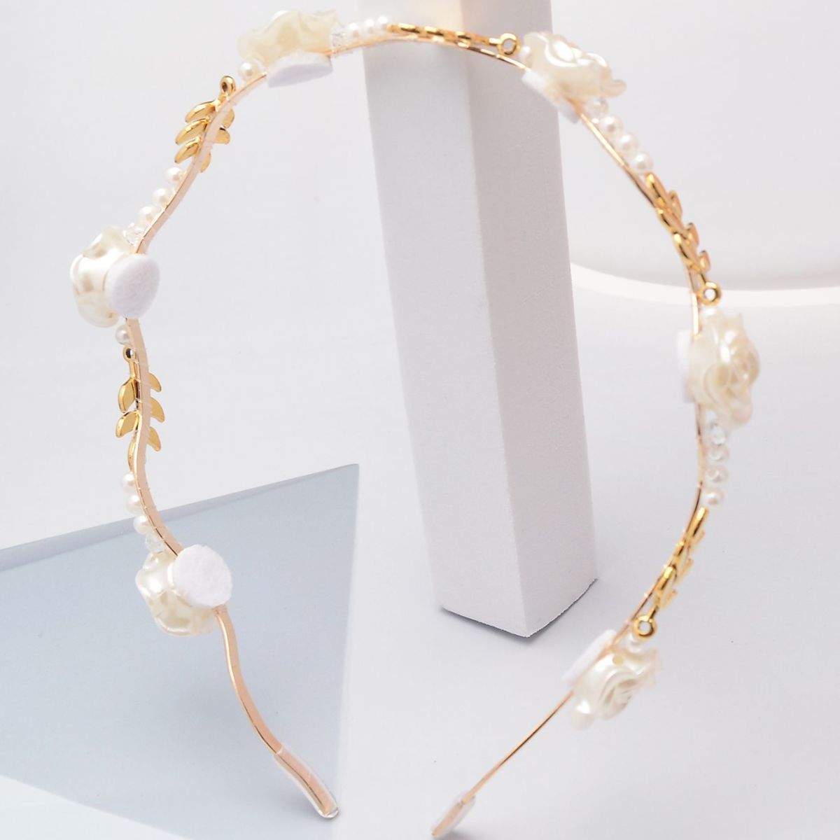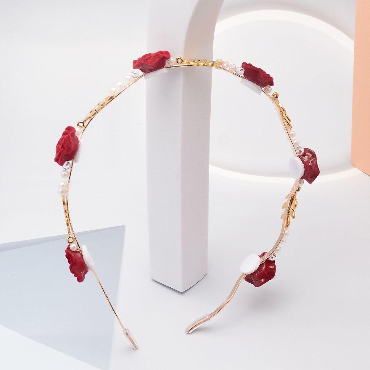 Diadema de perlas rosas para mujer, horquilla retro de alta gama, elegante y versátil, accesorio para el cabello para salir.