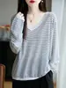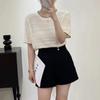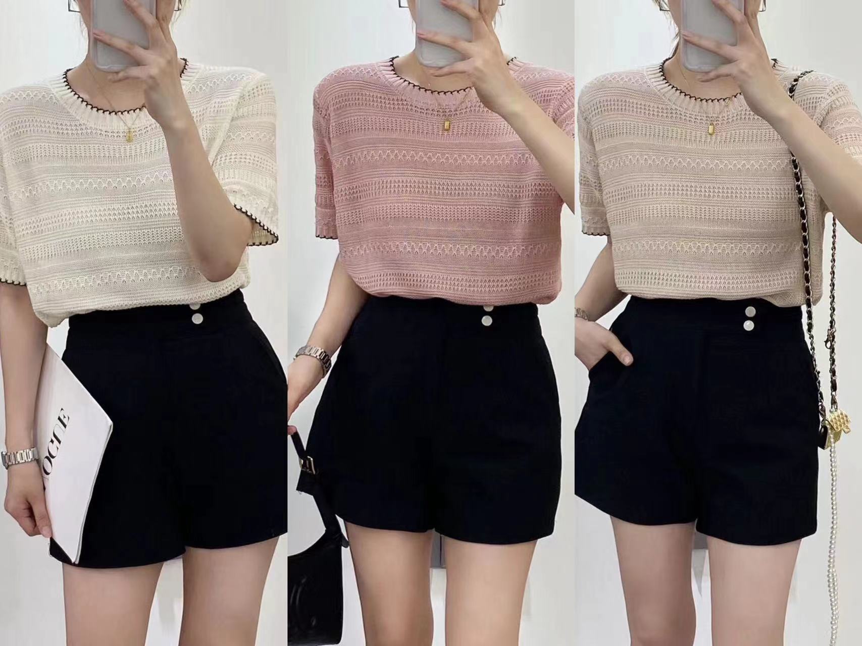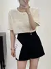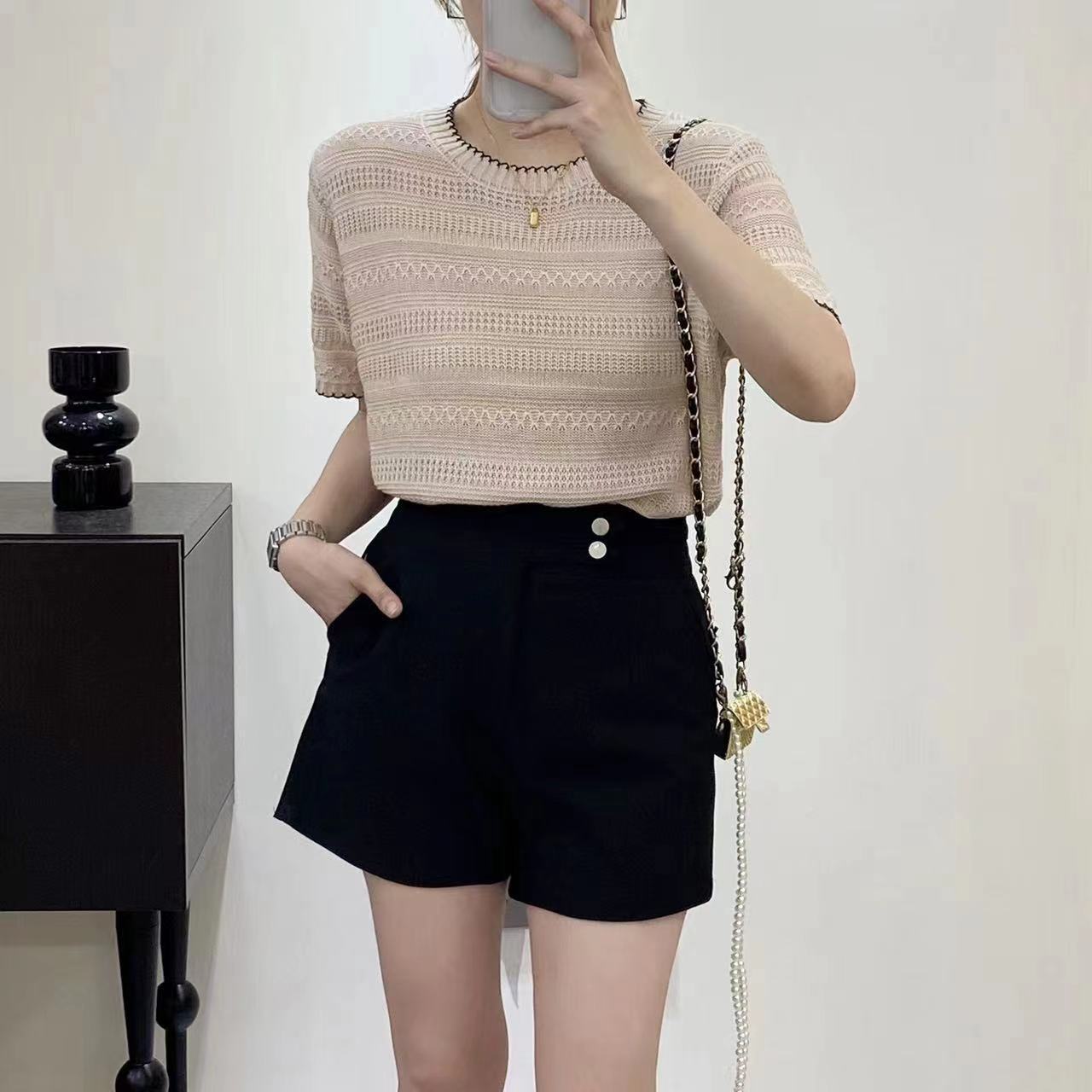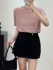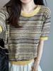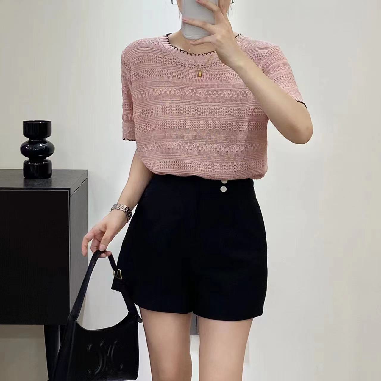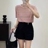 Yms015 Suéter de Punto de Verano Holgado de Manga Corta para Mujer, Delgado, Calado, Top Pulóver Combinado Elegante para Base